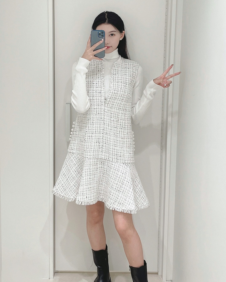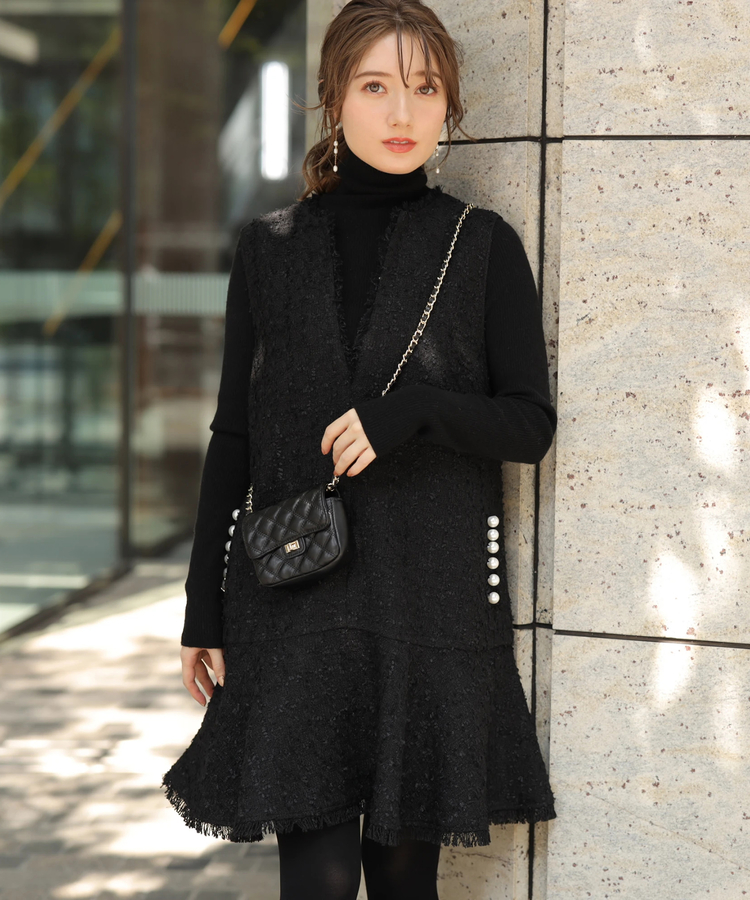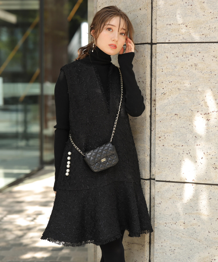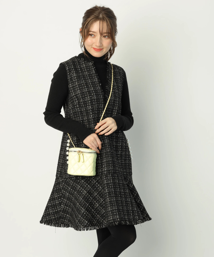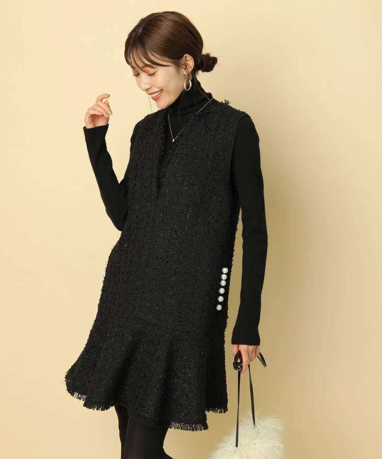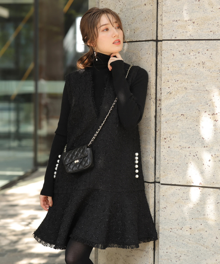 ツイードペプラムミニワンピース