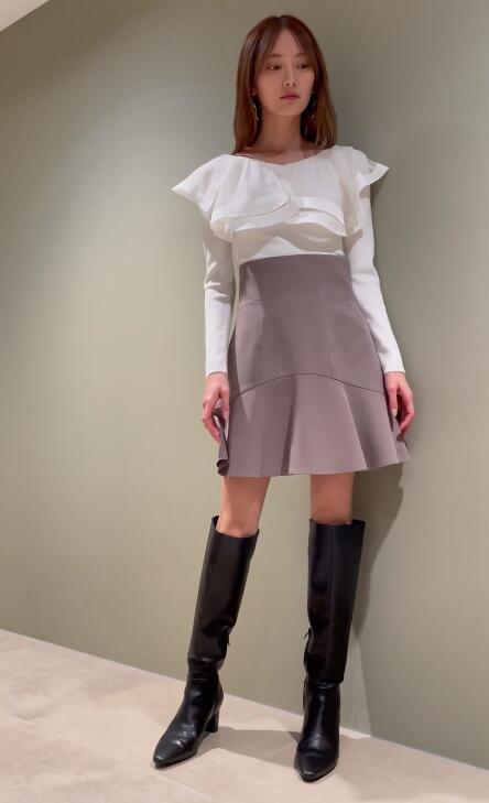 【立体的に波打つフレアラインが大人の愛らしさを引き出すミニスカート】