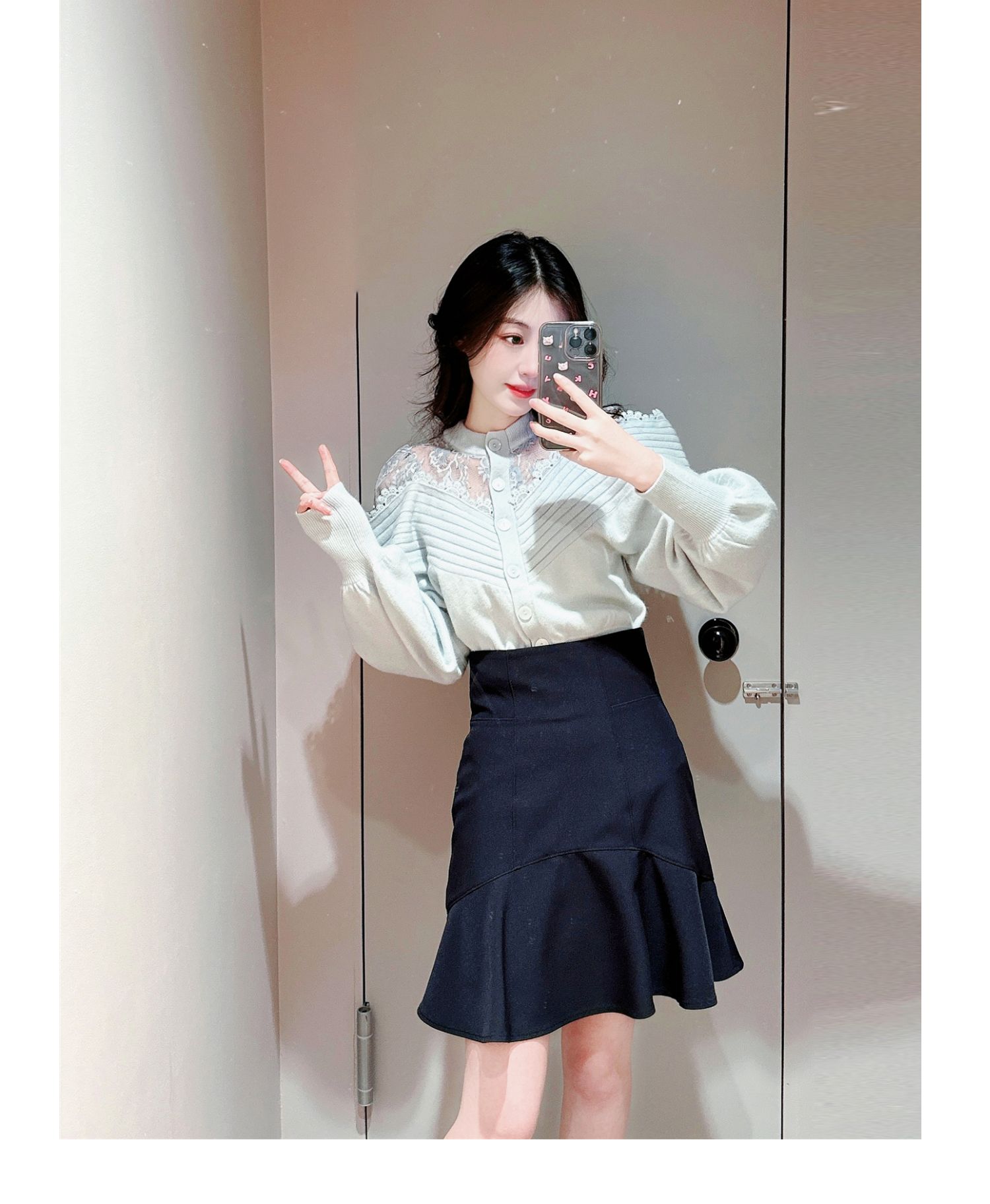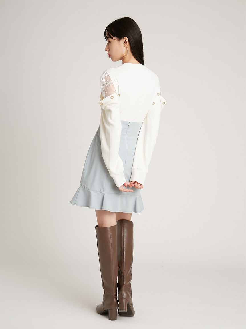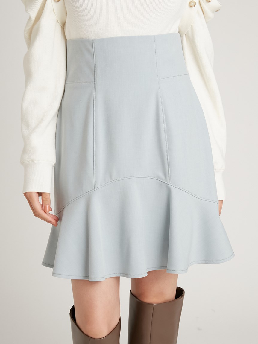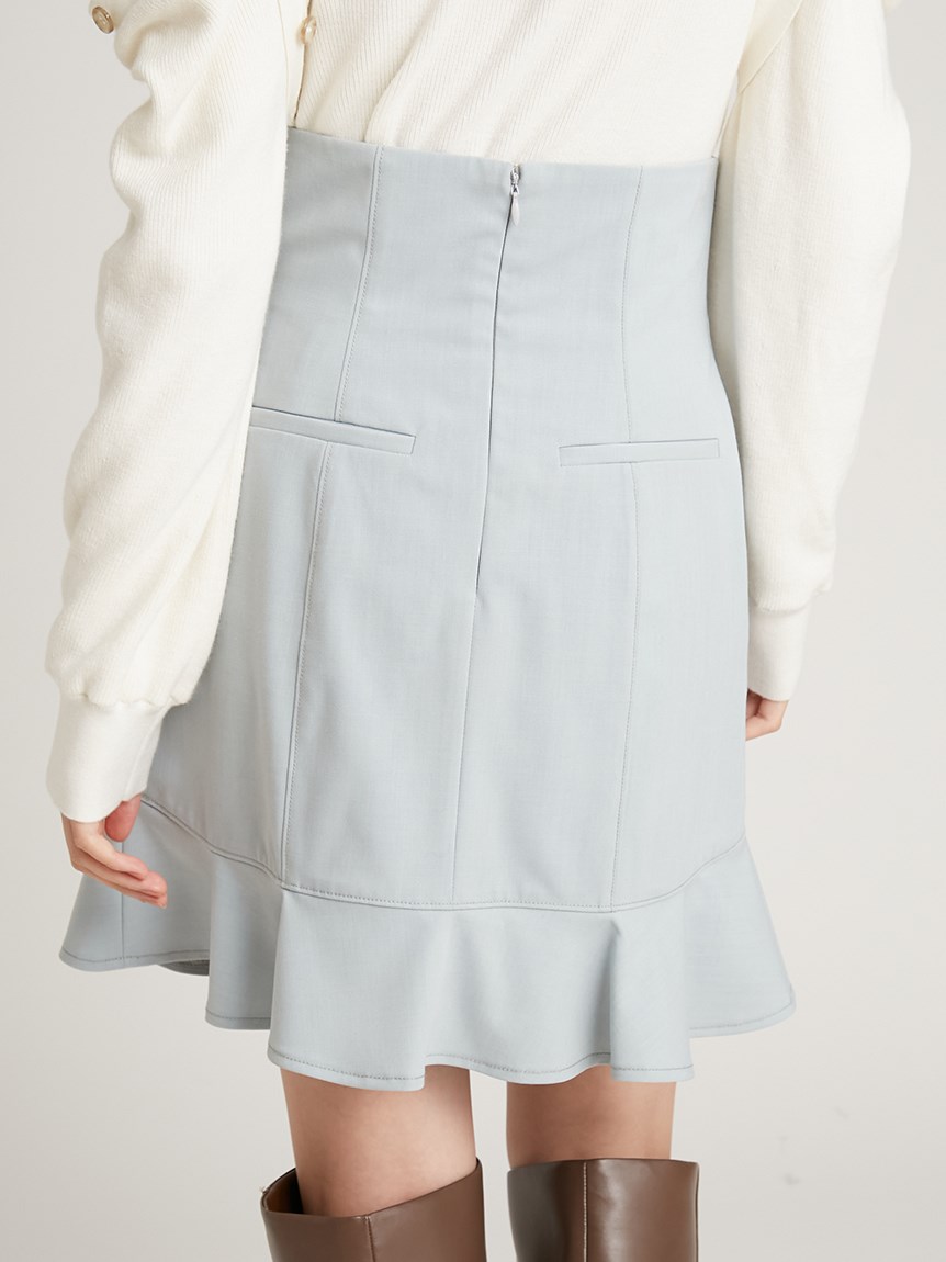 緩やかなカーブを描く切り替えでメイクしたフレアラインが愛らしいミニスカ-ト。敢えてフリルの幅を狭くし、フリルが外に向かってパッと広がるように工夫しました。ボディラインにフィットするハイウエストデザインでスタイルアップ効果は◎。タイトなシルエットで捲れないようにするため、素材は伸縮性のある物を選んでいます。