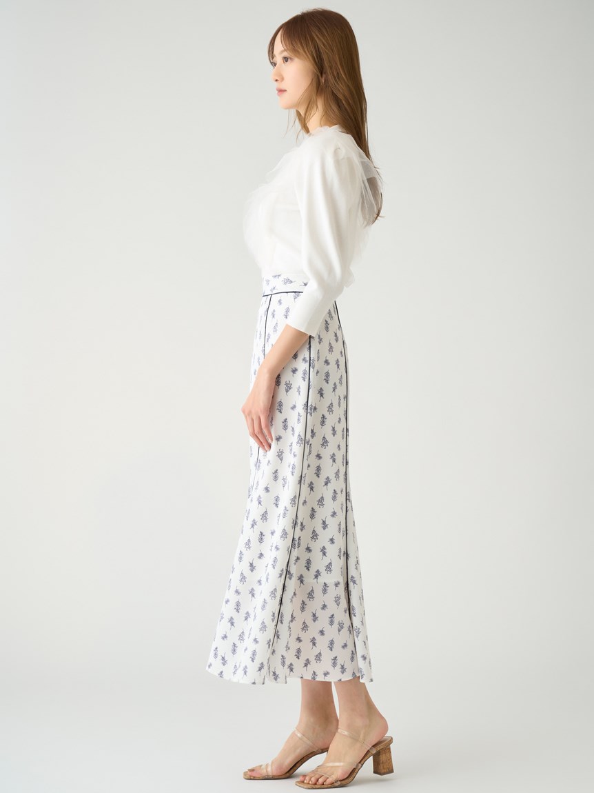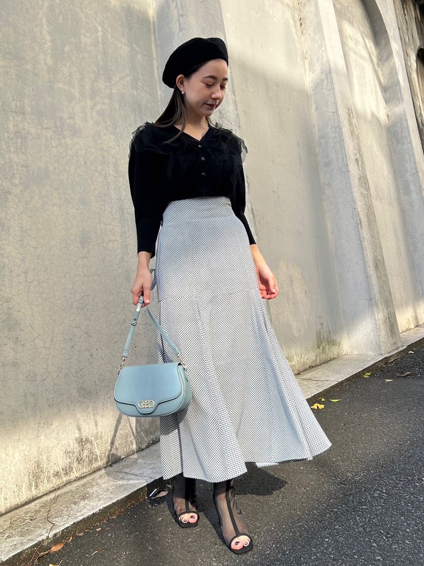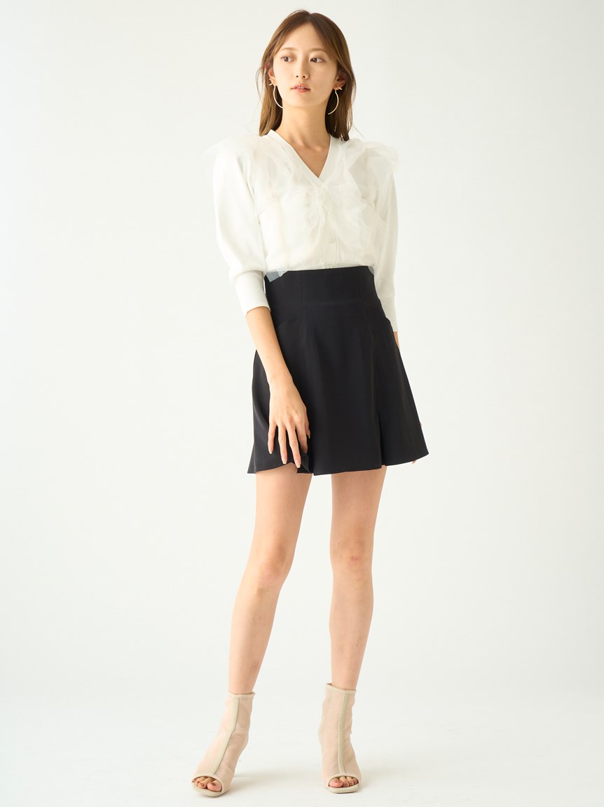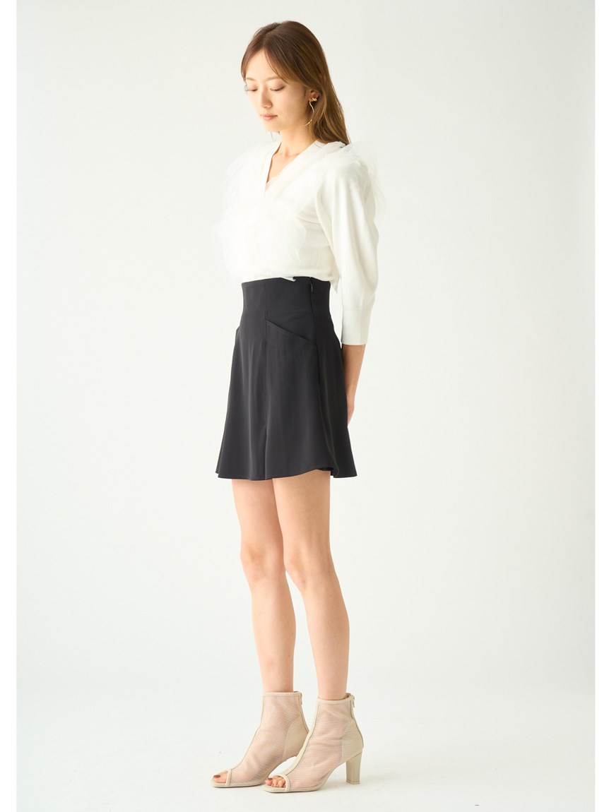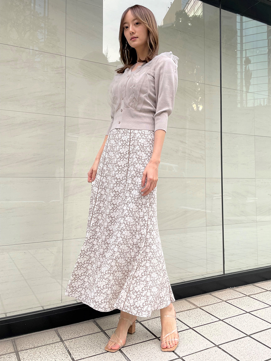 エコレーヨンを用いたサステナブルなニットにチュールをドッキングしました。アイボリー、ブラック、ベージュのベーシックなカラー展開でお届けします。