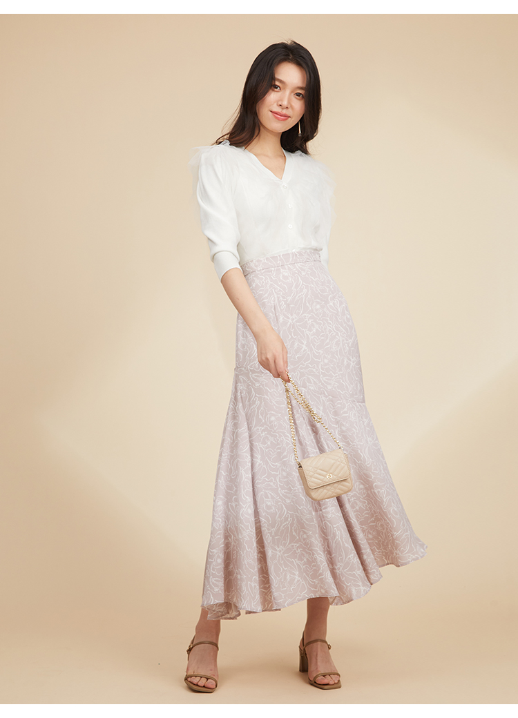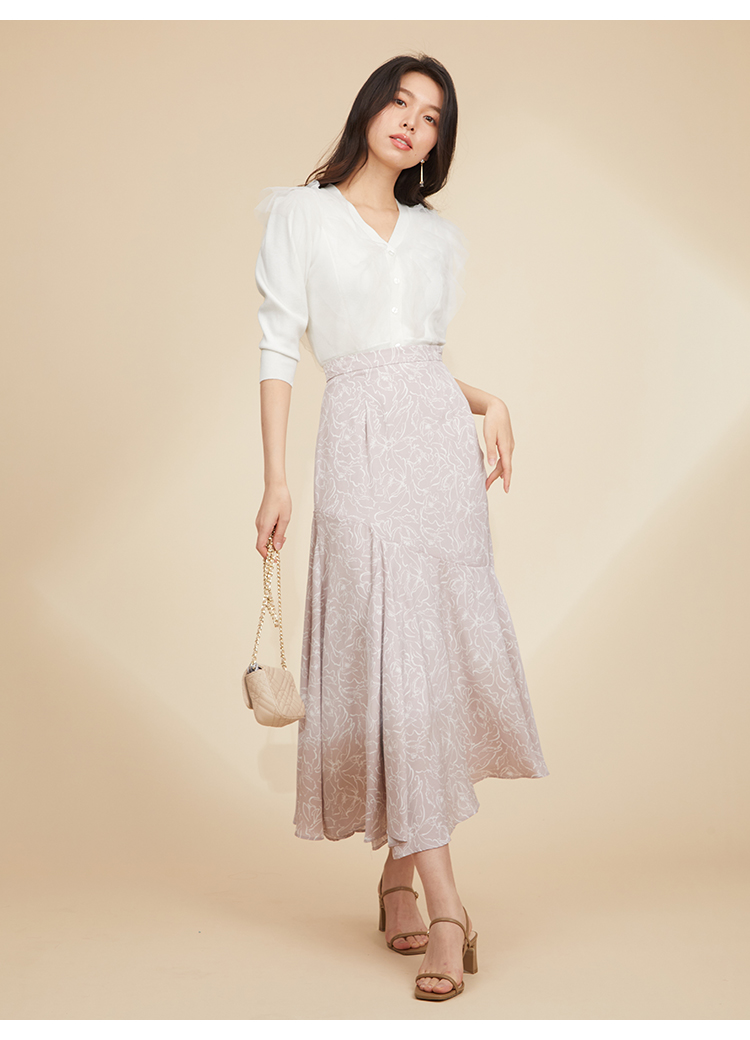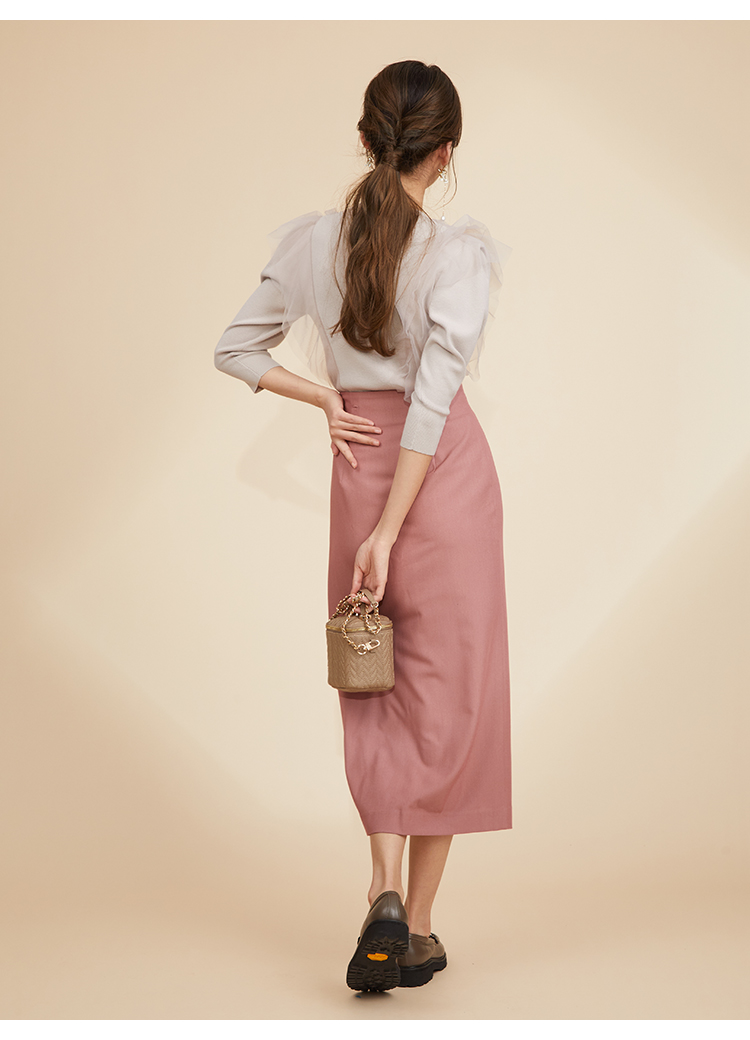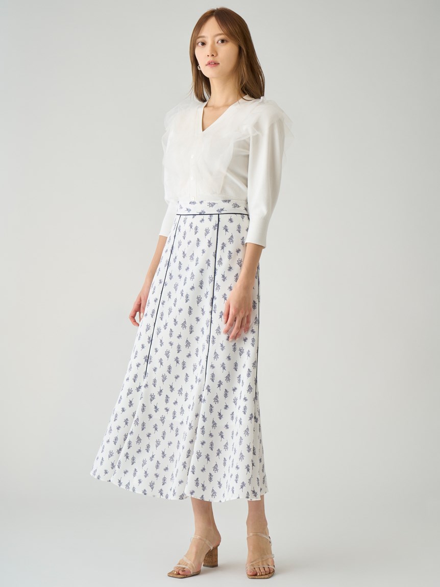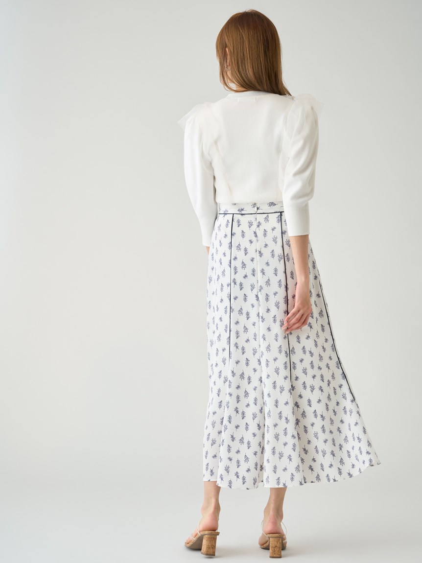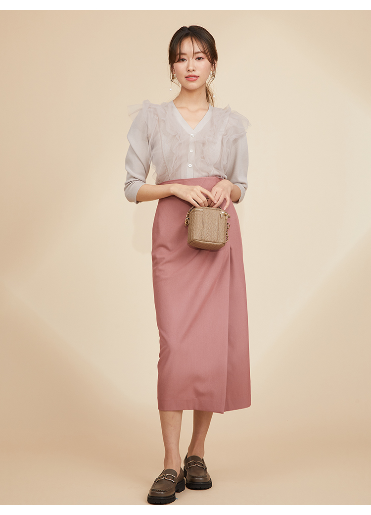 エコレーヨンを用いたサステナブルなニットにチュールをドッキングしました。アイボリー、ブラック、ベージュのベーシックなカラー展開でお届けします。