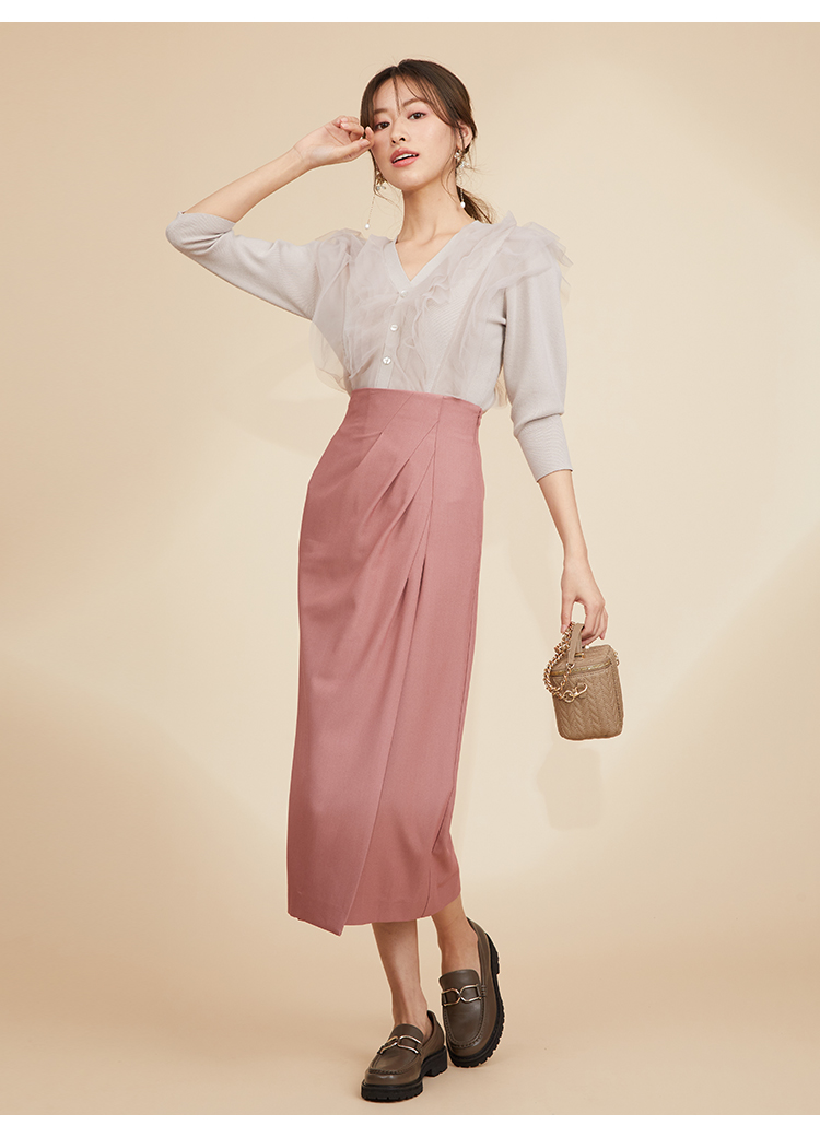 大人気のチュールドッキングニットを長袖バージョンにアップデート。顔周りを華やかに見せてくれるボリューミーなチュールフリルで、華奢見えも叶える万能な1着です。袖にはふっくらと丸みを持たせより女性らしいルックスに。コンパクトなシルエットなので合わせるボトムを選ばず、幅広いスタイリングに活躍してくれます。