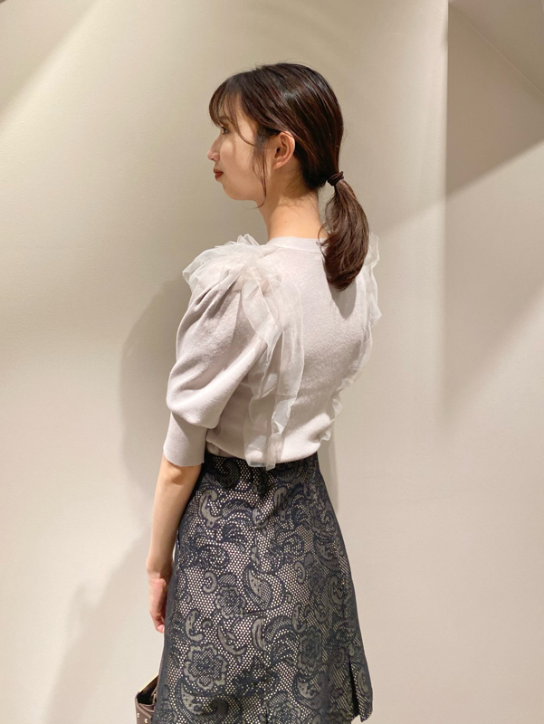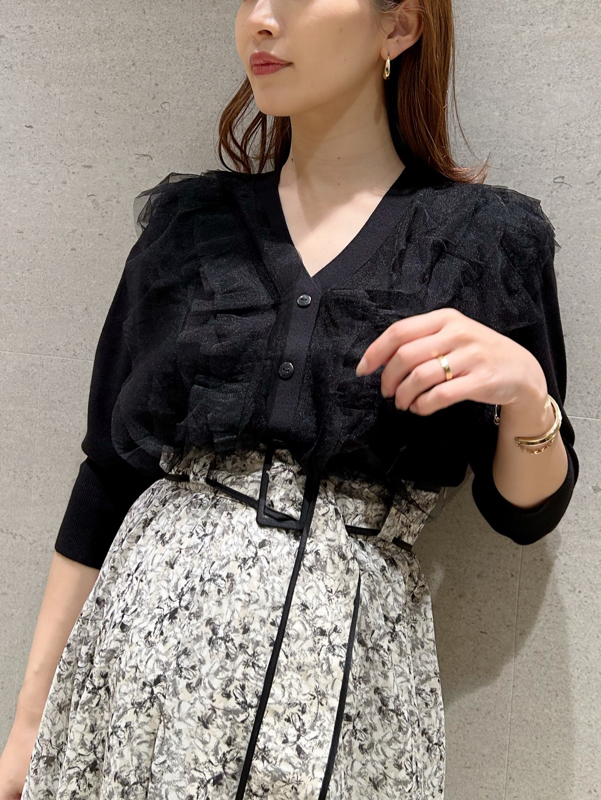 【女性らしい華やかなデザインが人気のチュールドッキングニット】
