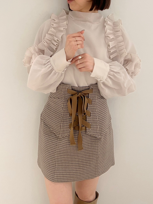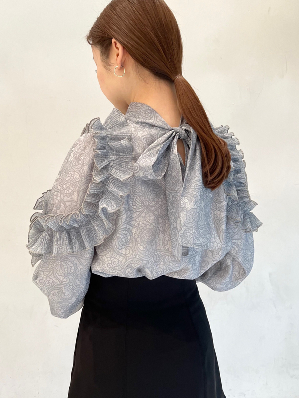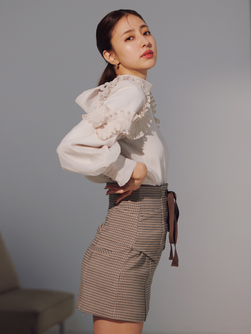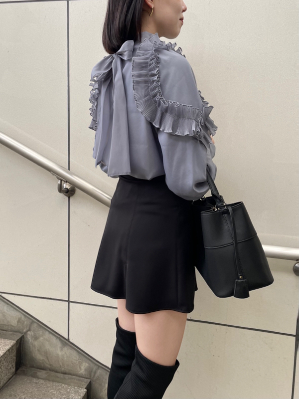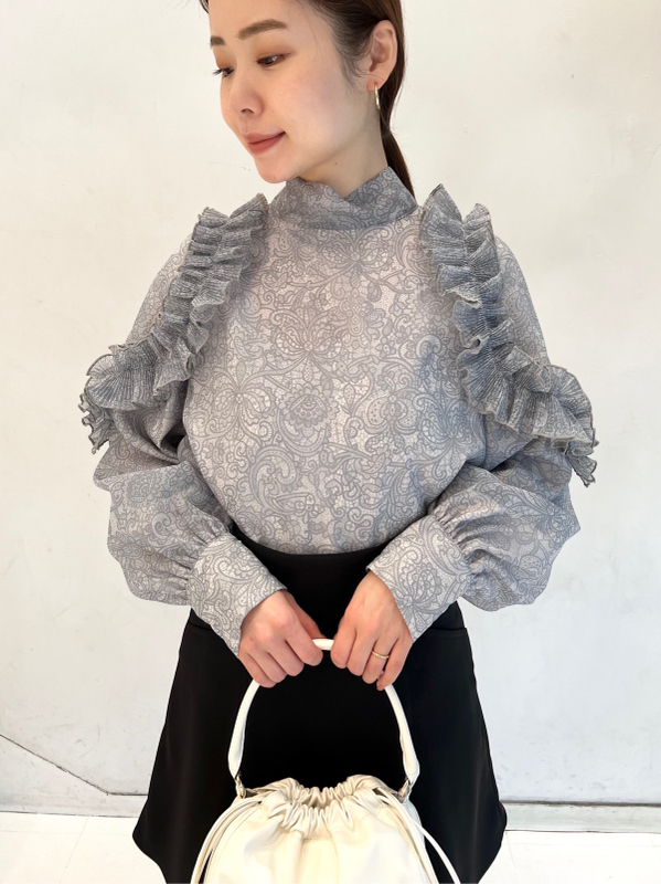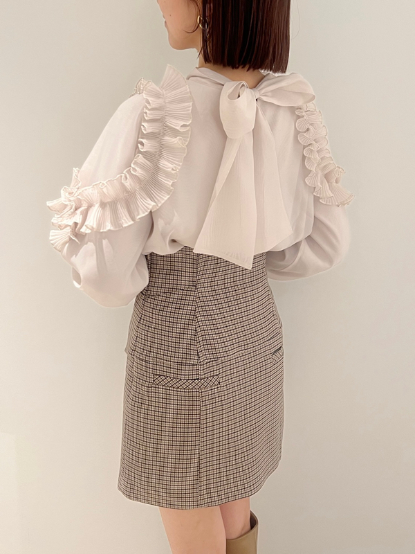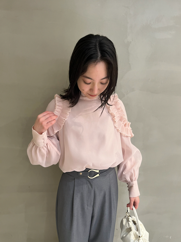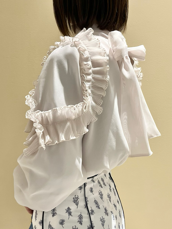 「SNIDEL」で高い人気を誇るオーガンジーシースルーブラウスが今年もバージョンアップして登場。細かなプリーツを施したフリルを袖に叩きつけフェミニンとモードが共存するブラウスに仕上げました。プラスワンでスタイリングが一気に華やぐ優秀アイテムです。バックネックには愛らしいリボンをあしらい後ろ姿まで抜かりなし。裾はウエストにインしてもアウトでもバランス良く決まるので、様々なボトムと相性抜群です。