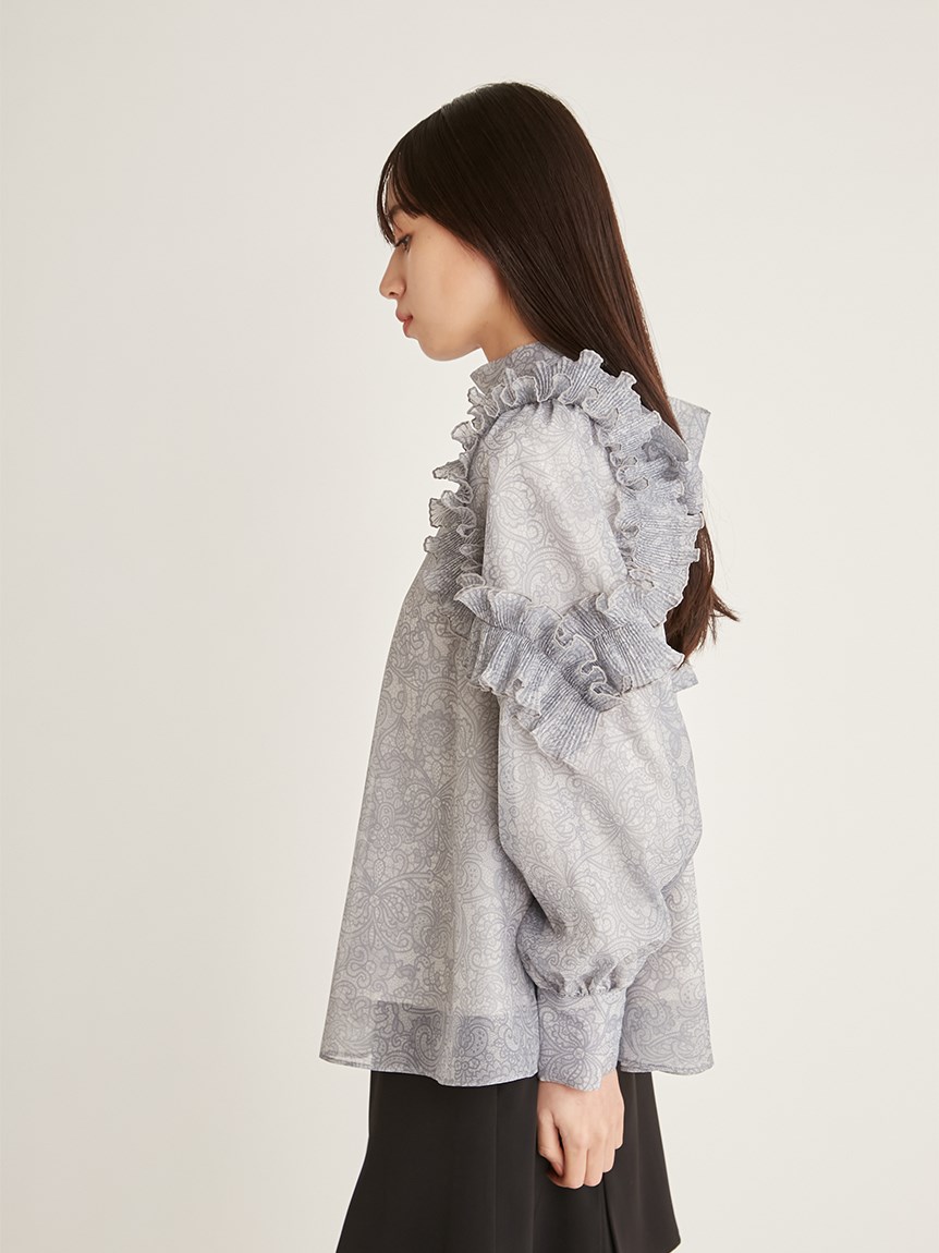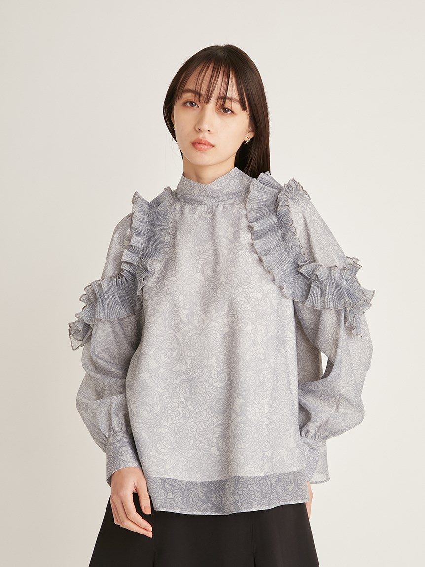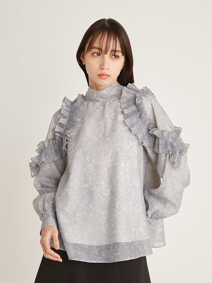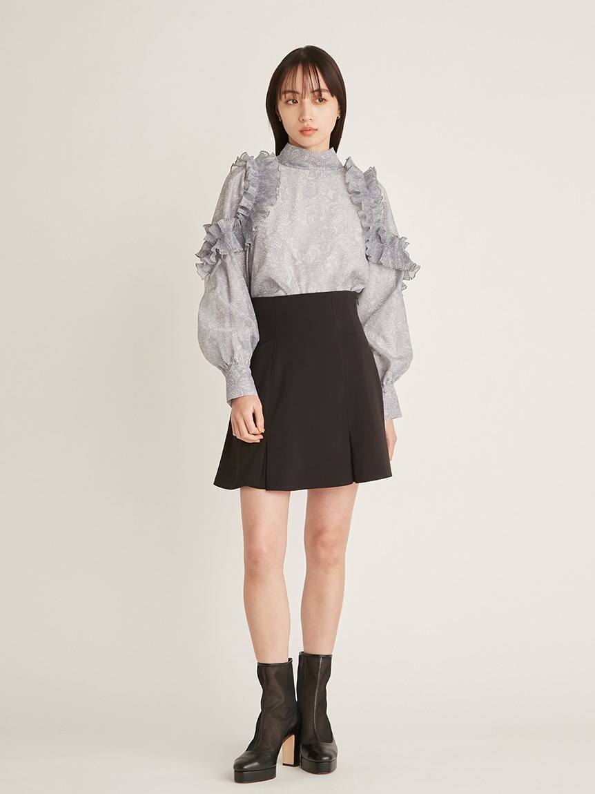 「SNIDEL」で高い人気を誇るオーガンジーシースルーブラウスが今年もバージョンアップして登場。細かなプリーツを施したフリルを袖に叩きつけフェミニンとモードが共存するブラウスに仕上げました。プラスワンでスタイリングが一気に華やぐ優秀アイテムです。バックネックには愛らしいリボンをあしらい後ろ姿まで抜かりなし。裾はウエストにインしてもアウトでもバランス良く決まるので、様々なボトムと相性抜群です。
