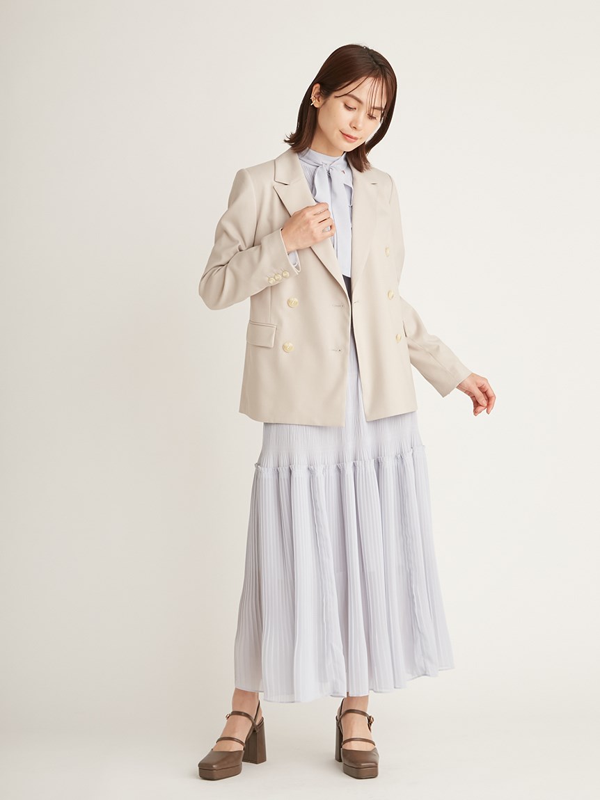 「SNIDEL」定番のダブルジャケットが今季も登場。スタンダードでクラシカルなデザインが、洗練ムードを高めてくれるこだわりの1着です。合わせるアイテムを選ばず幅広いスタイリングに取り入れやすいのも魅力。極端に差寸を出すように設定された0と1の2サイズ展開で、コンパクトに着用したい方には0を、少しゆったり着用したい方には1がおすすめです。