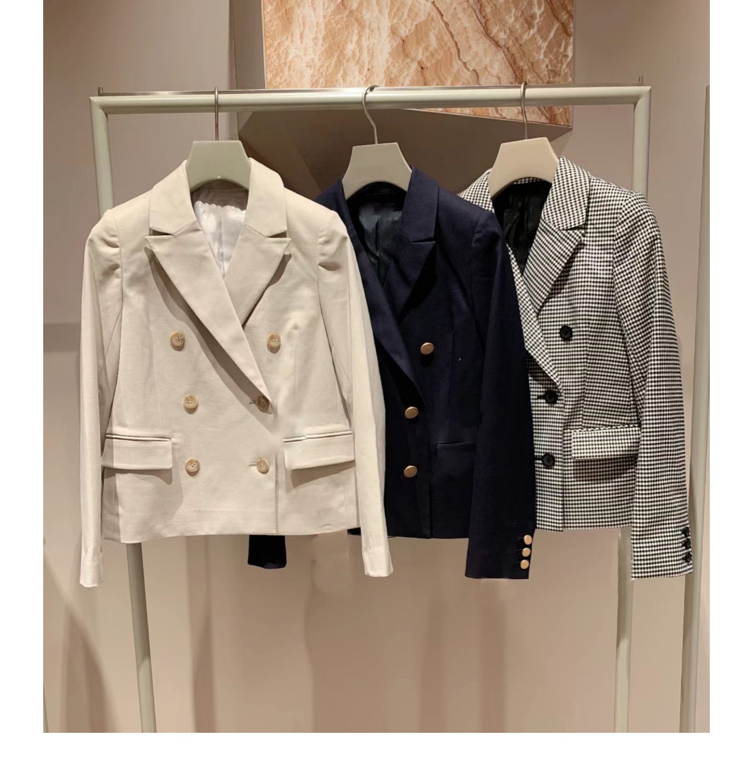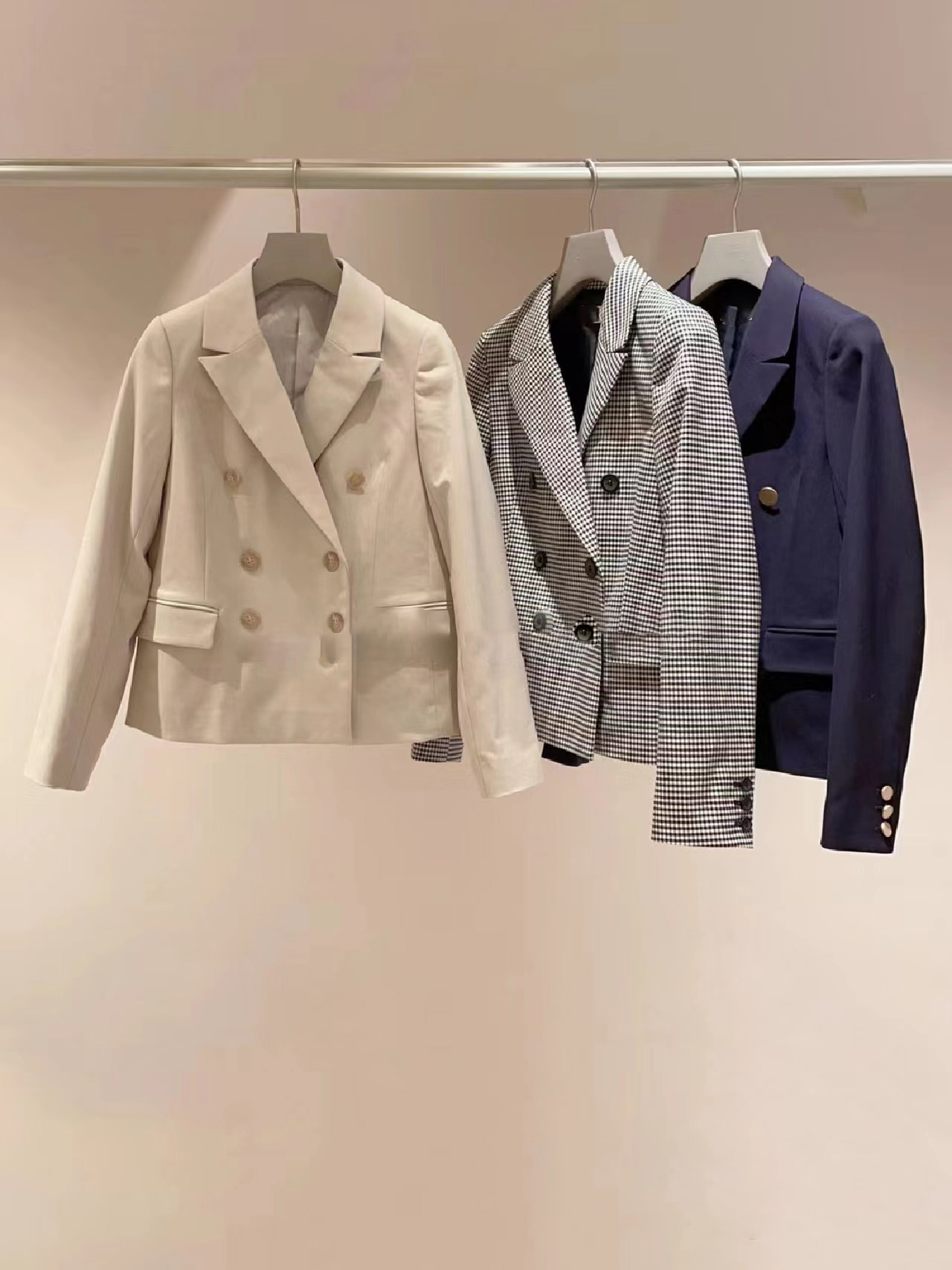 再生ポリエステルを用いたサステナブルな素材を使用。シンプルな無地のライトベージュとネイビー、今年らしい千鳥柄を浮かべたチェックの3色展開でお届けします。