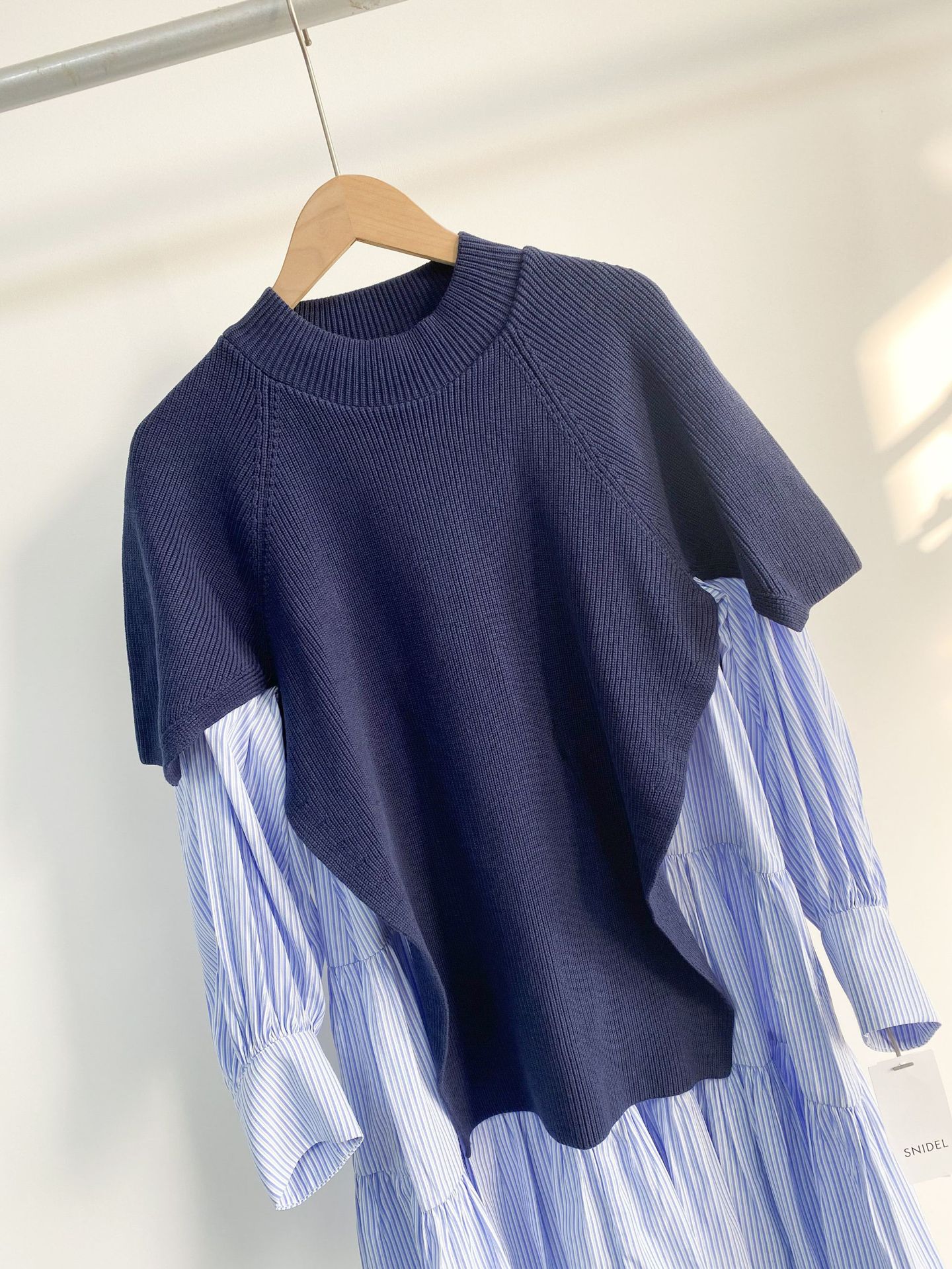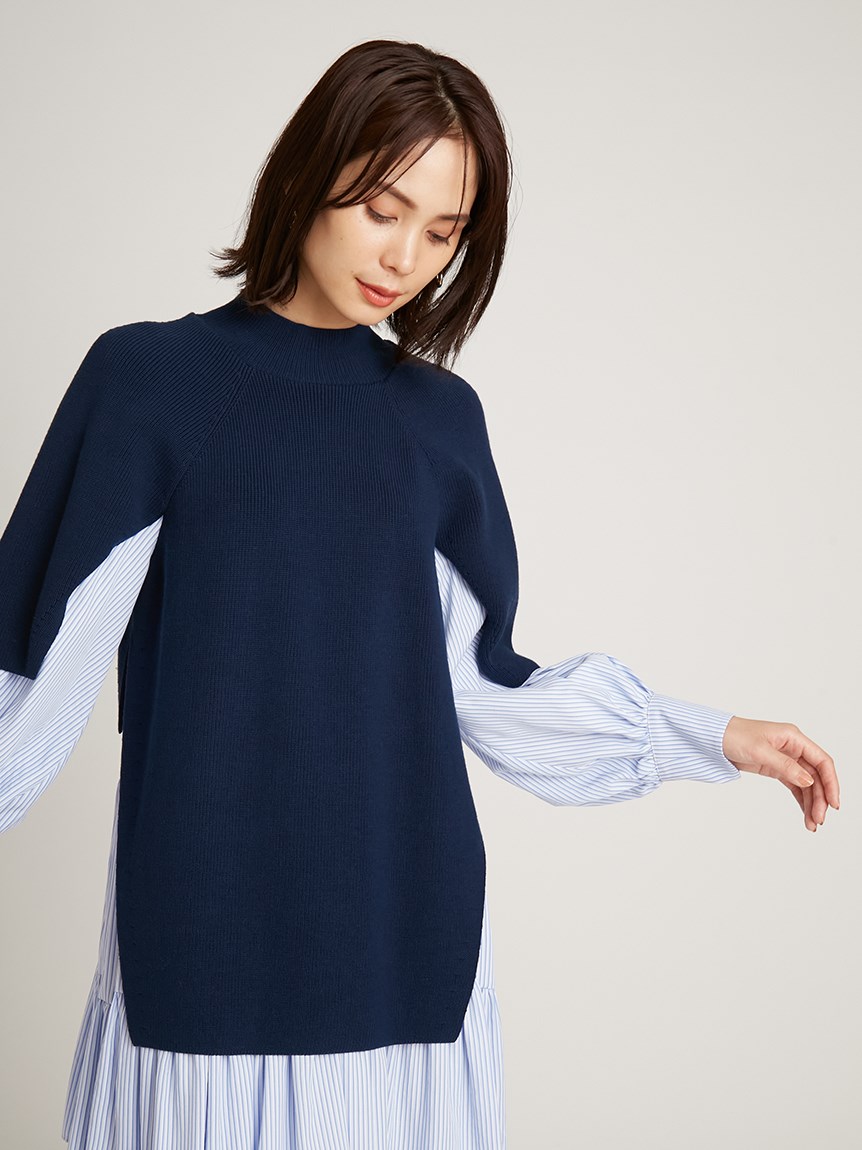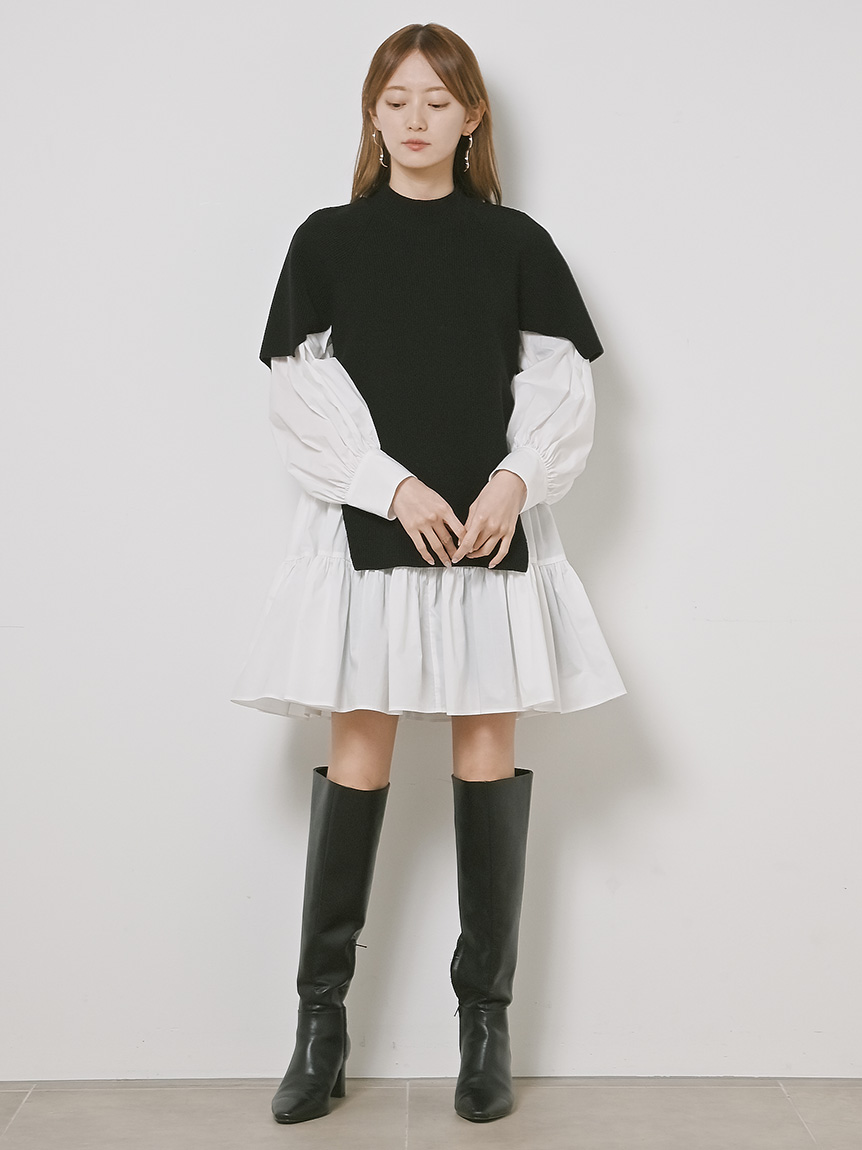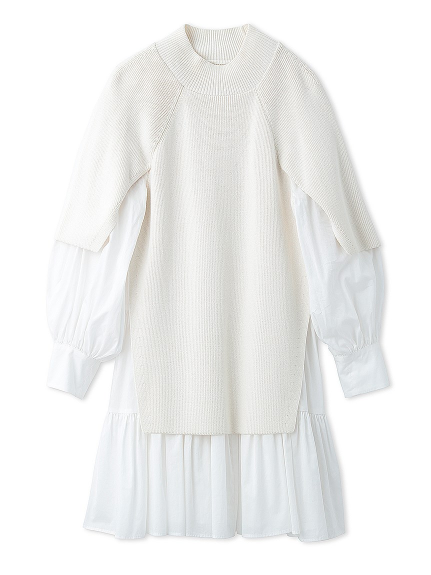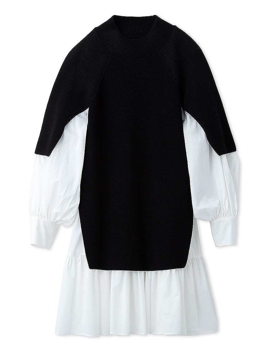 きれいめな質感のニットとシンプルなシャツ地を組み合わせました。全体をワントーンでまとめたホワイト、バイカラーがモードな印象を与えるブラック、今年らしい配色で仕上げたネイビーの3色をご用意。