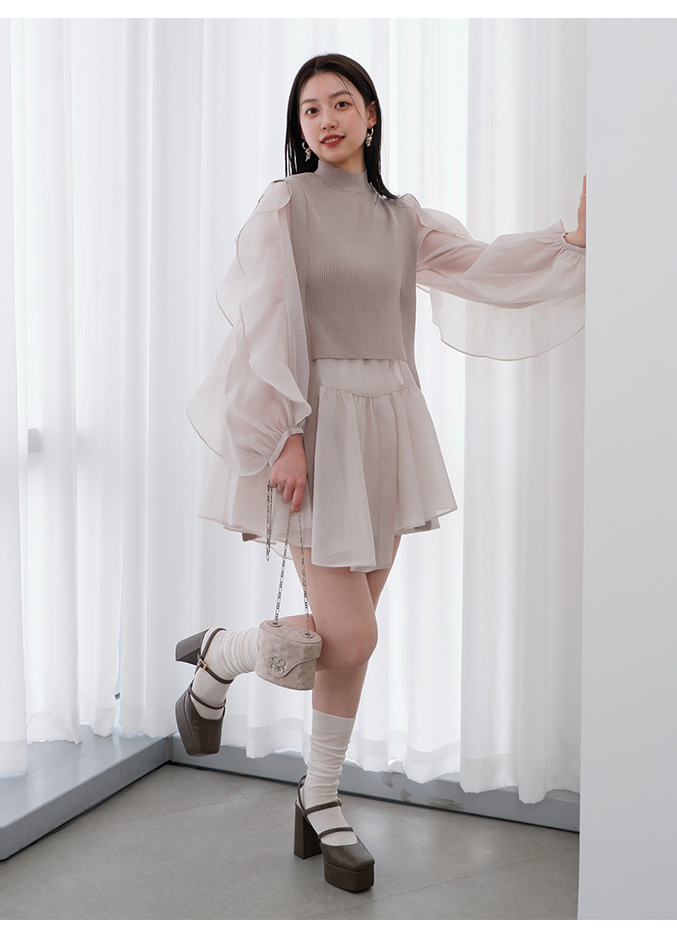 ベストレイヤードフリルスリーブチュニック