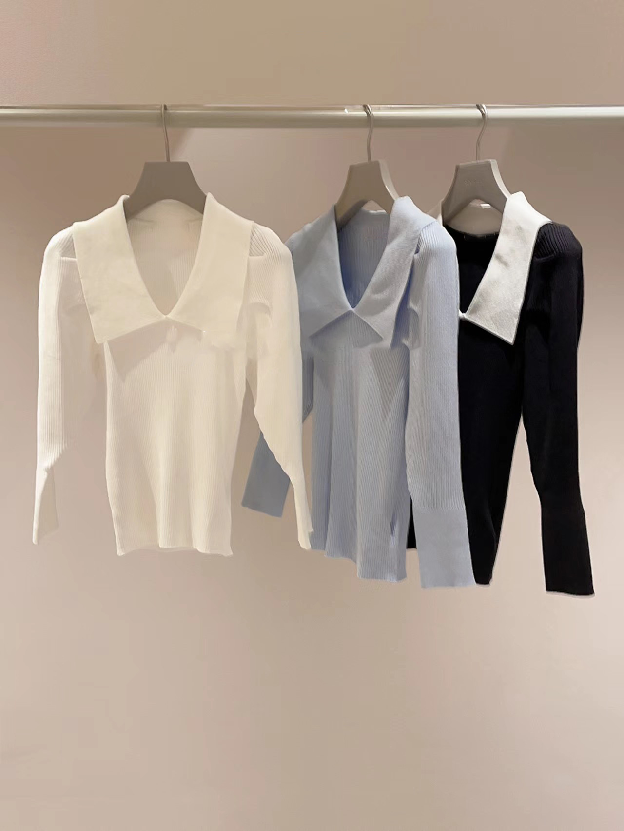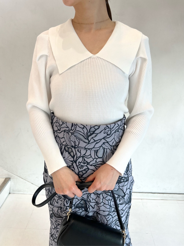 エコレーヨンを用いたサステナブルなニット素材を使用しました。優しい色合いのホワイト、バイカラーでモード感のあるブラック、春夏らしい爽やかなライトブルーをご用意。