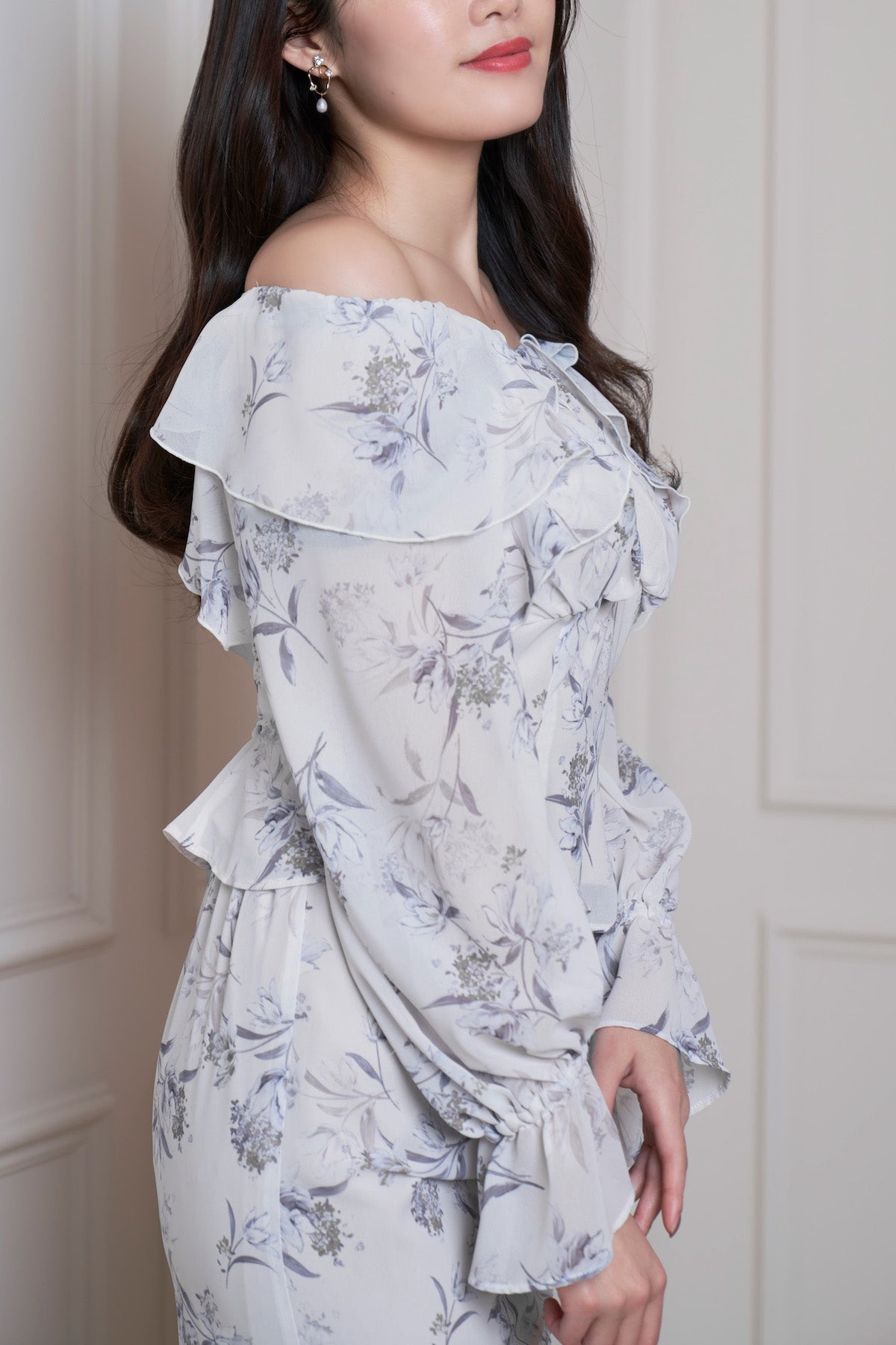 高めの胸下切り替えの程よいペプラムデザインが女性らしさを演出。