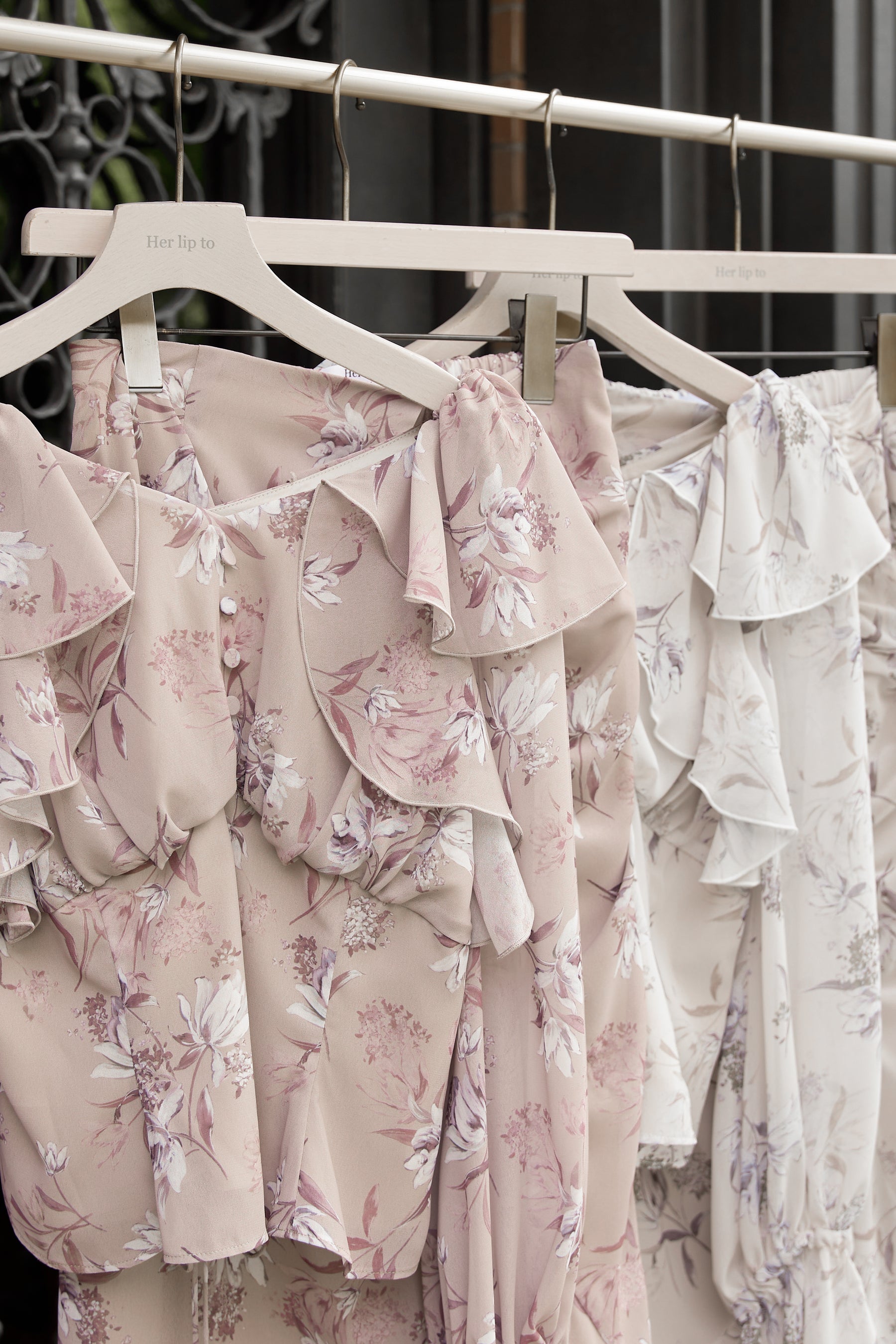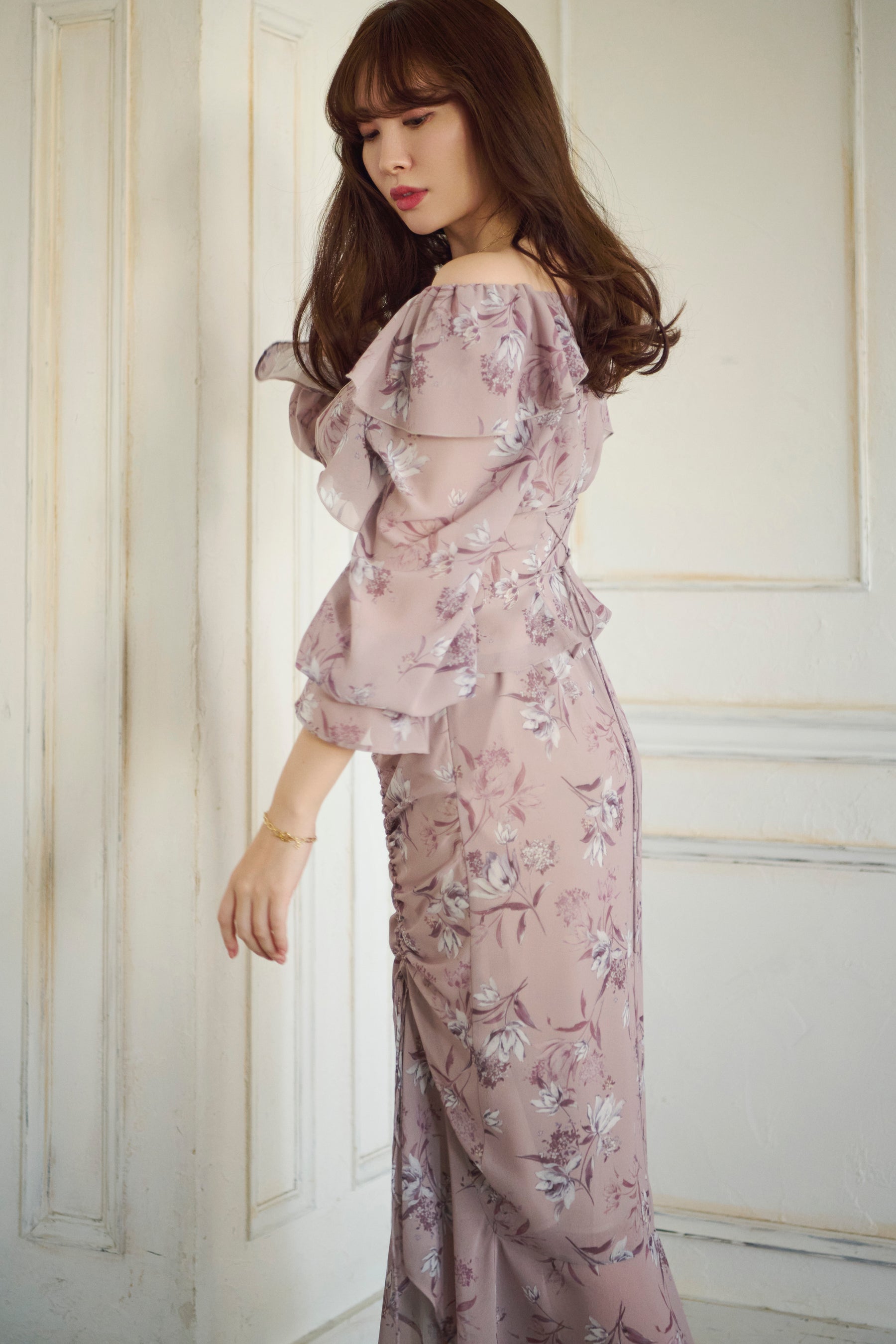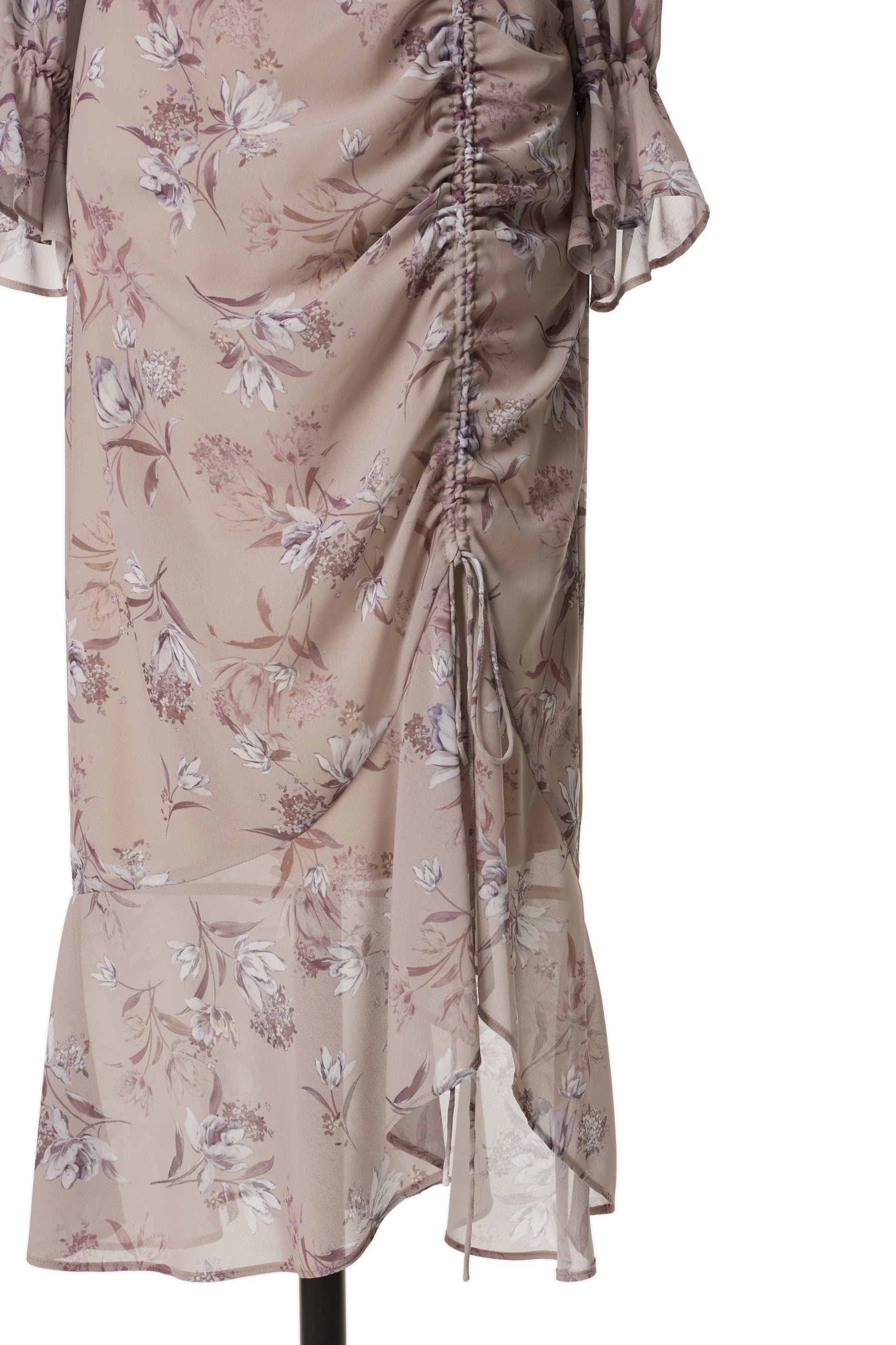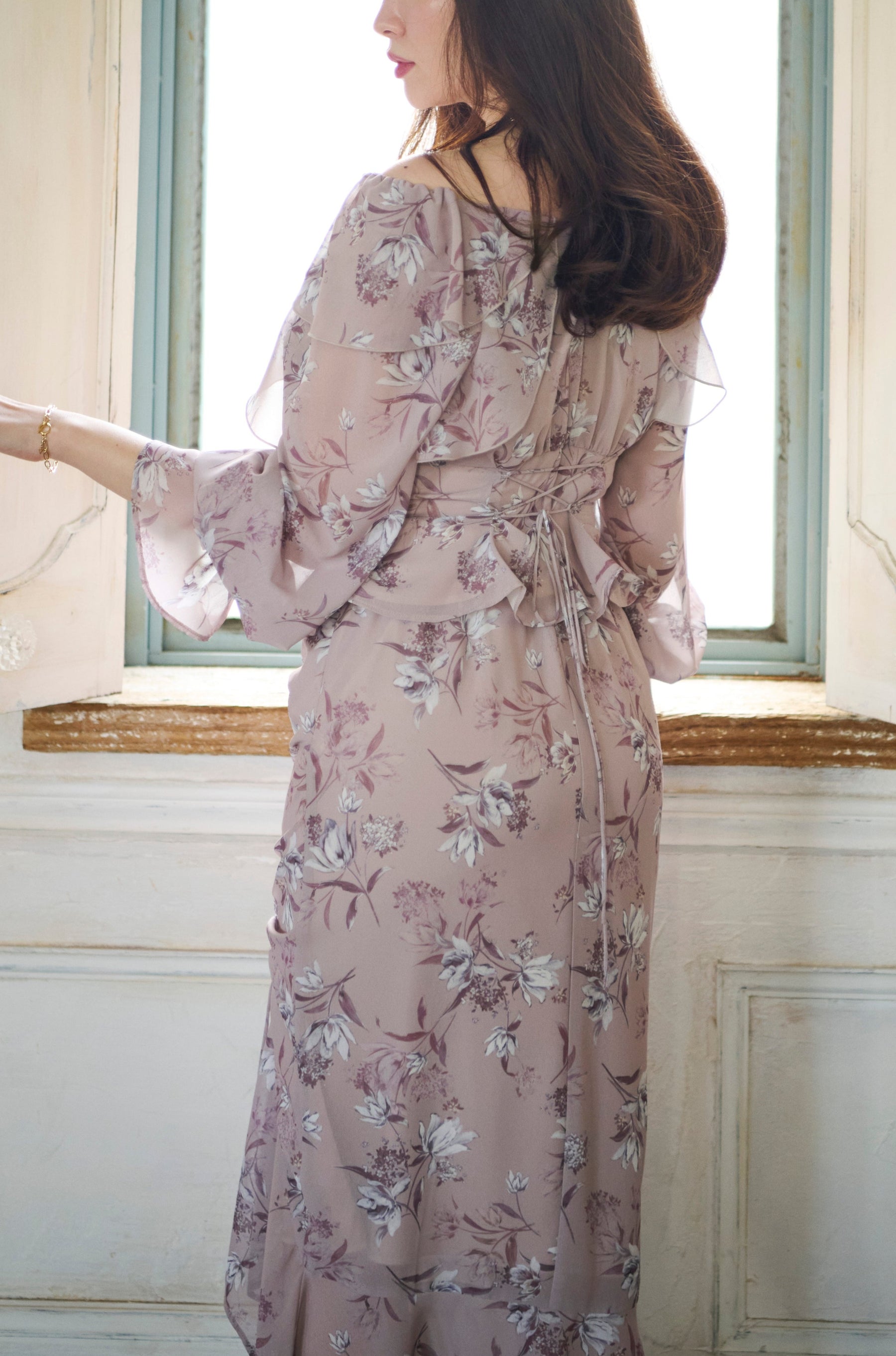 オリジナルプリントの花々がエレガントな雰囲気を引き立てます。