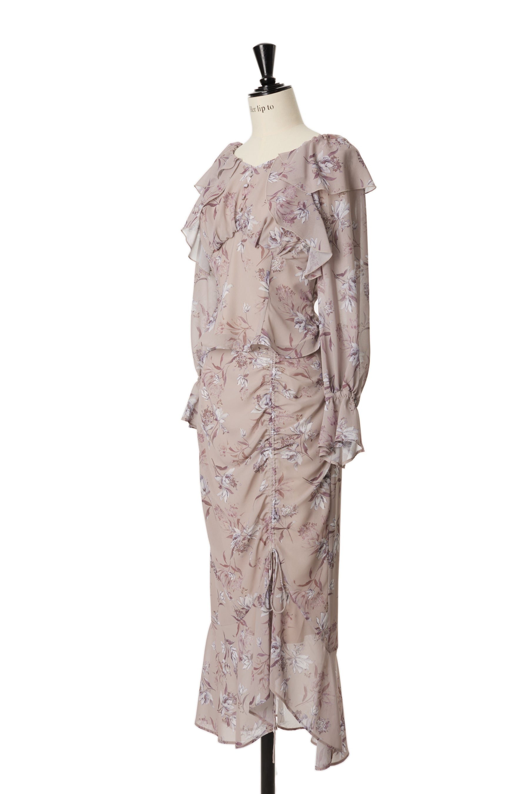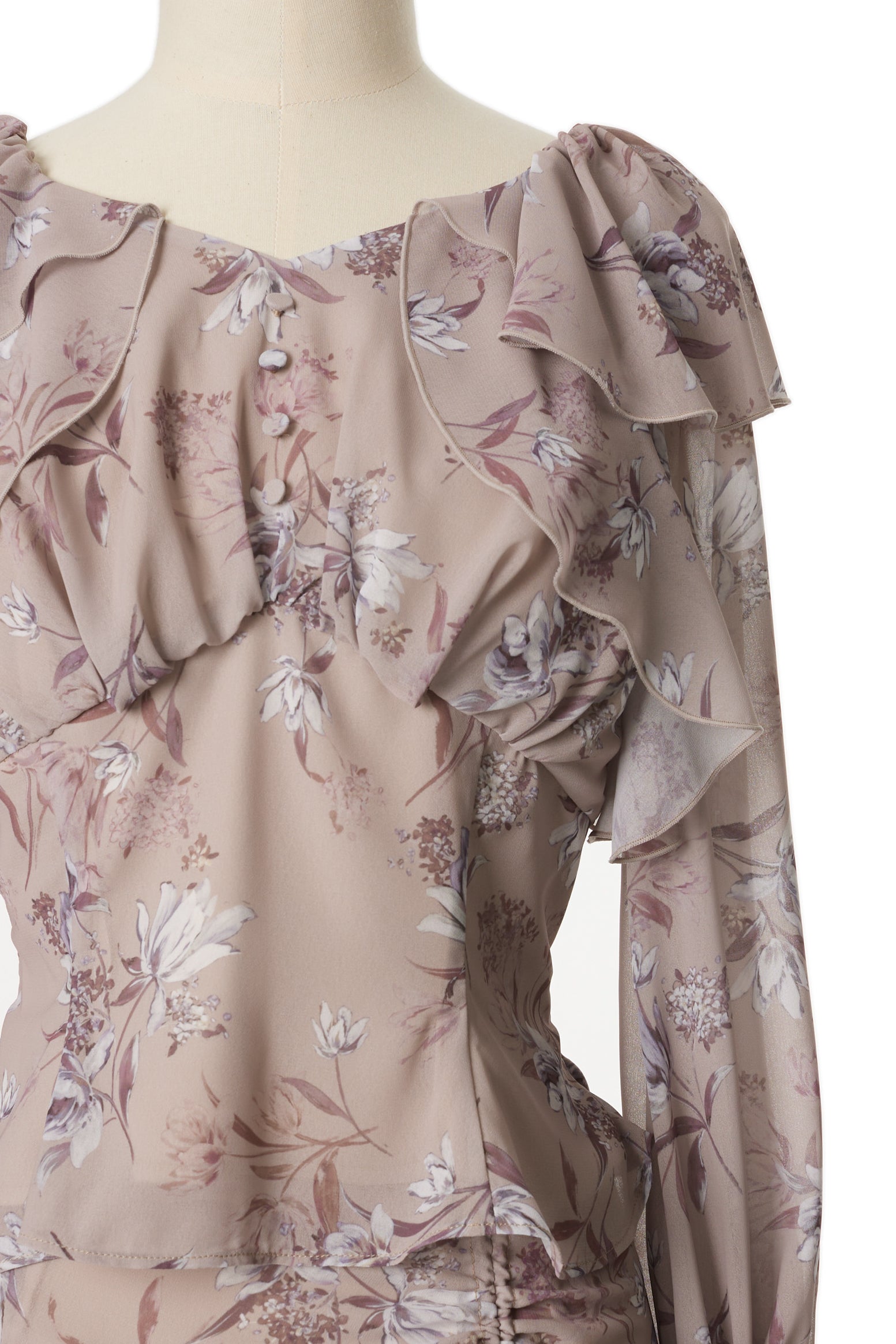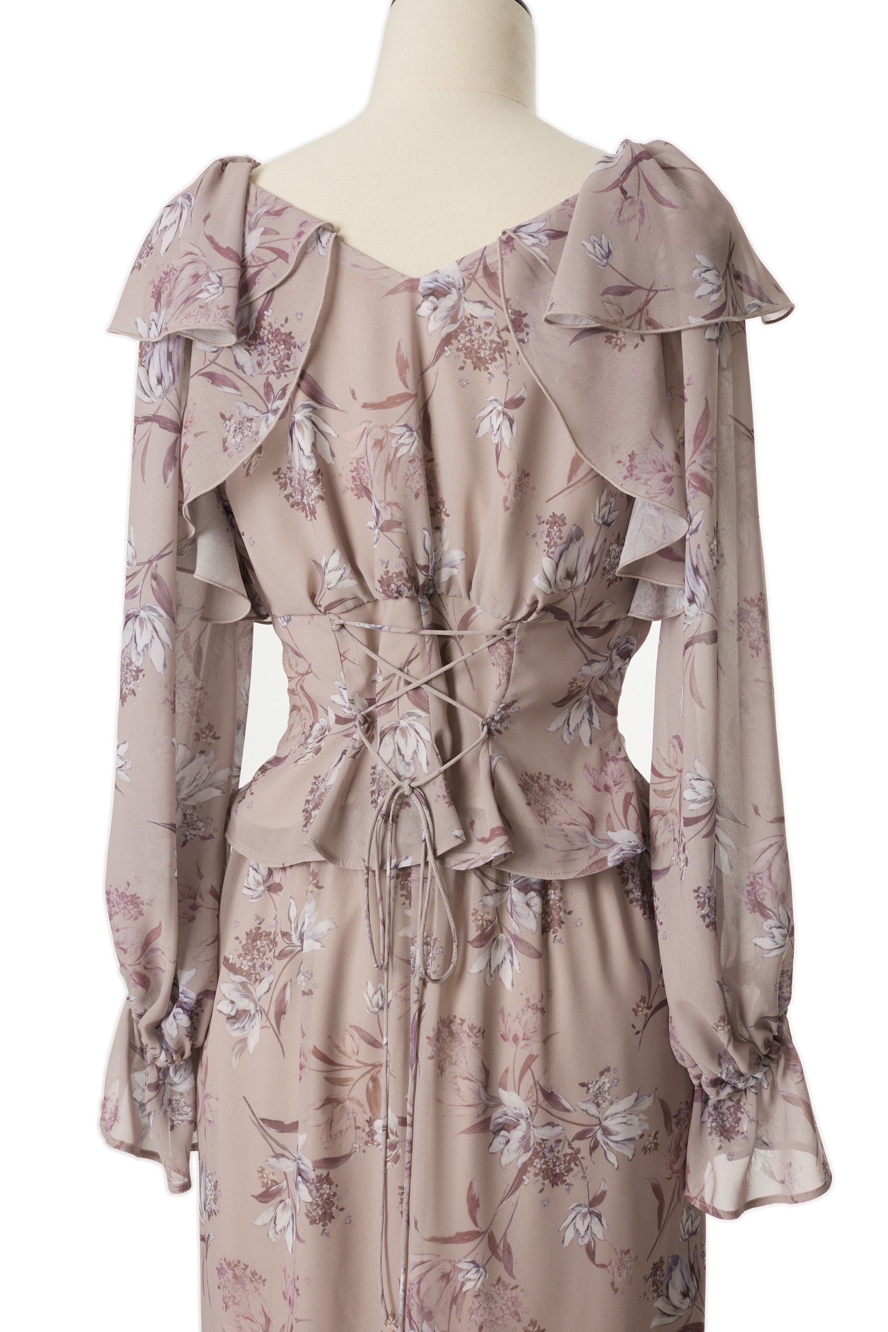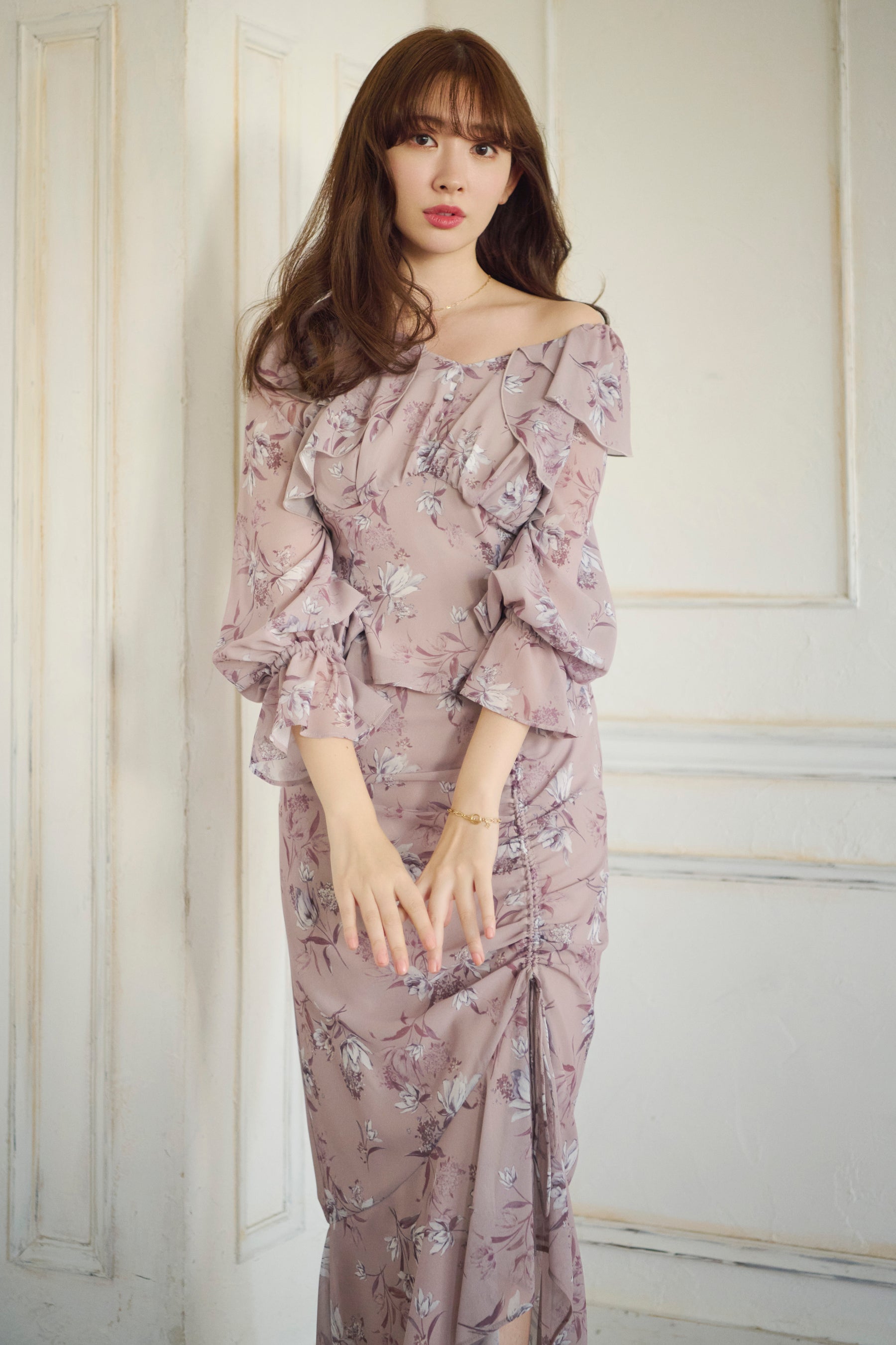 オリジナルプリントの花々がエレガントな雰囲気を引き立てます。
