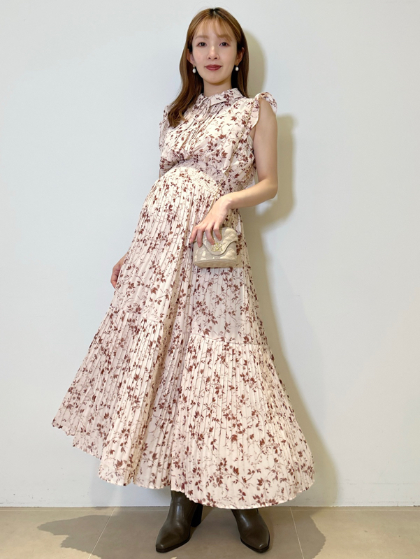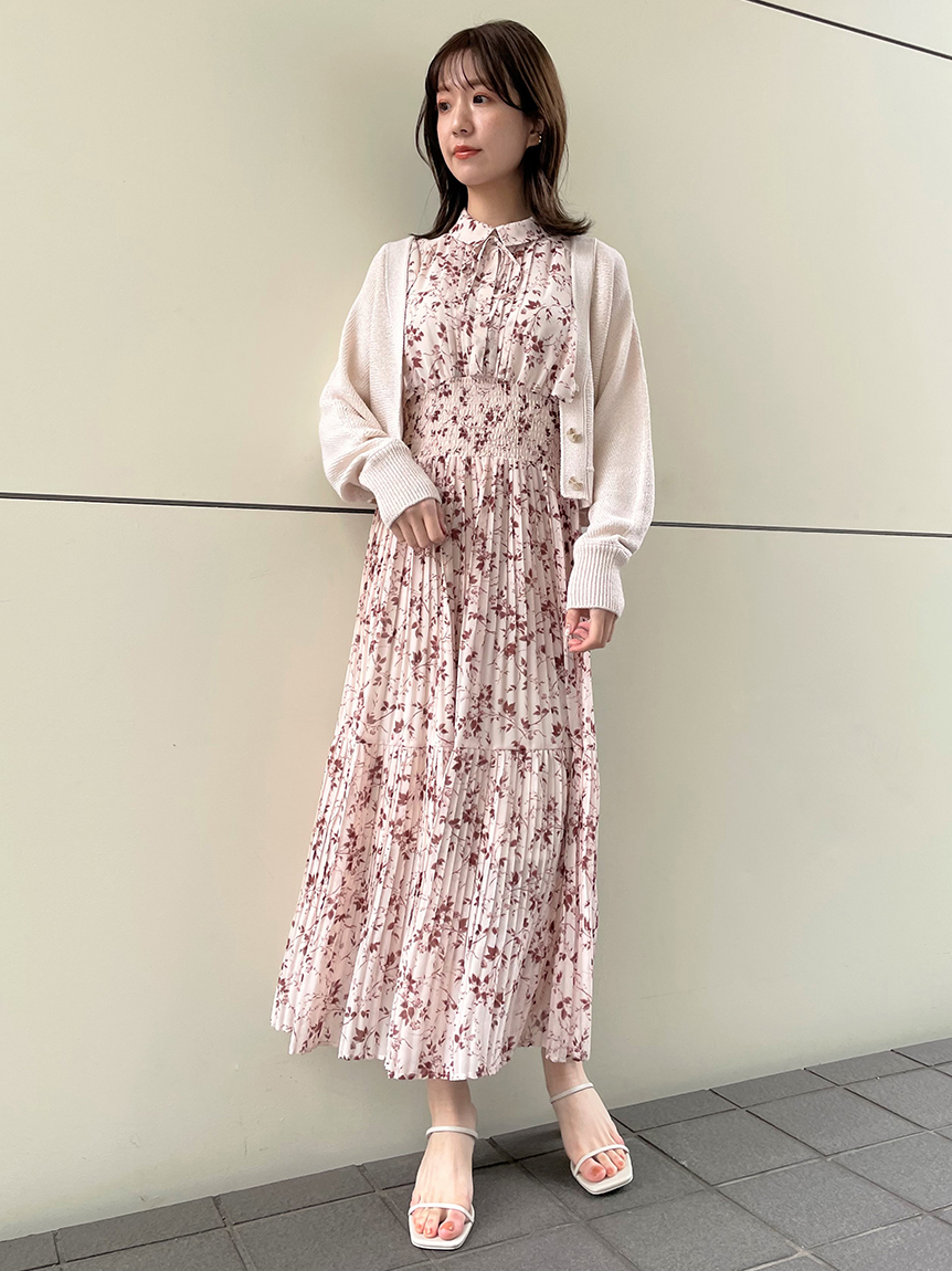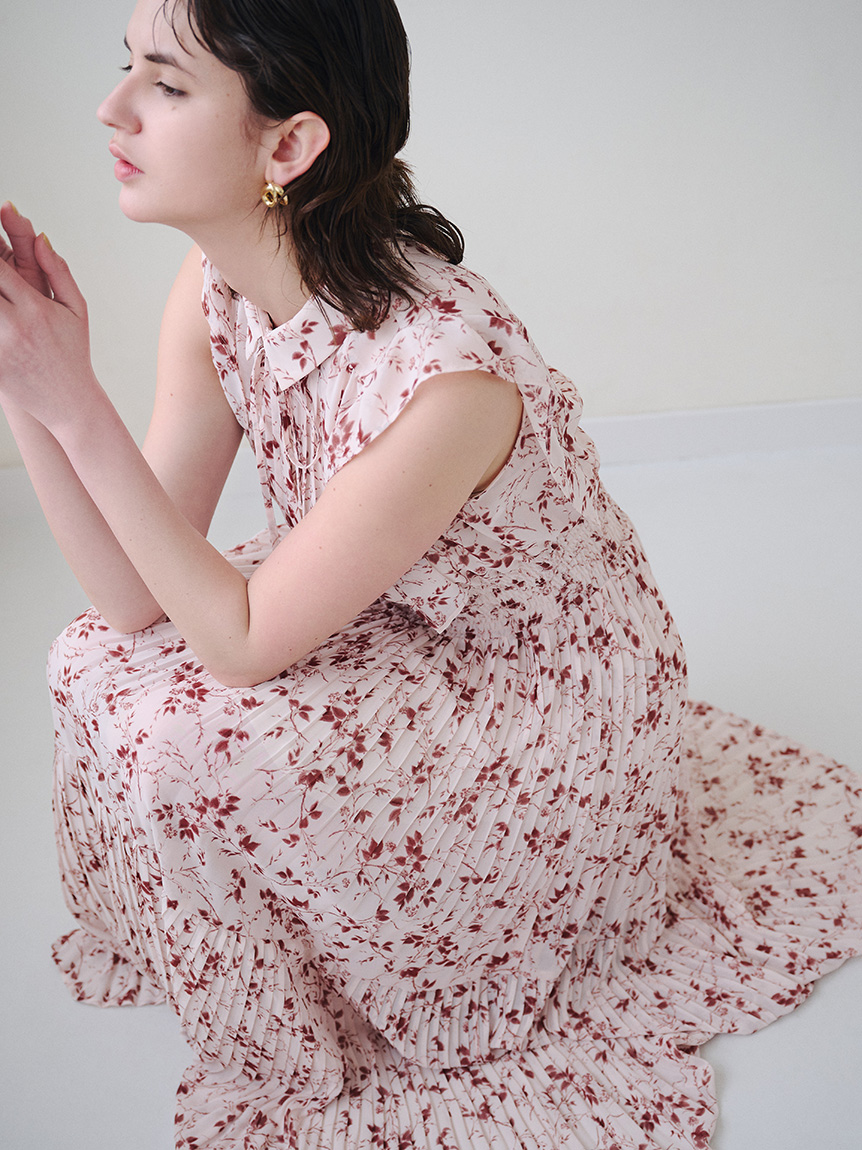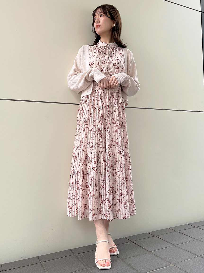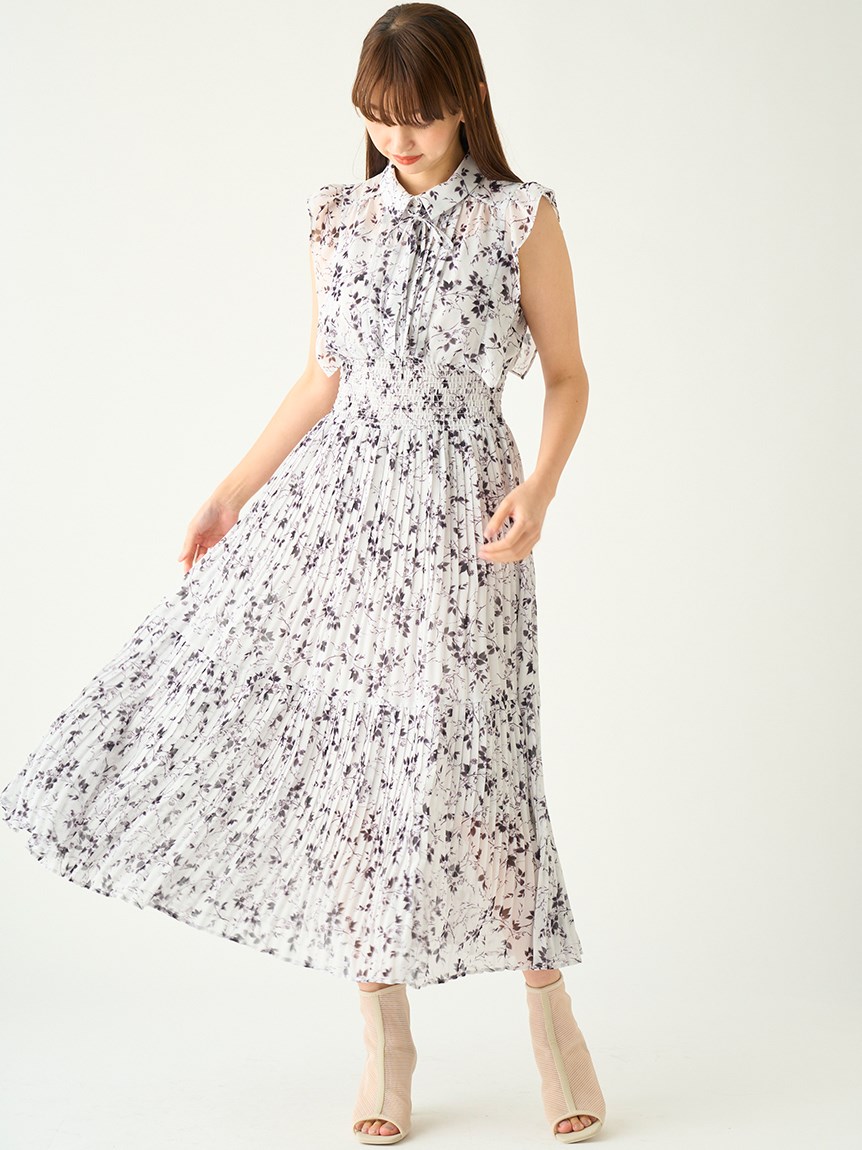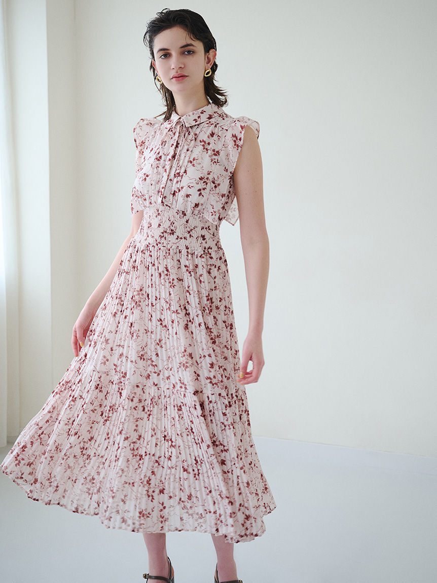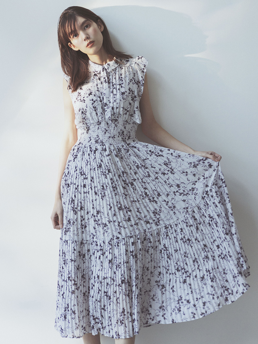【春らしい華やかさで人気のプリントプリーツワンピース】