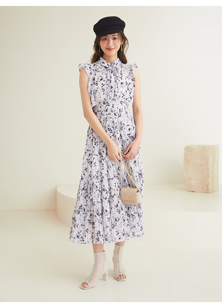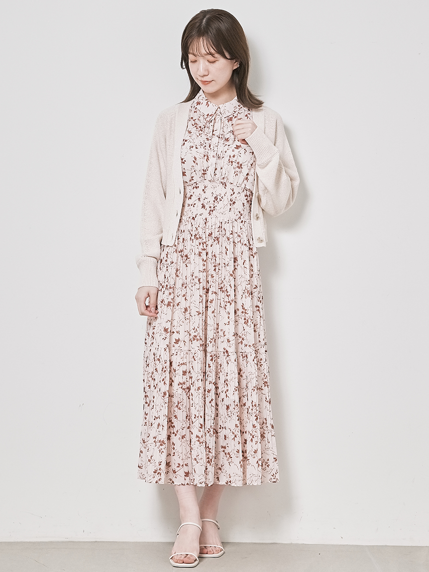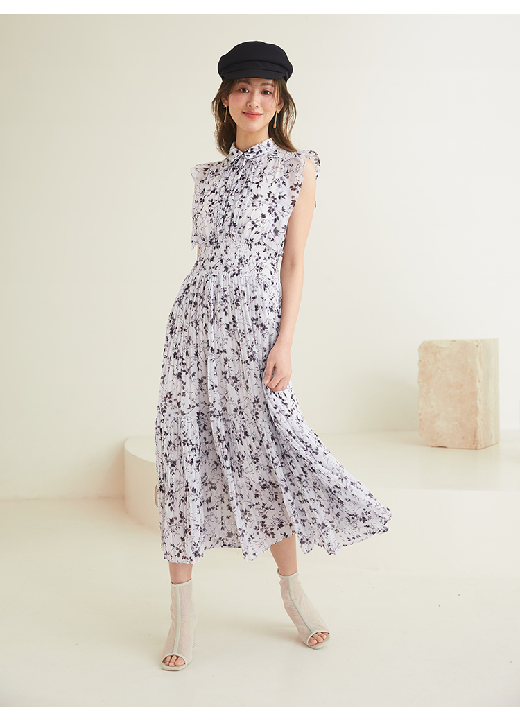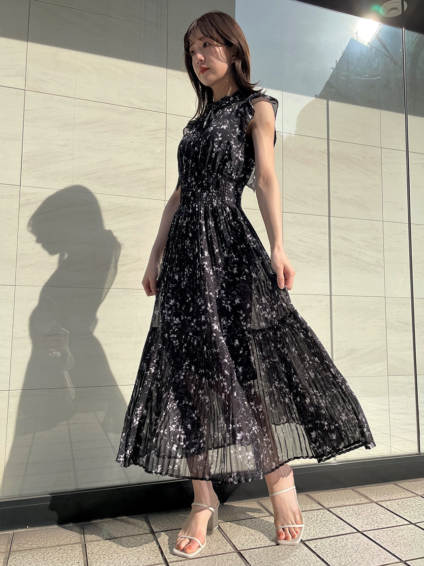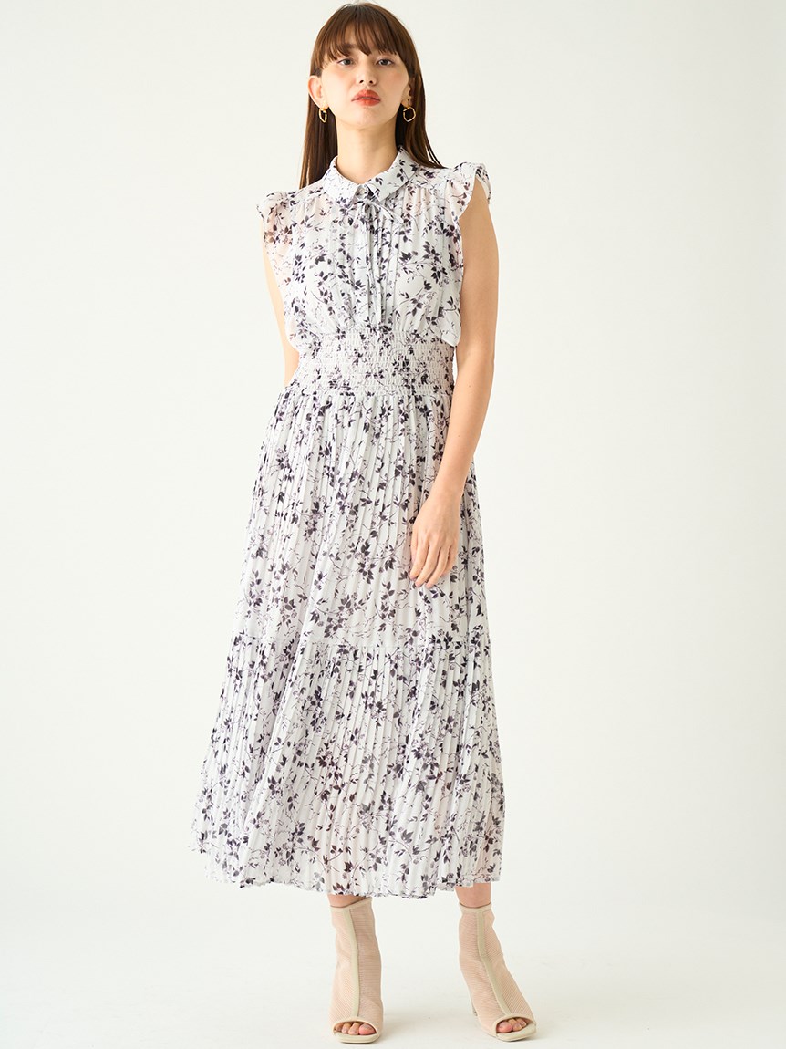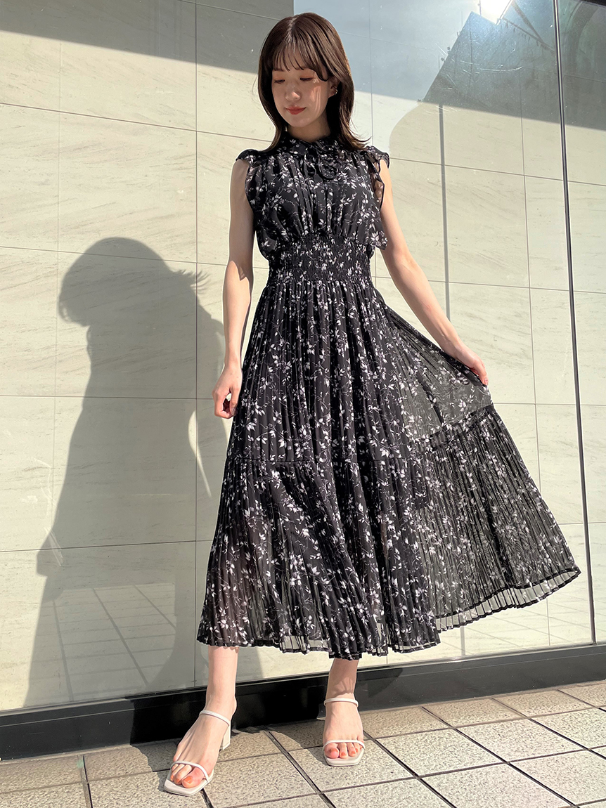 【春らしい華やかさで人気のプリントプリーツワンピース】