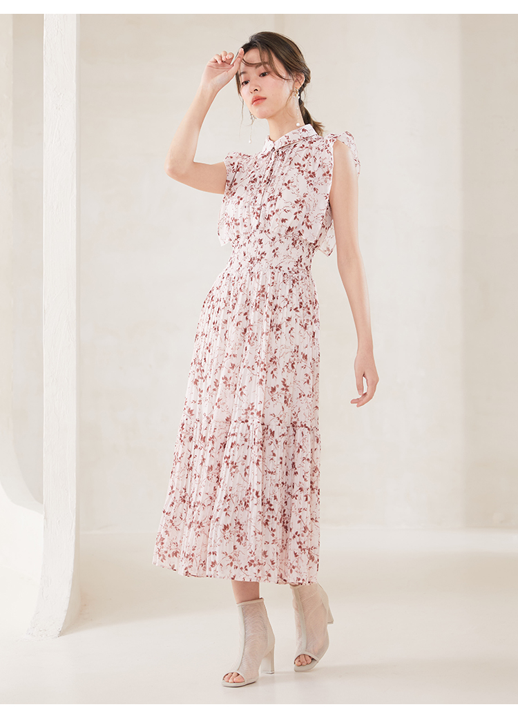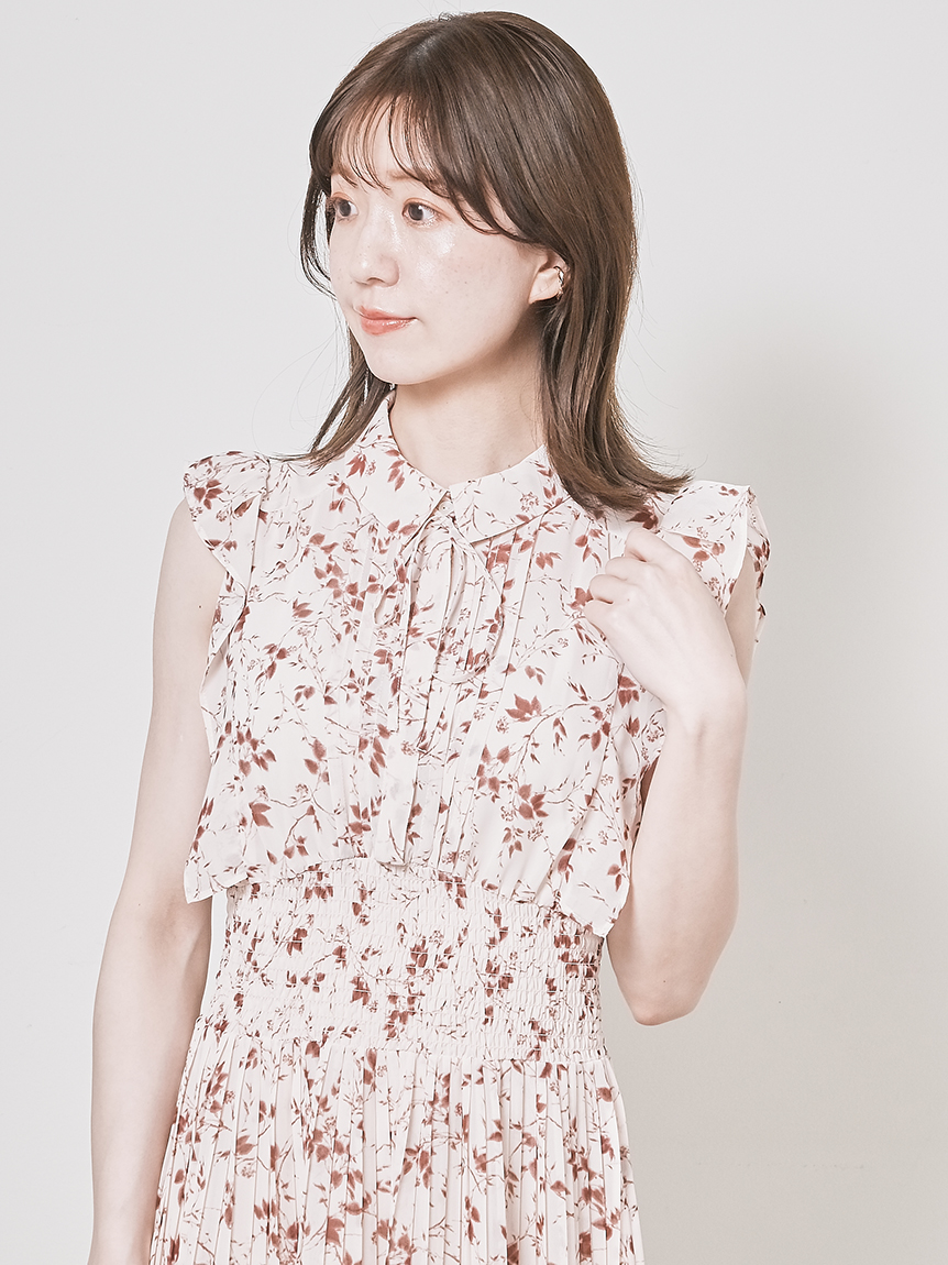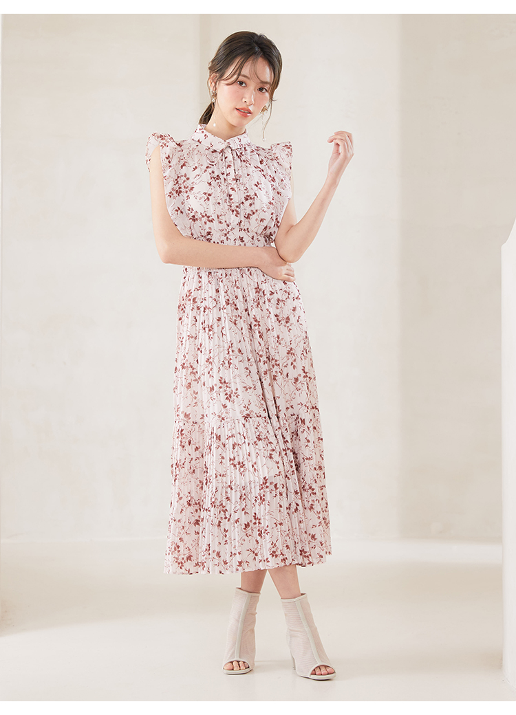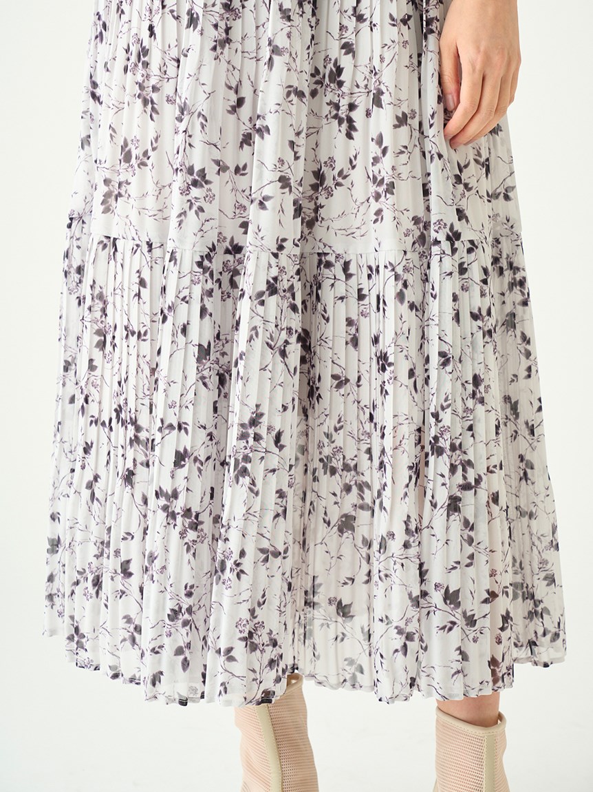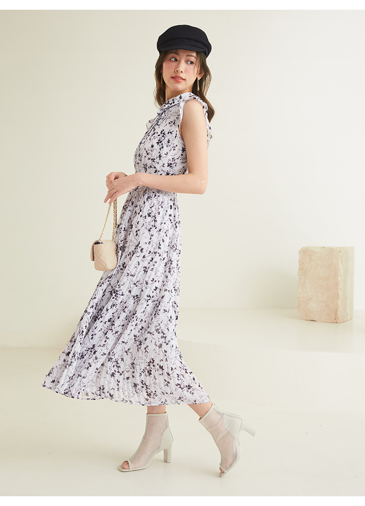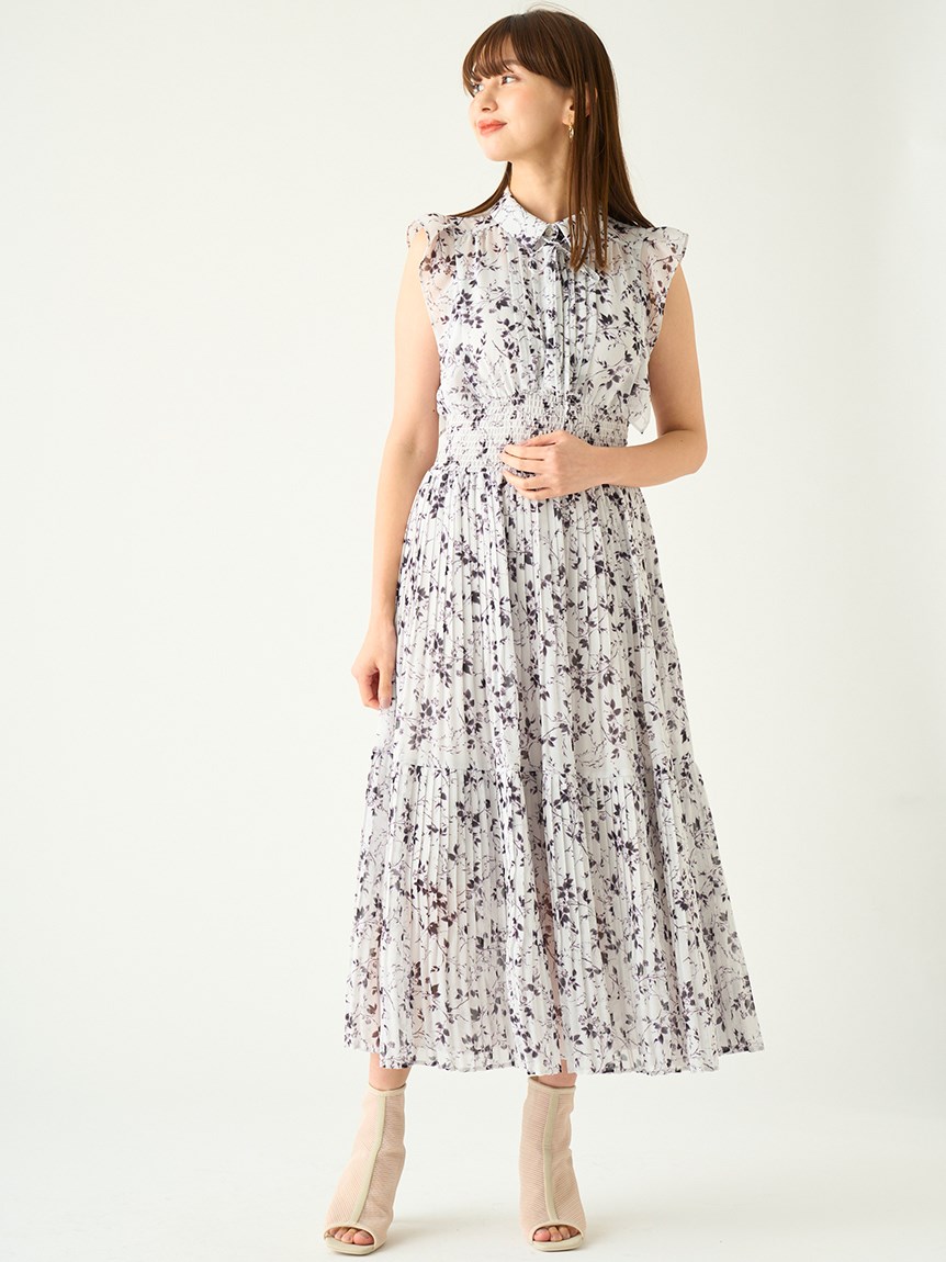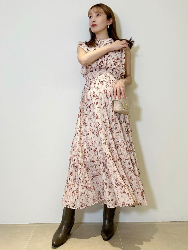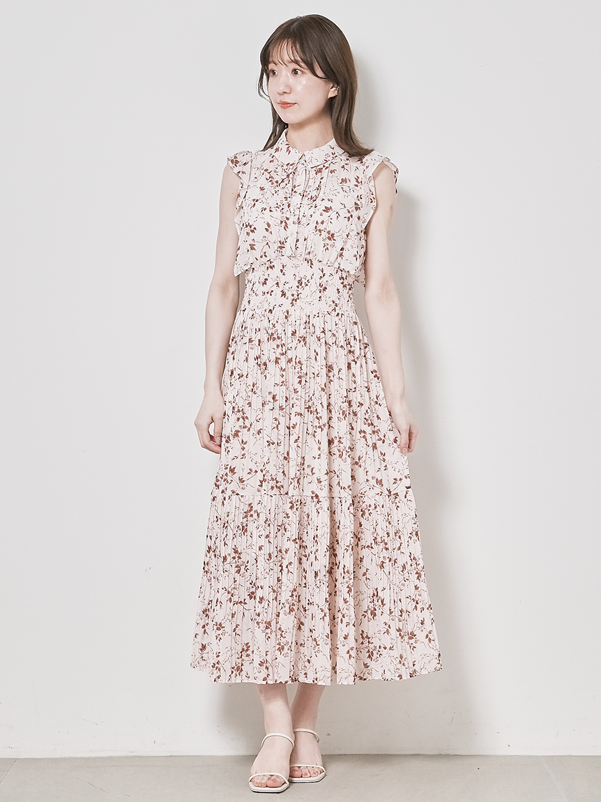 【春らしい華やかさで人気のプリントプリーツワンピース】