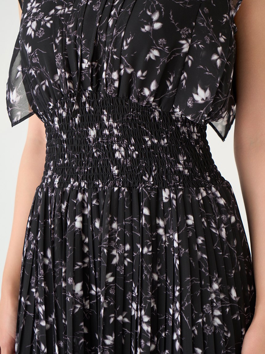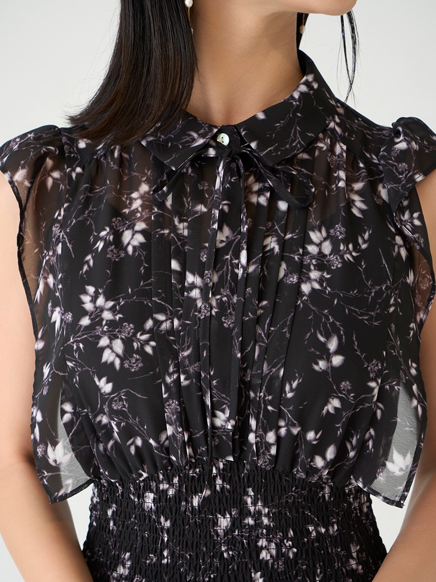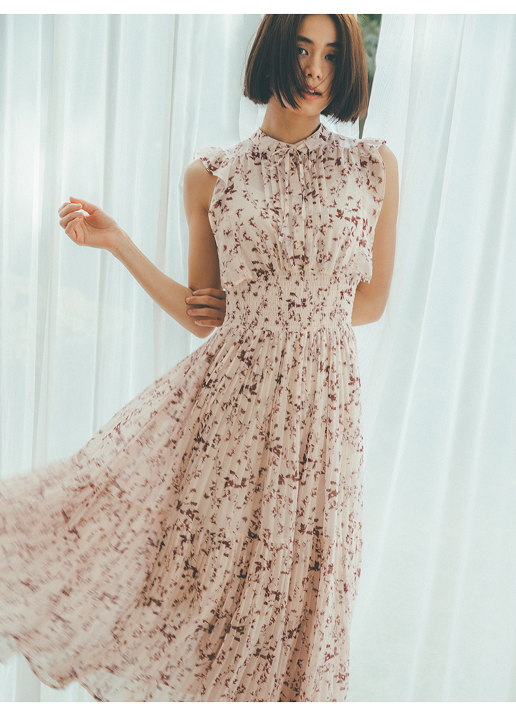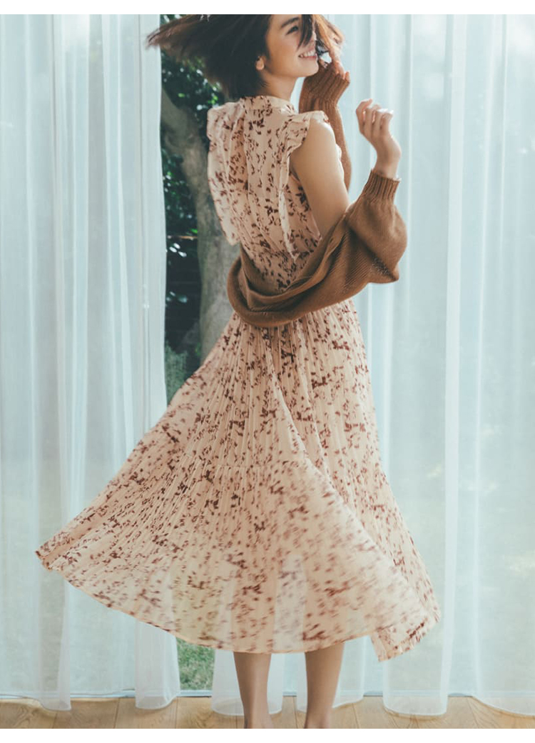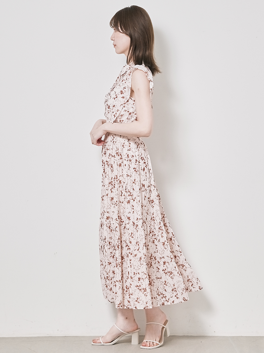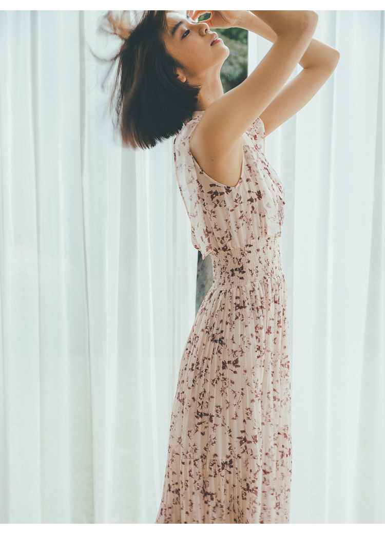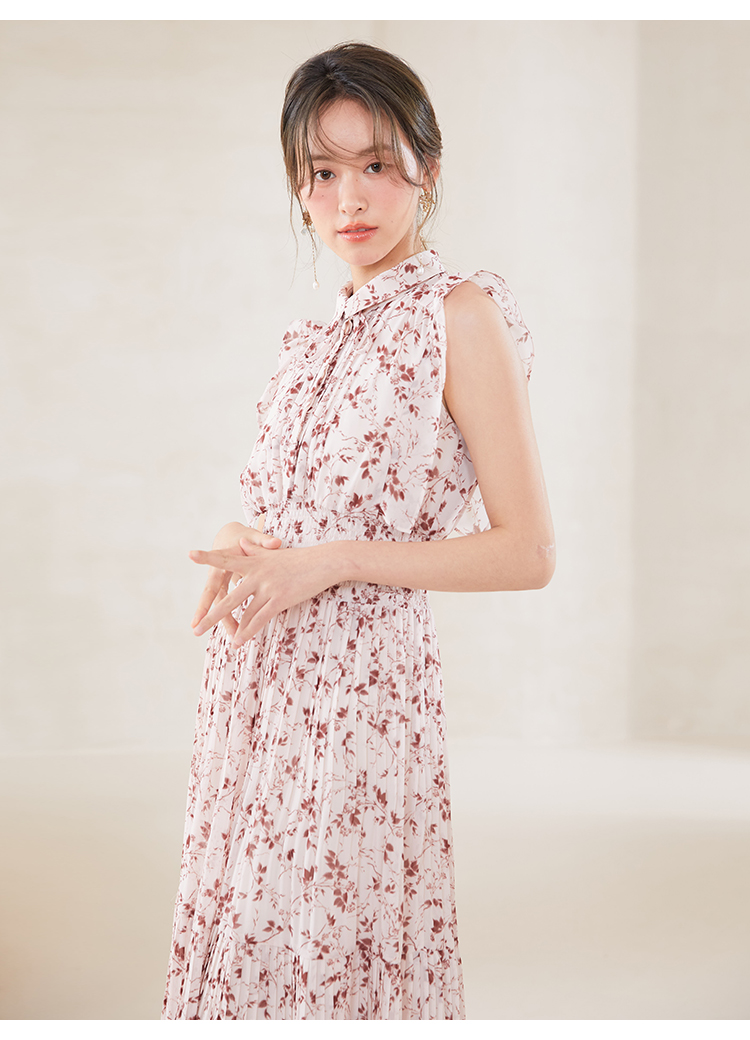 【春らしい華やかさで人気のプリントプリーツワンピース】