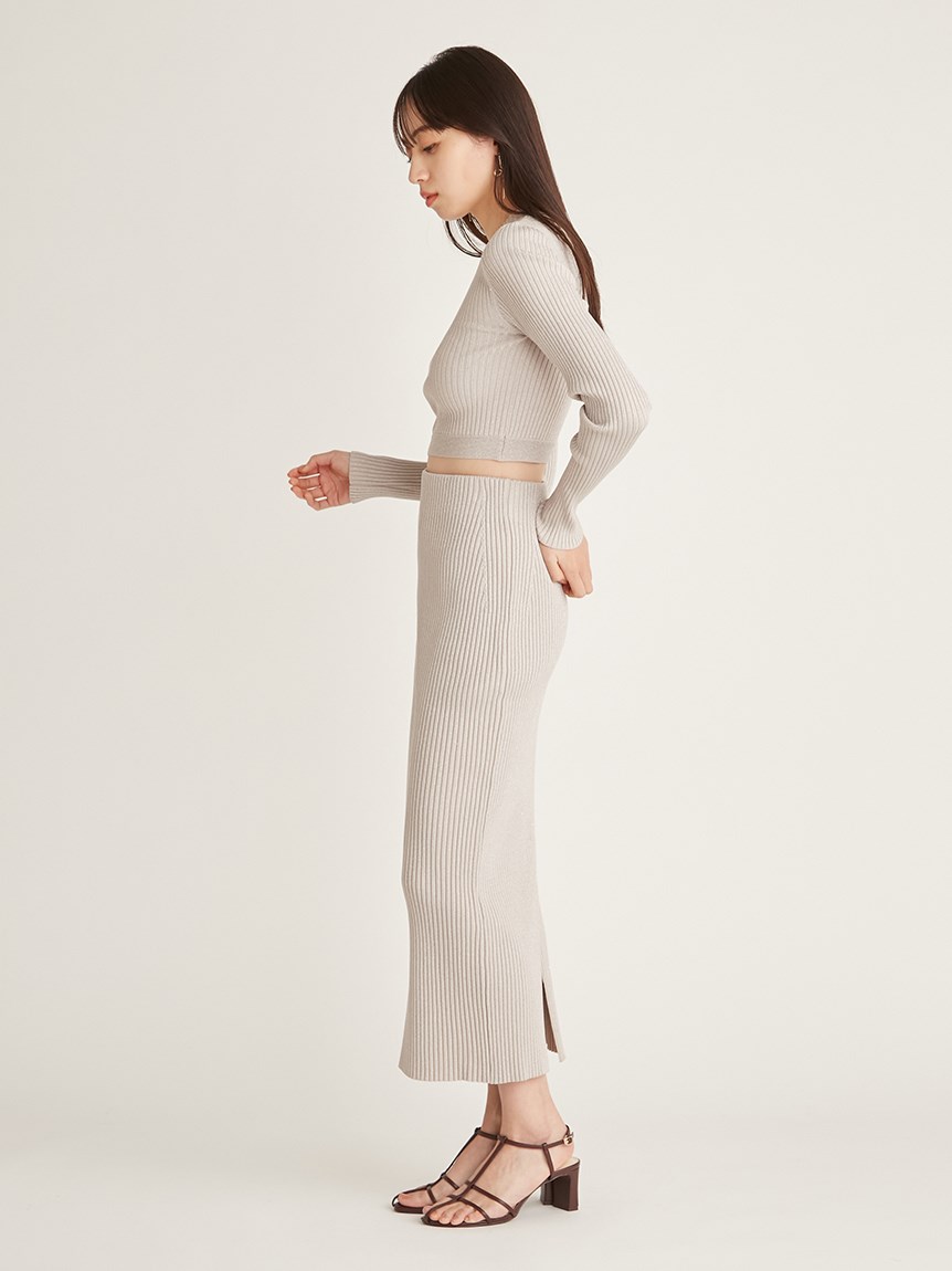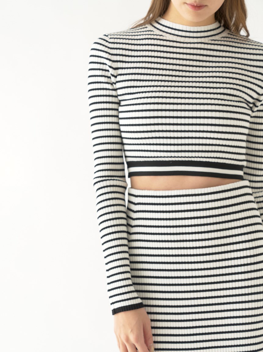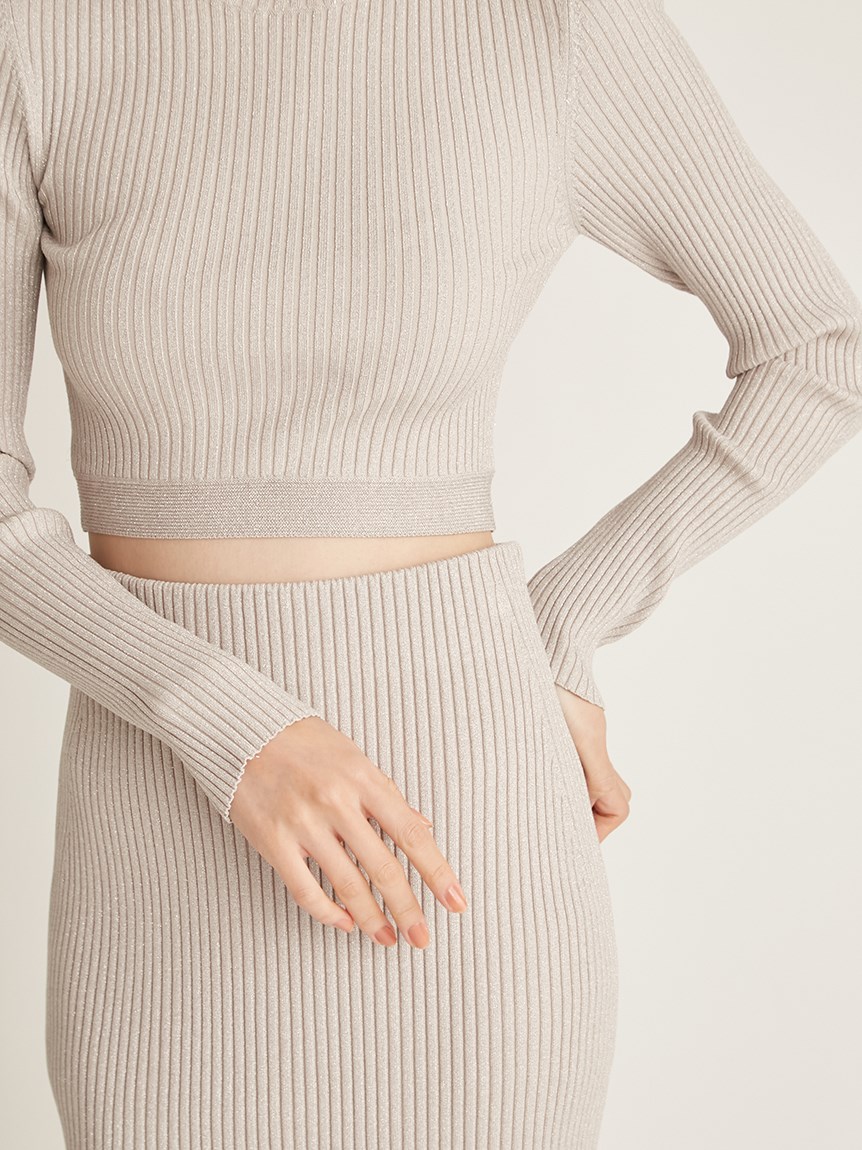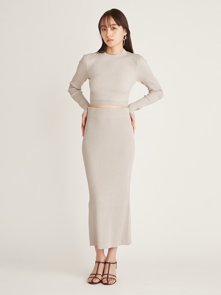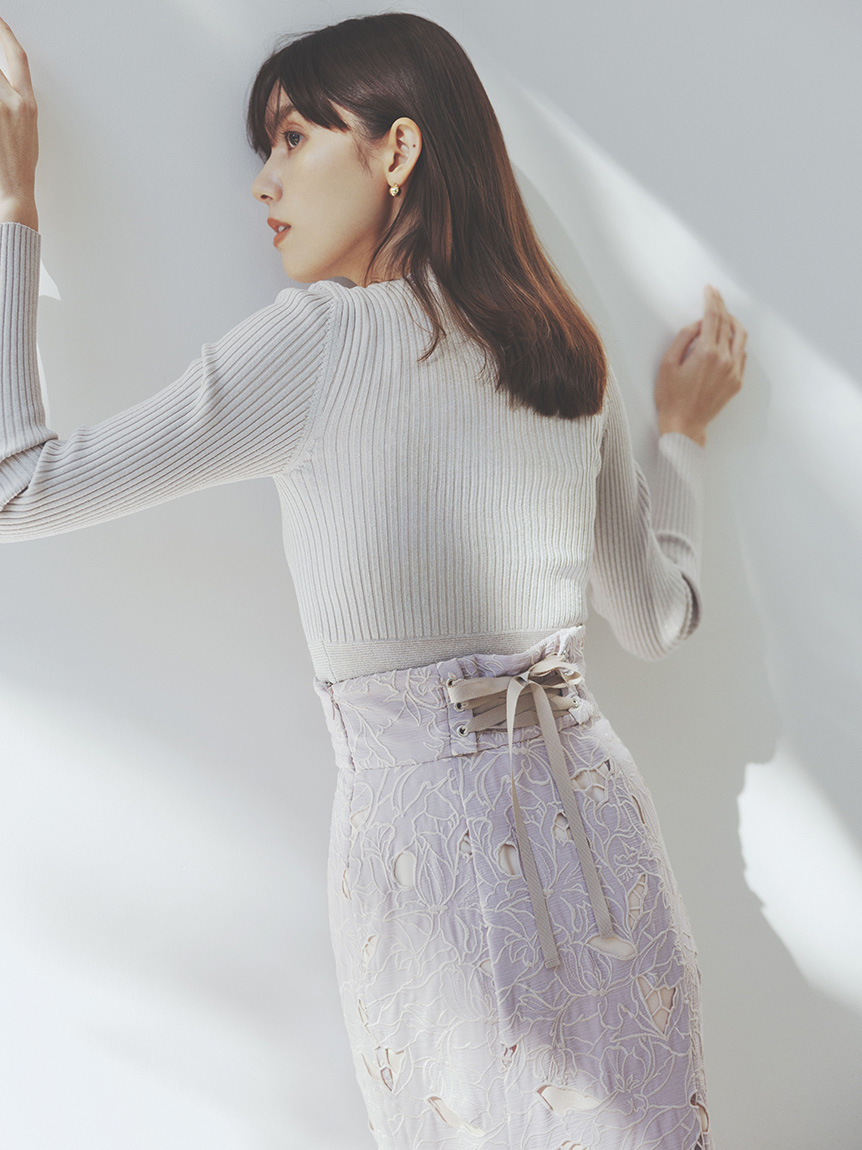 クロップド丈に仕立てトレンド感を押さえたリブニットプルオーバー。裾部分のみ横編みにすることでシンプルな中にもさり気なくアクセントをプラスしています。ボディラインにフィットするコンパクトなシルエットが女性らしさを感じさせる秘訣。パンツともスカートとも合わせやすく、レイヤードのインナーとしても活用できるので、スタイリングの幅はぐっと広がります。同素材でスカート(SWNS231183)もご用意があるのでセットアップでも着用可能です。