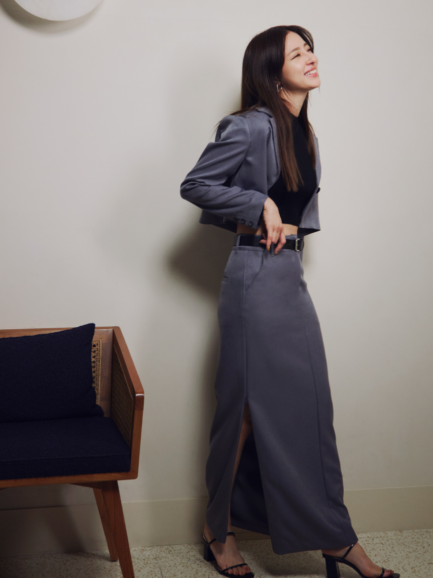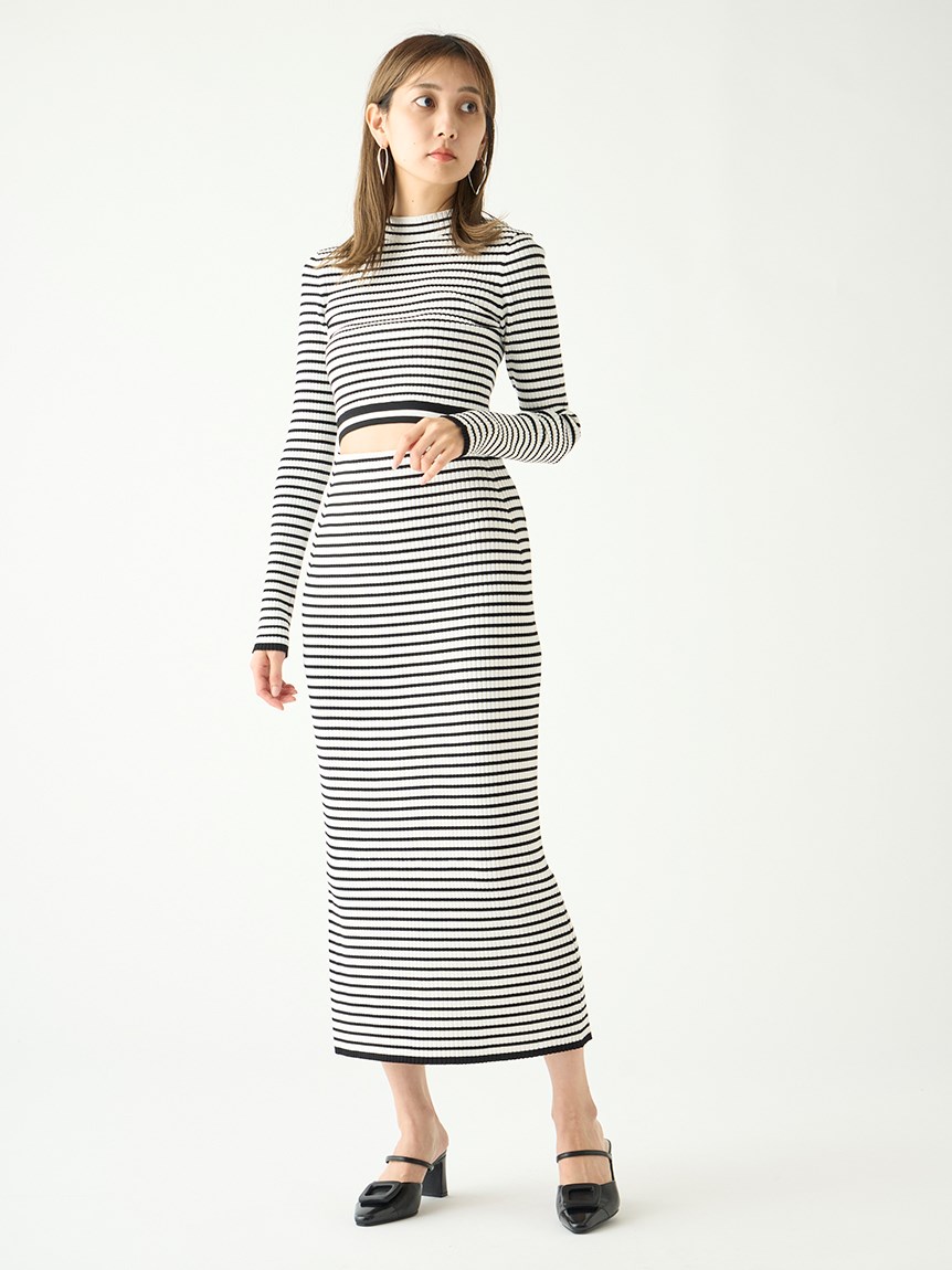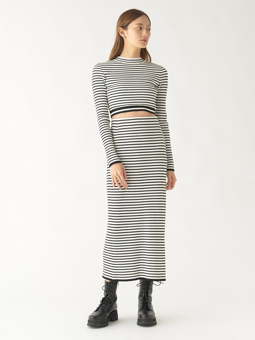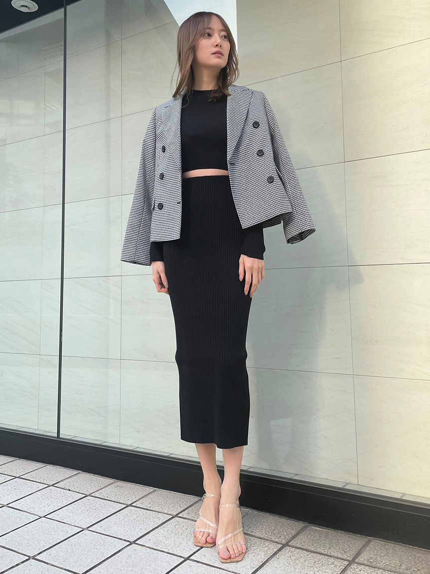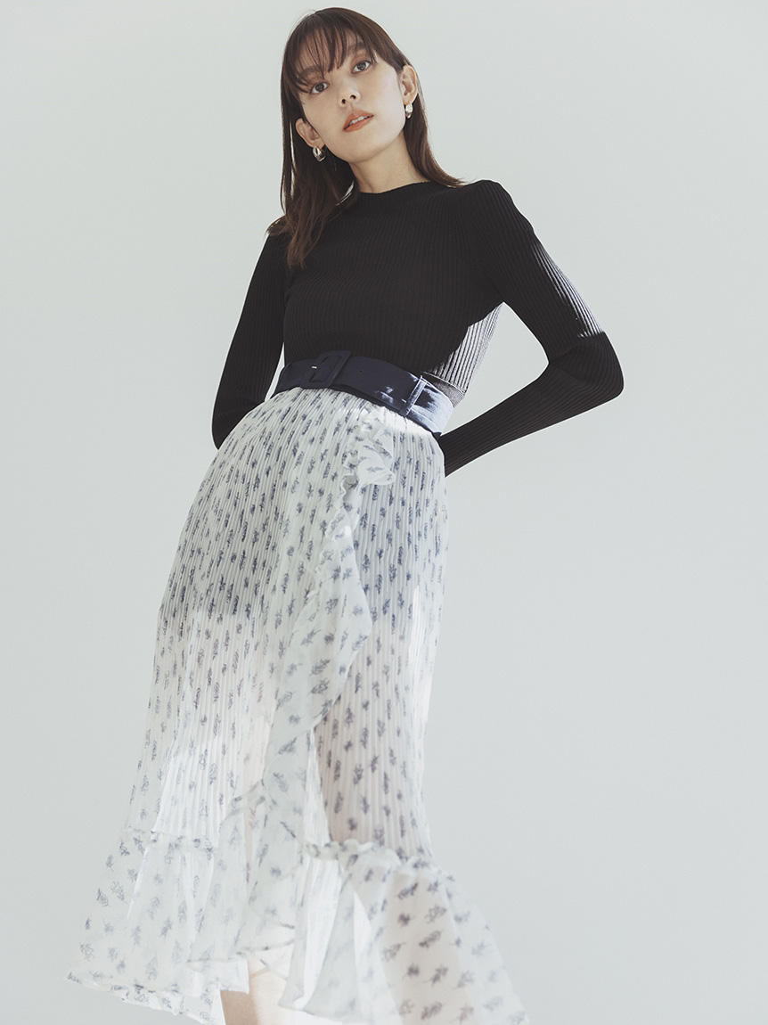 クロップド丈に仕立てトレンド感を押さえたリブニットプルオーバー。裾部分のみ横編みにすることでシンプルな中にもさり気なくアクセントをプラスしています。ボディラインにフィットするコンパクトなシルエットが女性らしさを感じさせる秘訣。パンツともスカートとも合わせやすく、レイヤードのインナーとしても活用できるので、スタイリングの幅はぐっと広がります。同素材でスカート(SWNS231183)もご用意があるのでセットアップでも着用可能です。