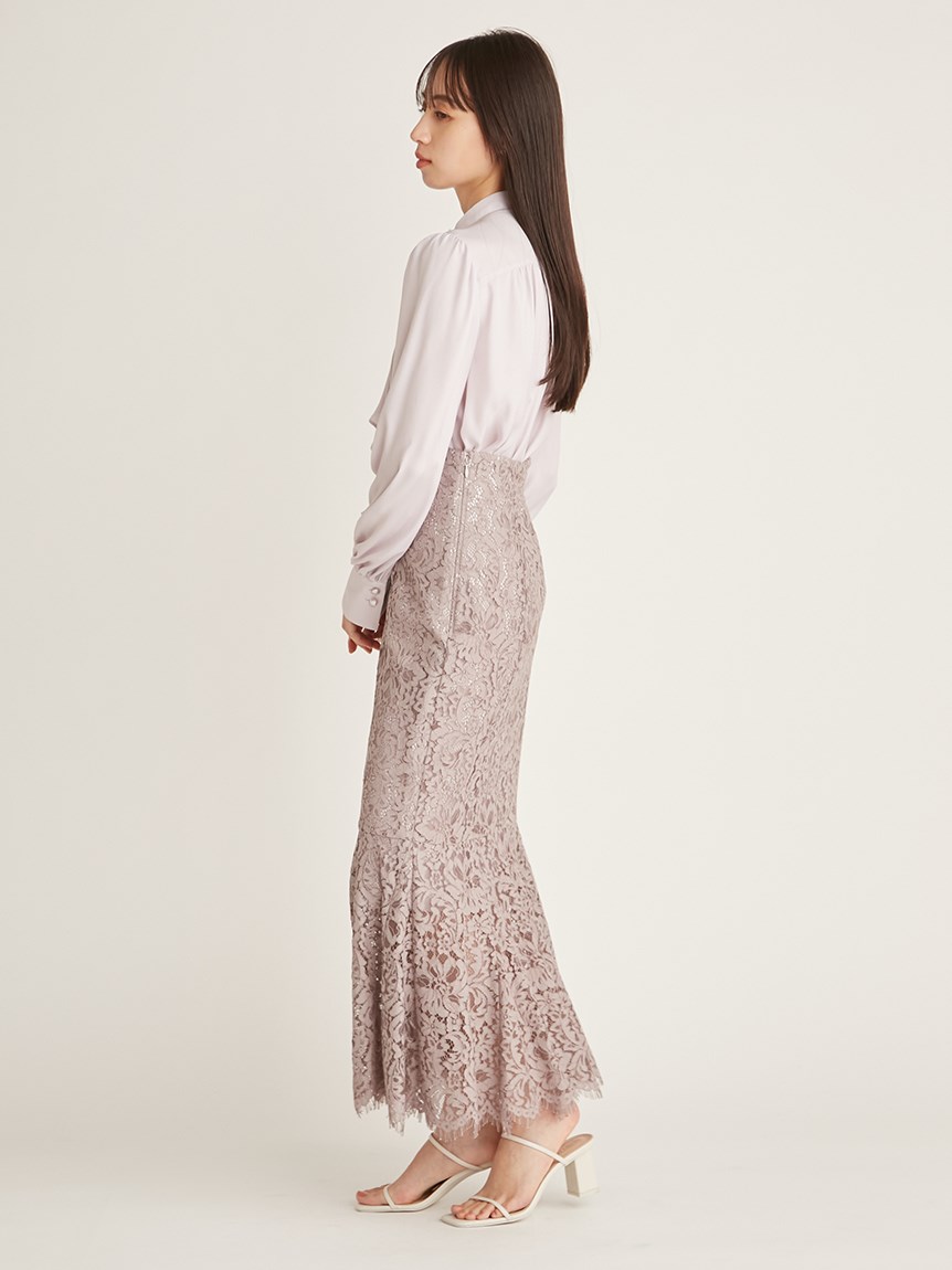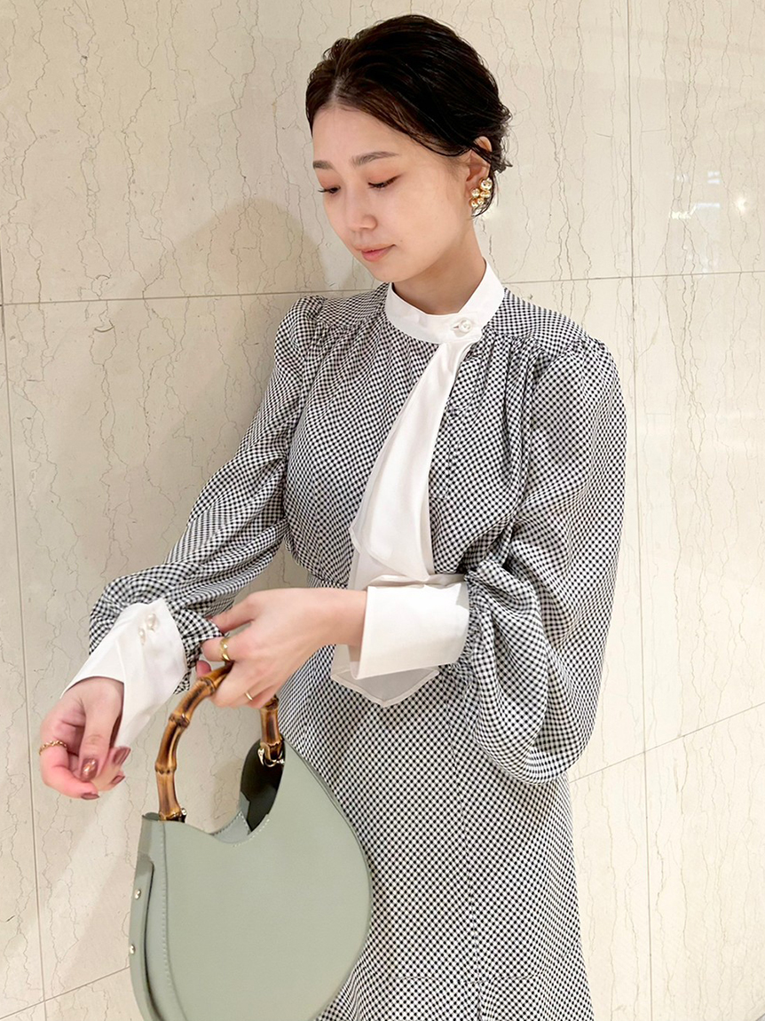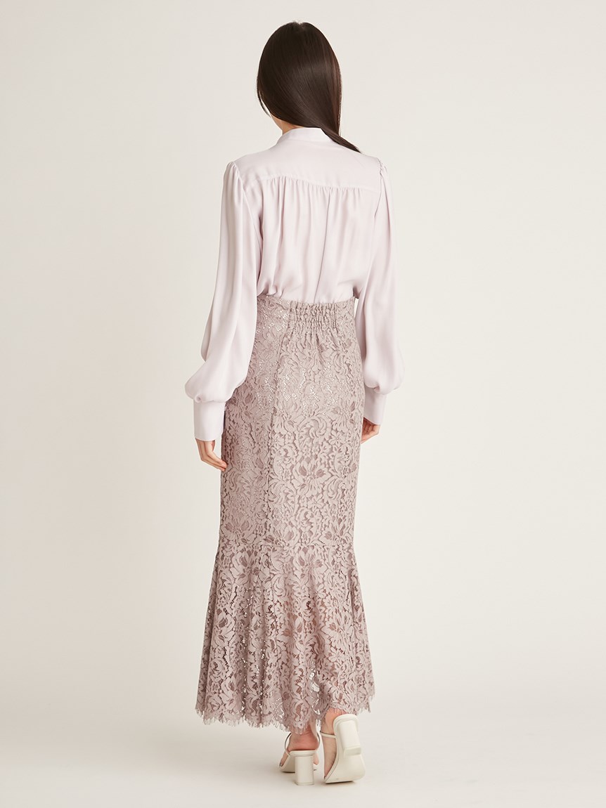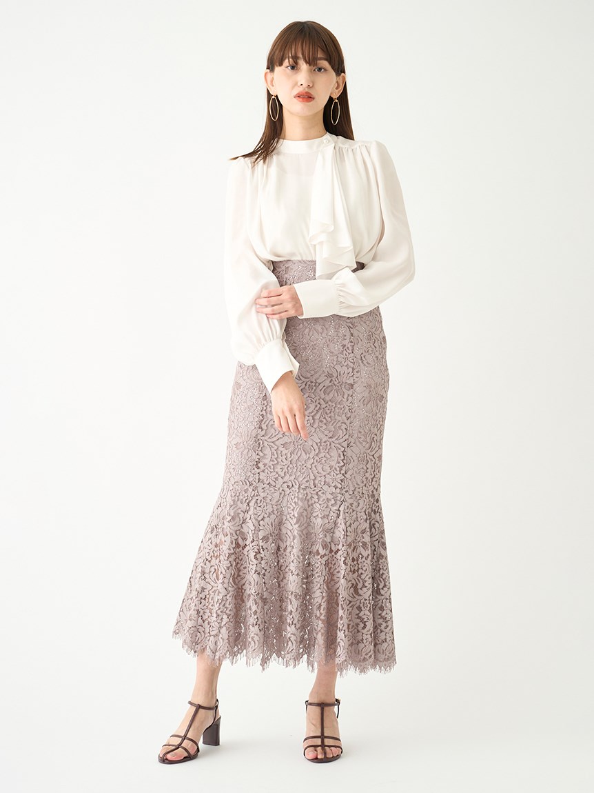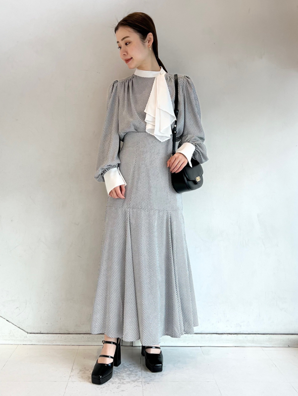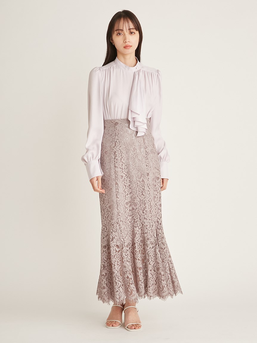 クラシカルなボウタイ&パールボタンがポイントになった、清楚な印象を与えるブラウス。品の良い仕上がりでデイリーからオフィスシーンまで幅広く合わせやすく、着まわし力の高い万能な1着です。袖の内側にはスリットを入れさり気ない肌見せを演出。バリエロングスカート(SWFS231168)やレーススカート(SWFS231203)とカラーを合わせてセットアップのようにコーディネートするのもおすすめです。