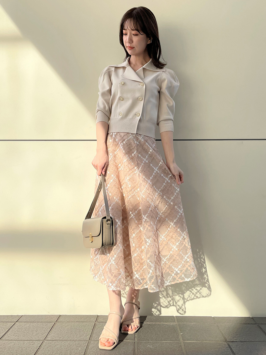 繊細さと華やかさが絶妙なバランスで表現された人気のエンブロイダリースカートが今季も登場。今シーズンは煌めきをプラスした「SNIDEL」オリジナルの図案でパッと目を引く主役級の1着に仕上げました。たっぷりのフレアでボリュームを出した女性らしいシルエットが好印象。シンプルなトップスを合わせてもサマになり、華やかさ溢れるスタイリングを叶えてくれます。