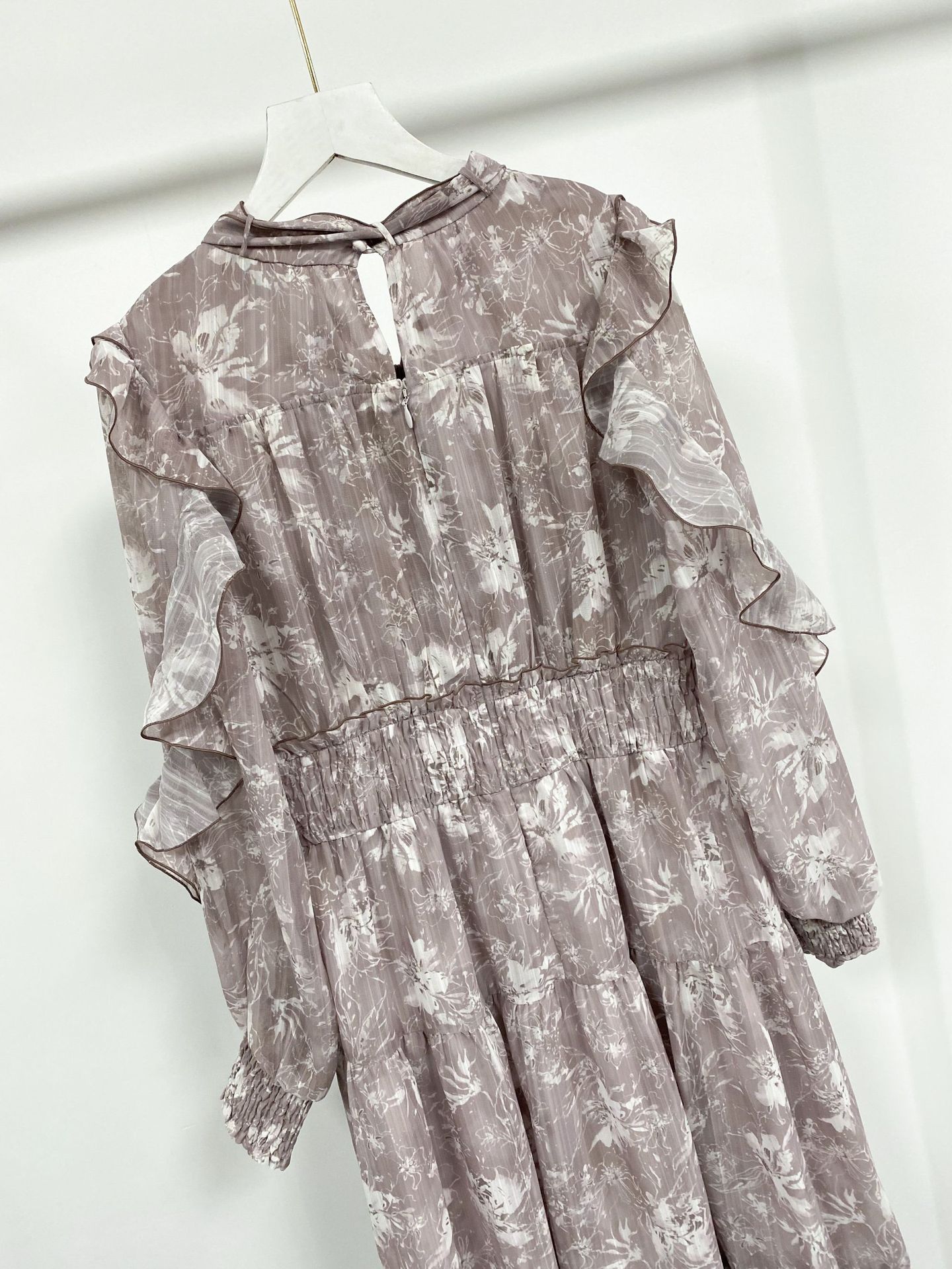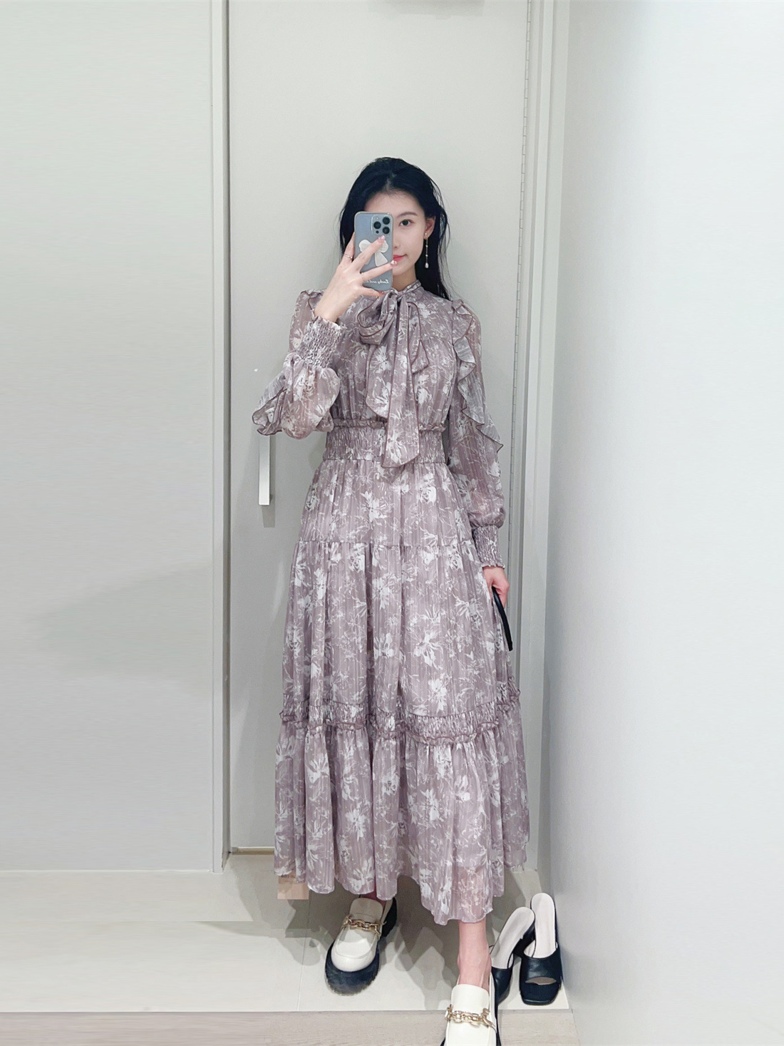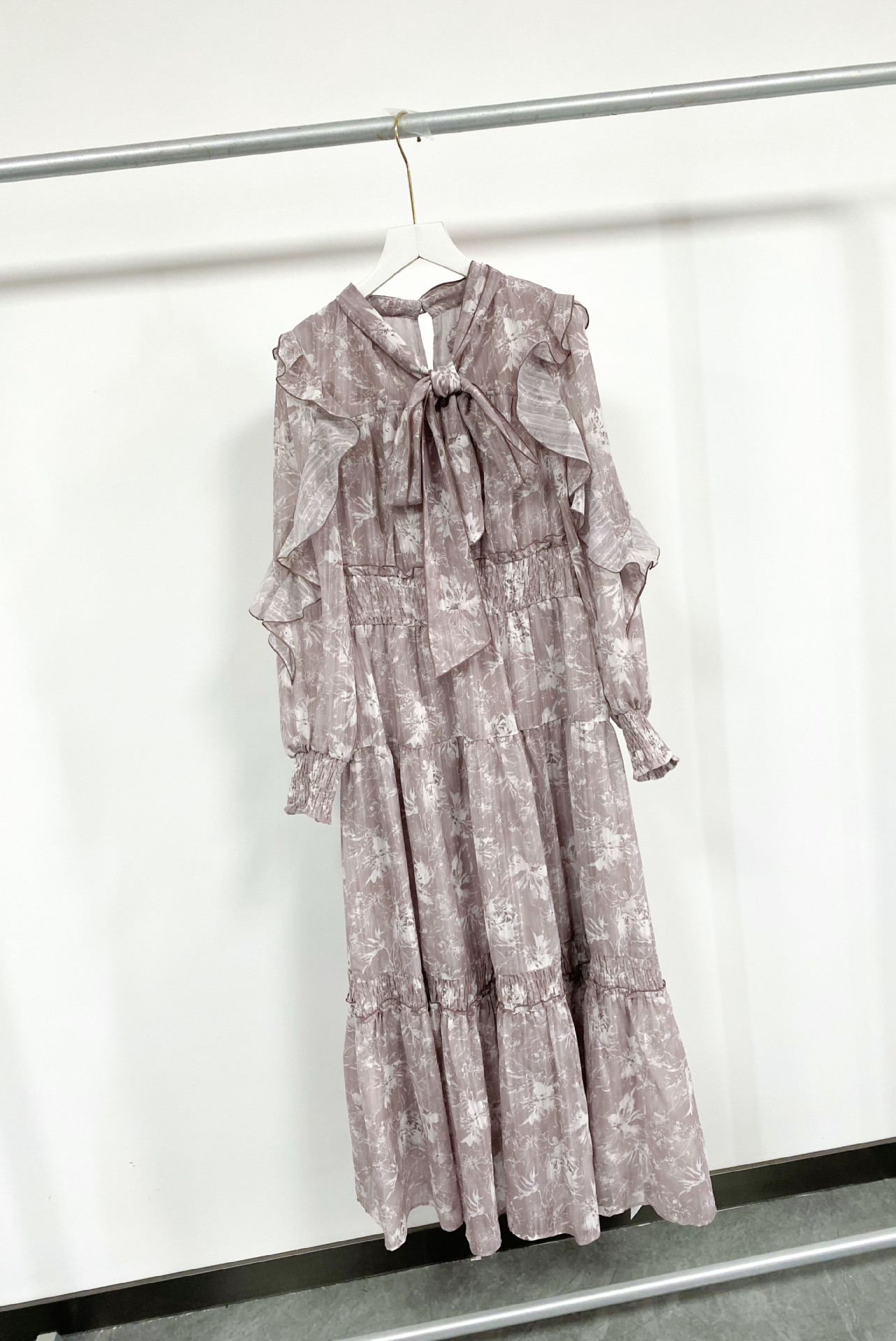 落ち着いたトーンのフラワープリントで、フェミニンさ薫るデザインに仕上げたワンピース。