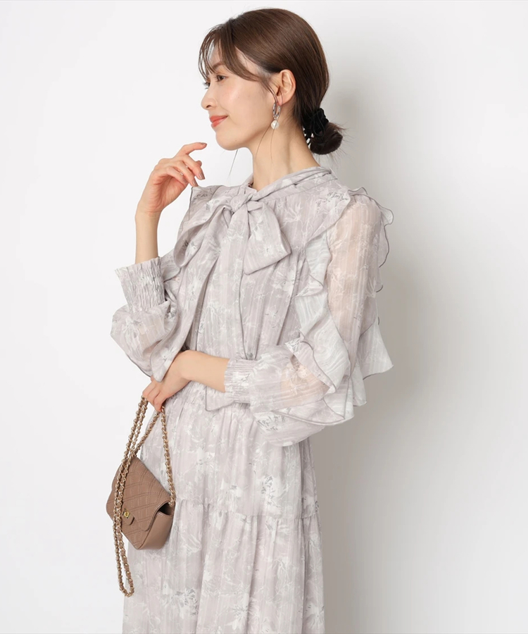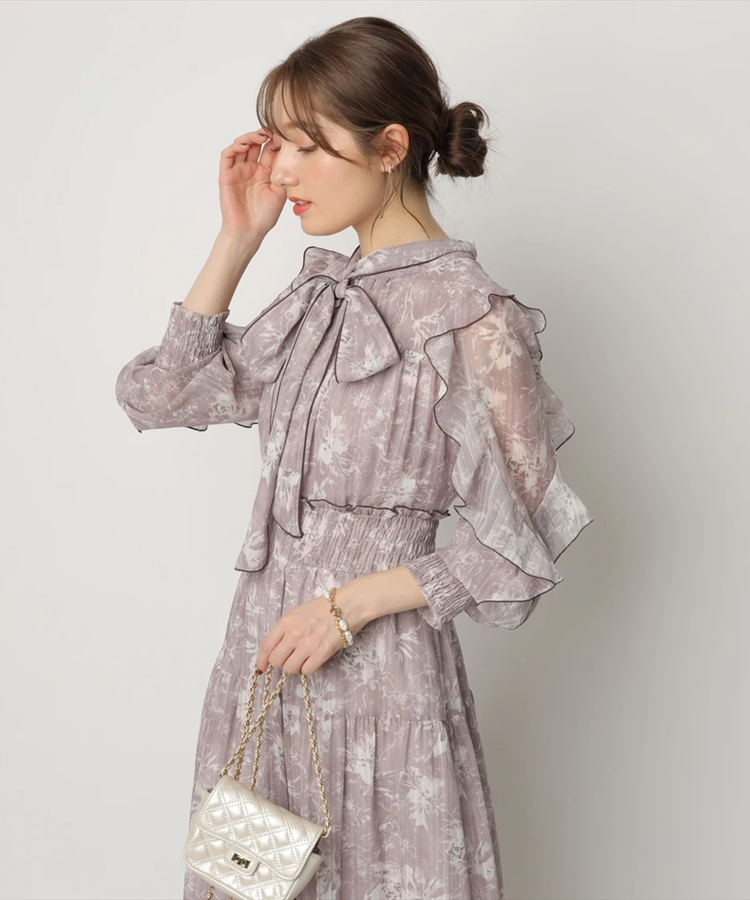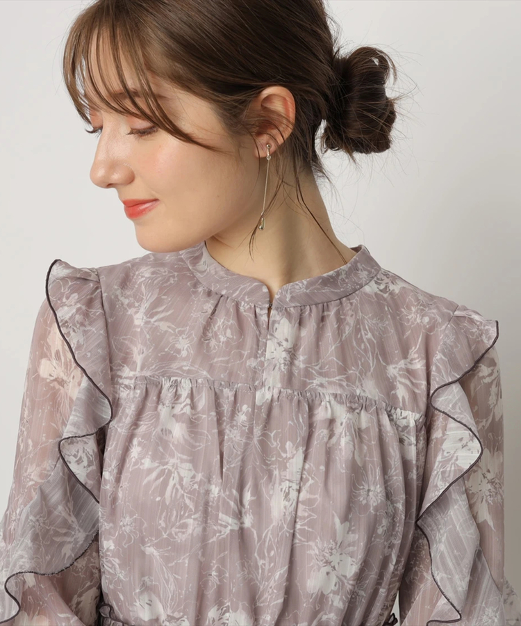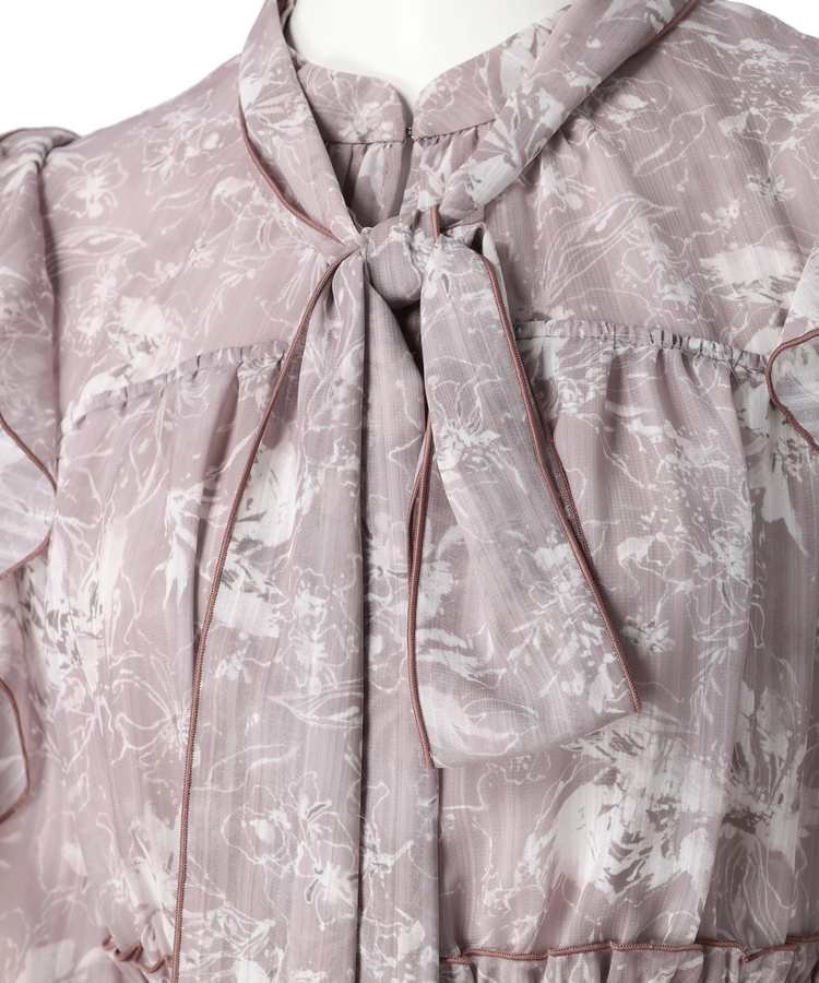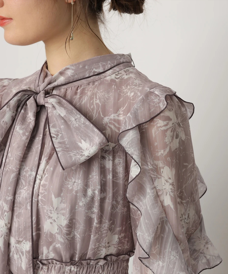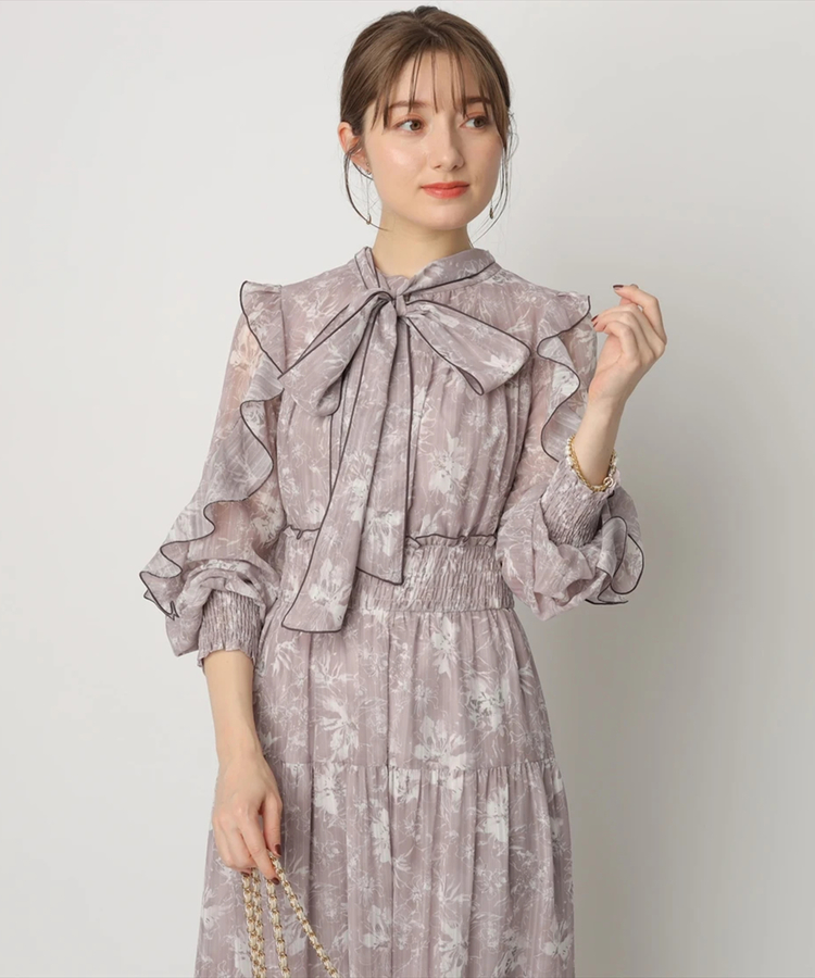 ラッフルフリルをあしらったシアーなスリーブも女性らしさを引き立たせます。華やかさをプラスするボウタイは取り外しが可能なので、アレンジが楽しめるのも嬉しいポイント◎