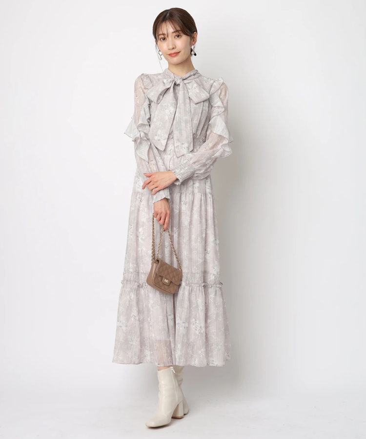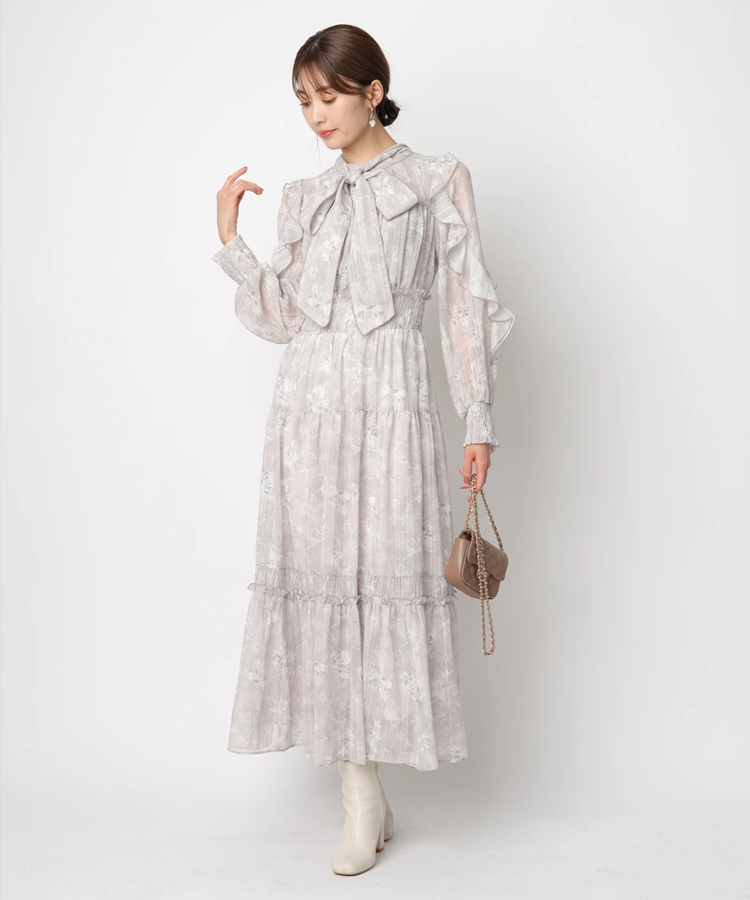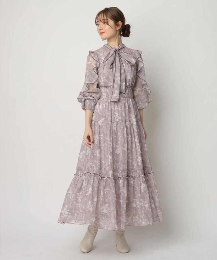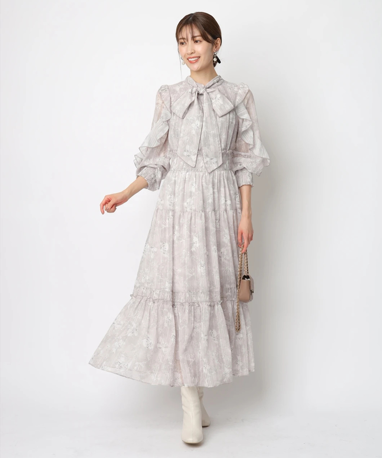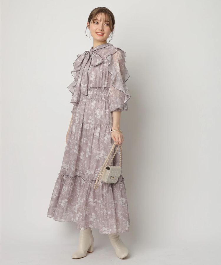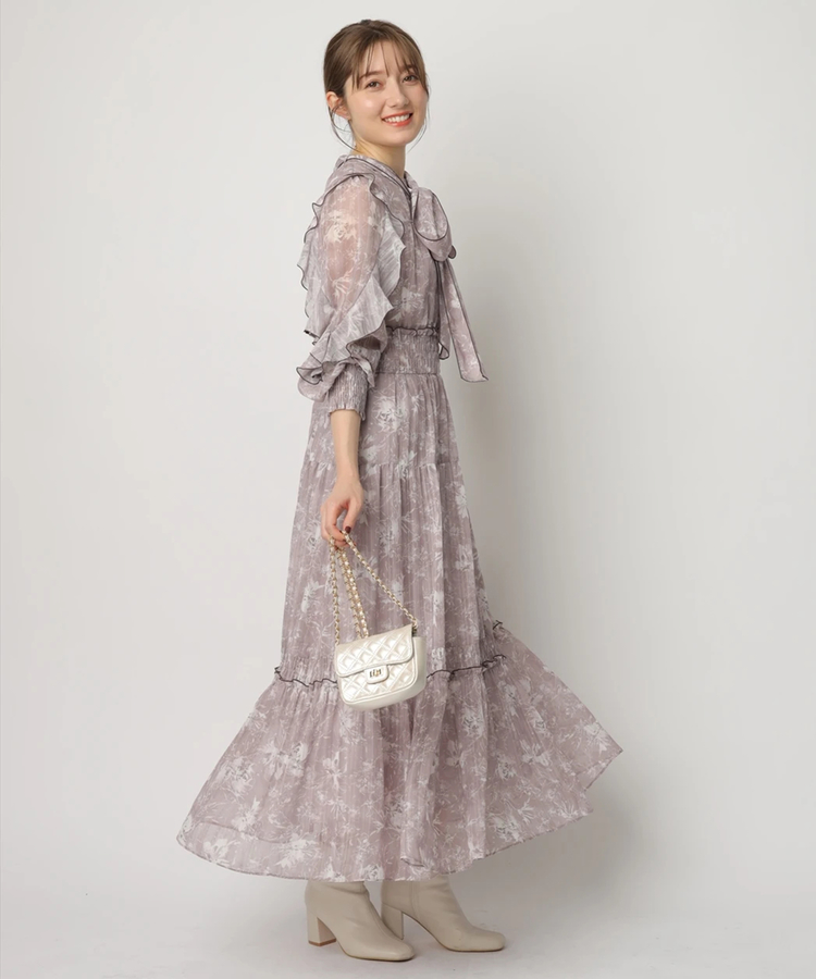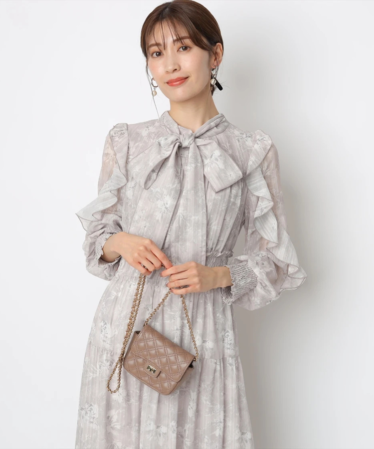 ラッフルフリルをあしらったシアーなスリーブも女性らしさを引き立たせます。華やかさをプラスするボウタイは取り外しが可能なので、アレンジが楽しめるのも嬉しいポイント◎