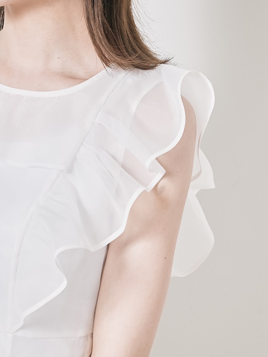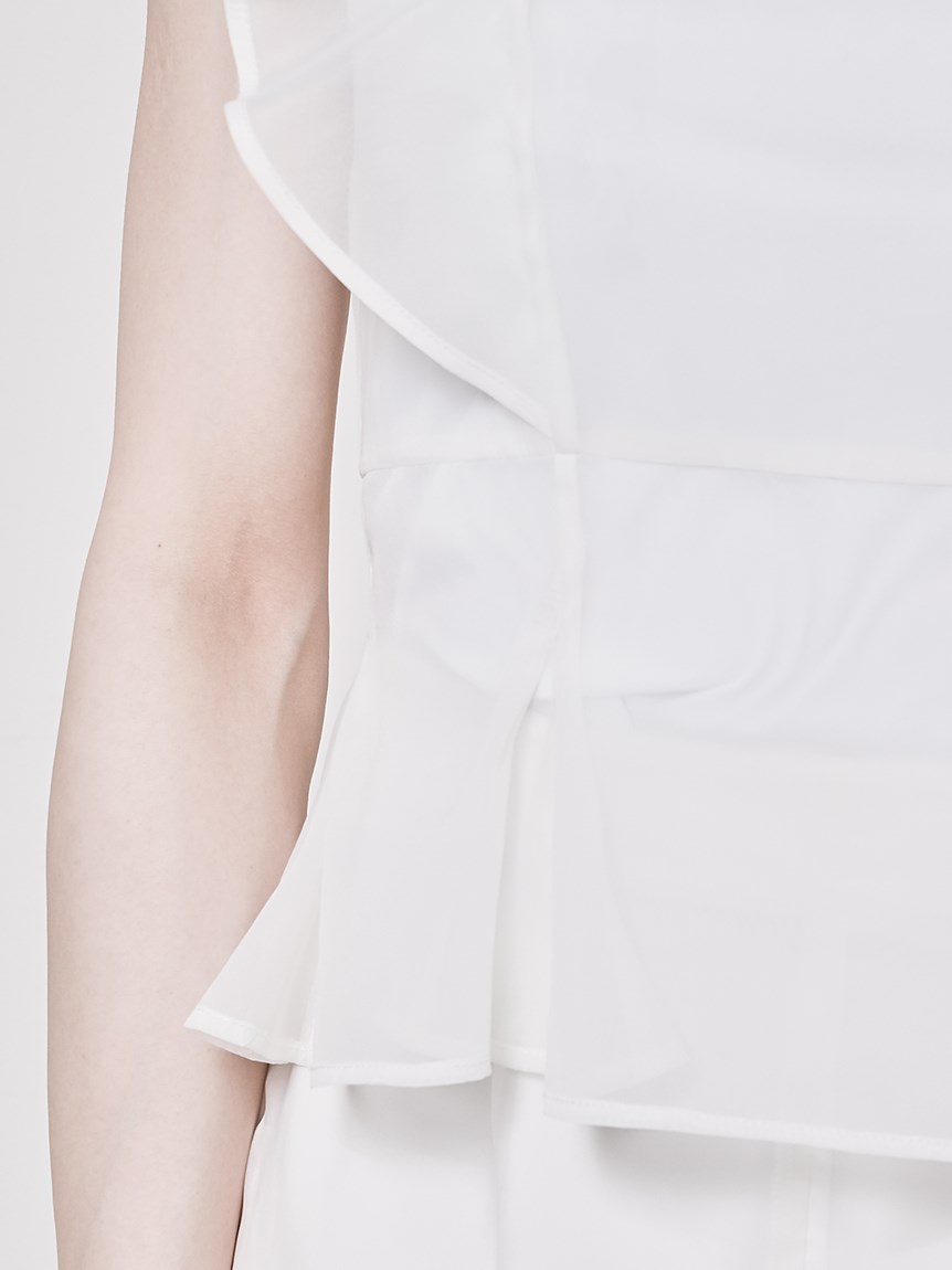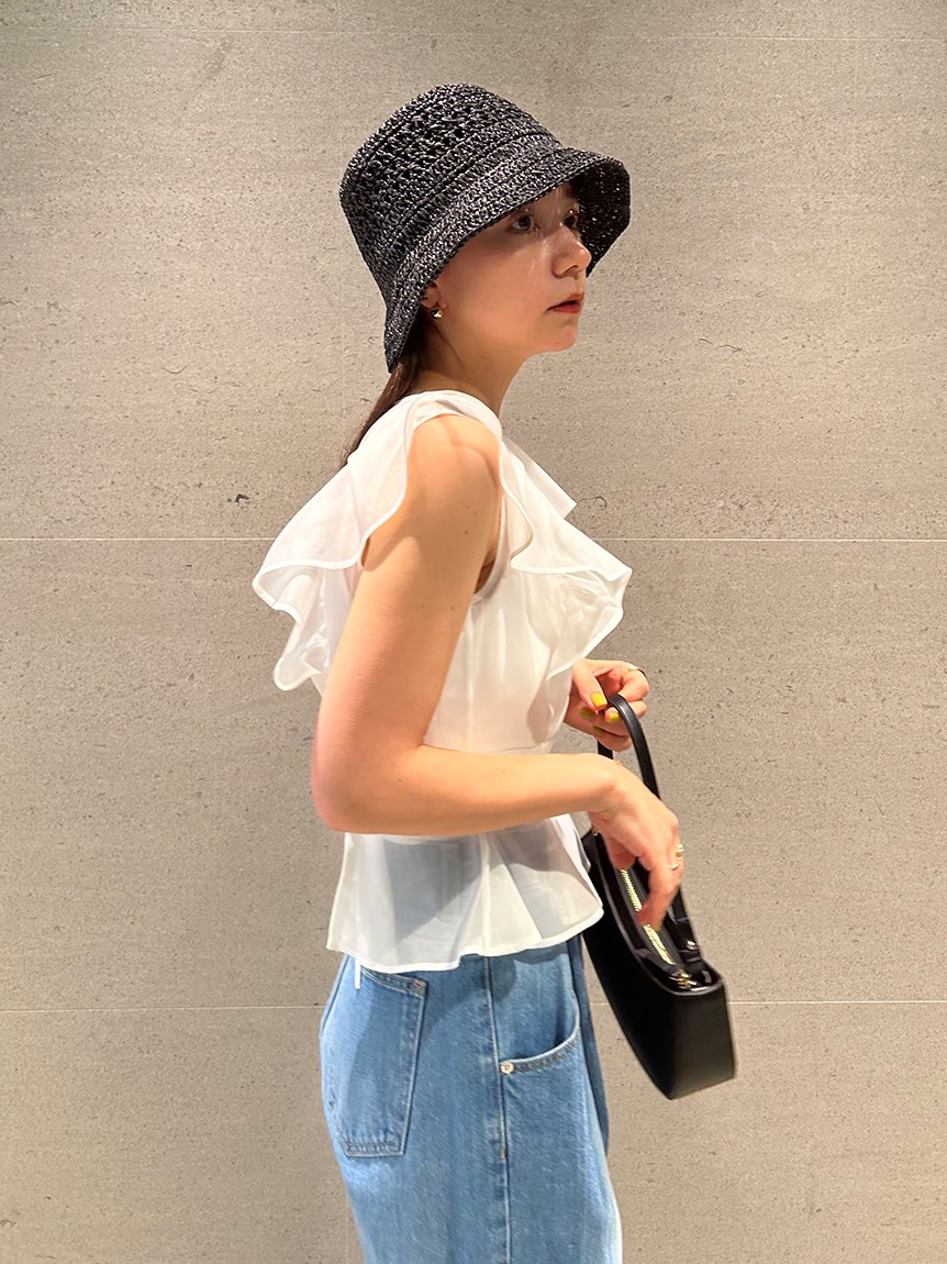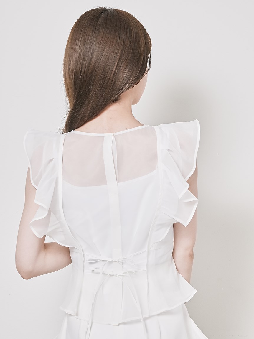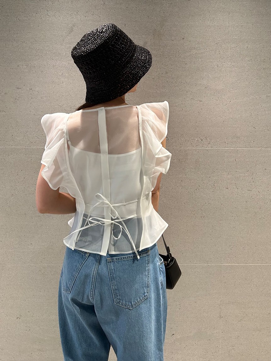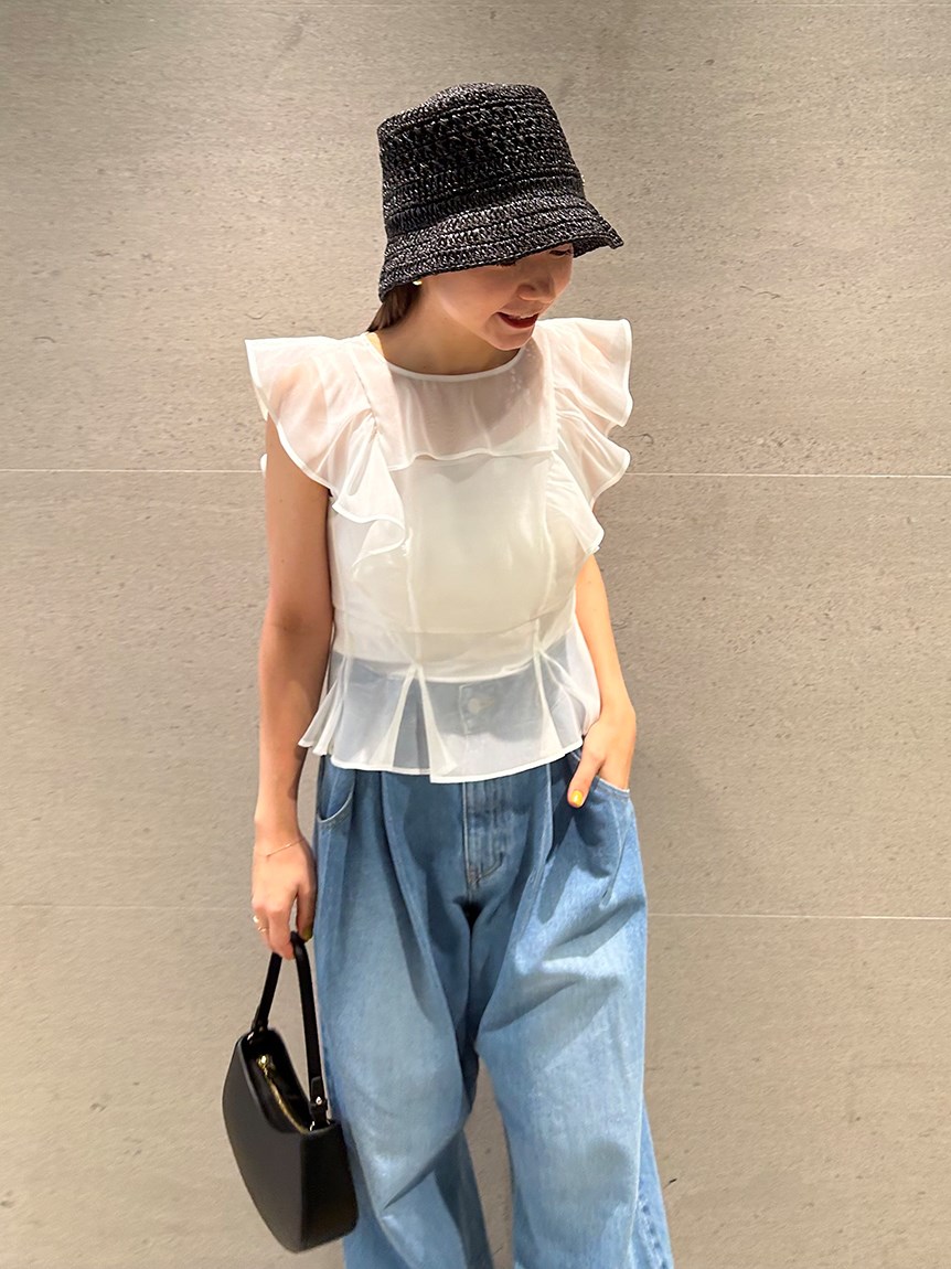 ふんわり広がるフリルが、フェミニンなムードを演出するブラウス。シンプルなインナー付きで、安心して着こなせるアイテムです。華やかなインパクトのあるトップスは、パンツとの相性も抜群。同シリーズのボトム(SWFP231245)と合わせて、セットアップスタイルを楽しむのも◎。