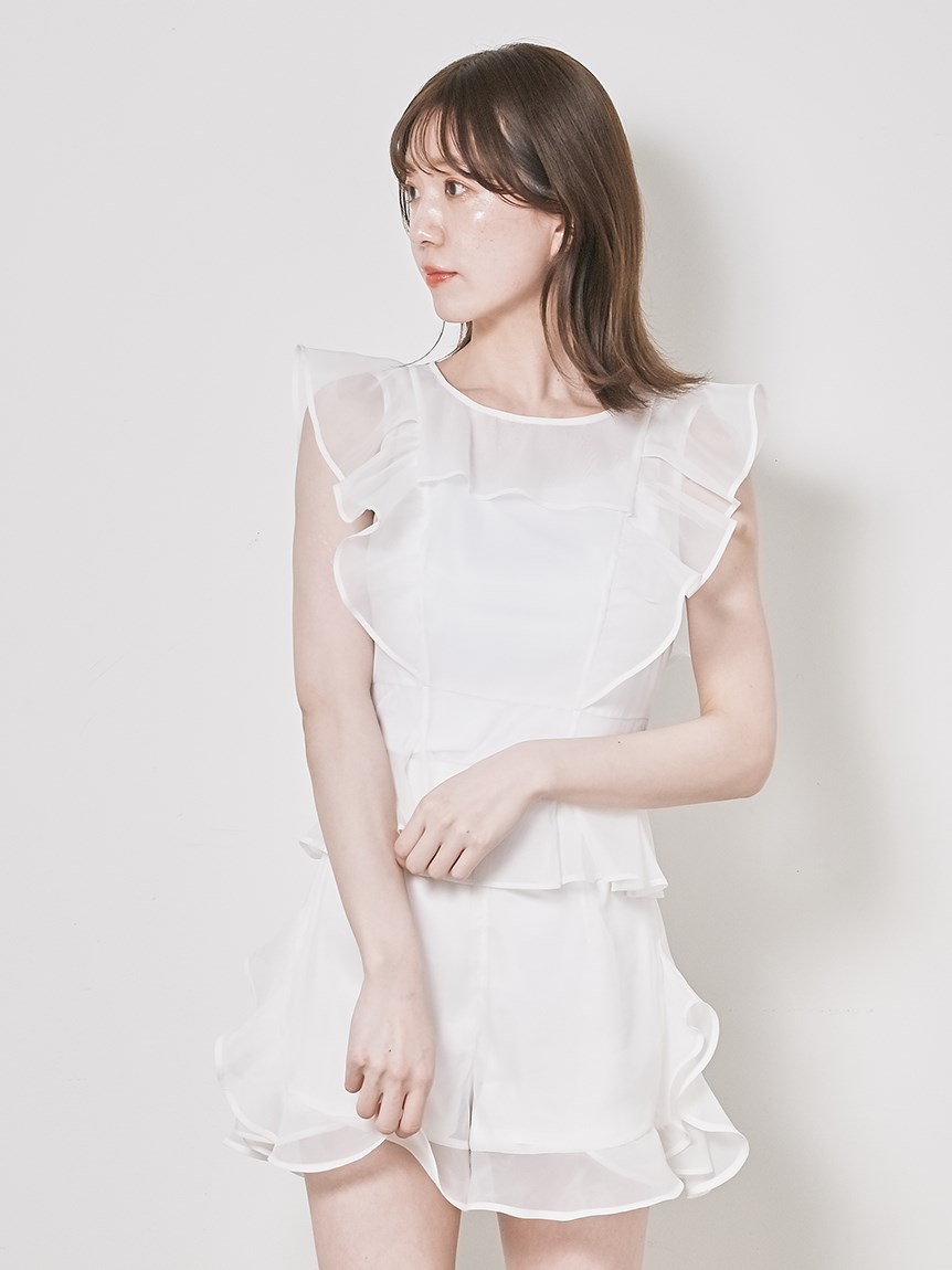 オーガンフリルスカショーパン + オーガンフリルブラウス