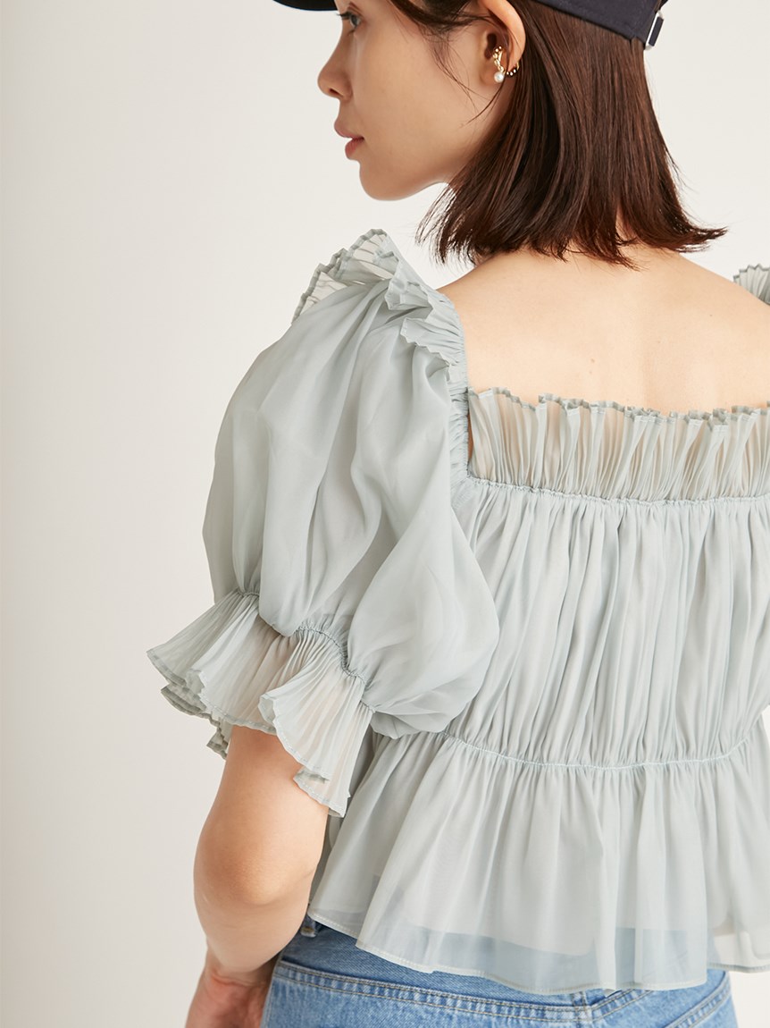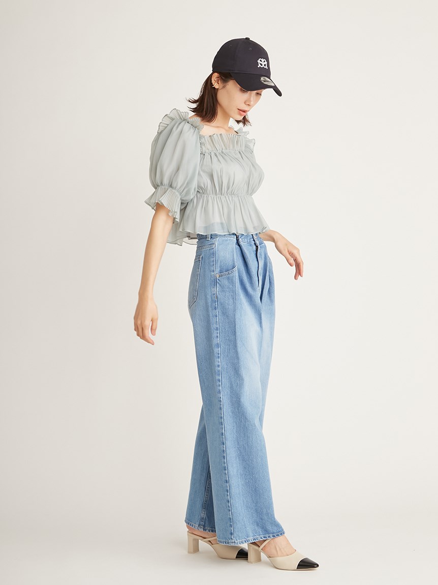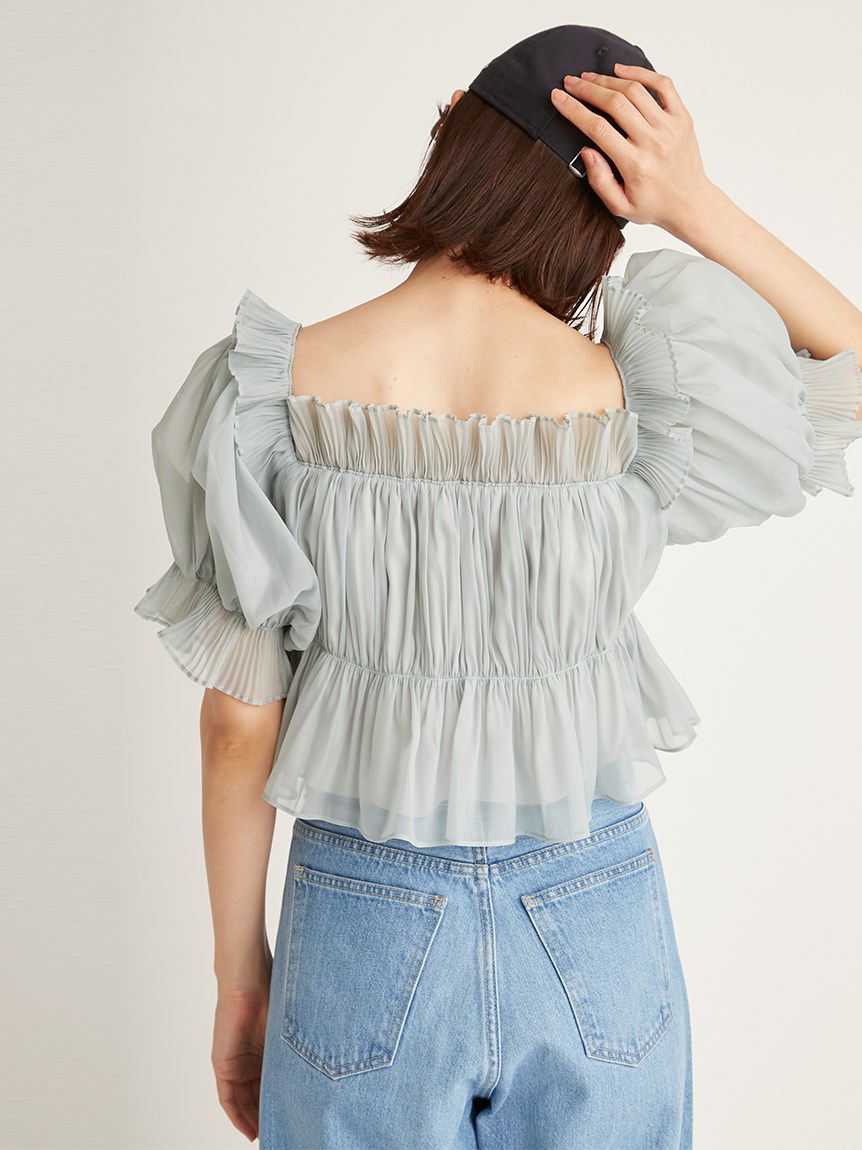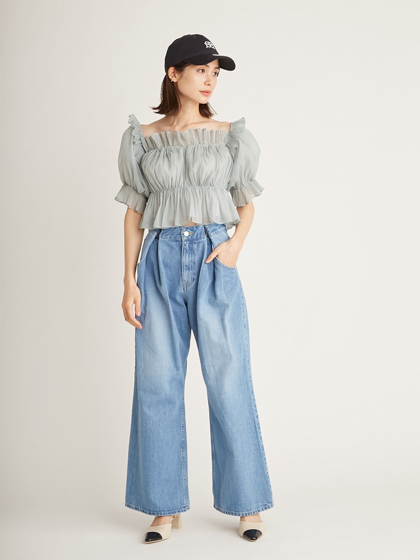 【こだわりのデイテールでとことん女性らしく仕上げたオフショルブラウス】