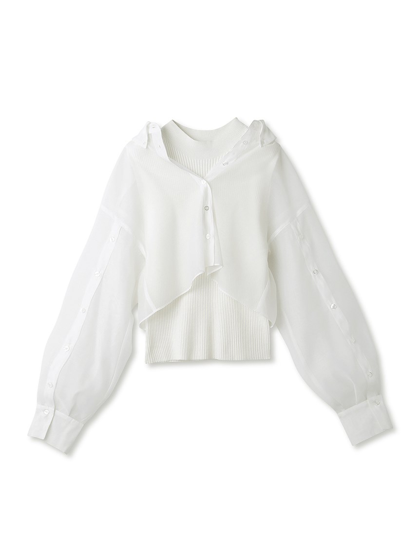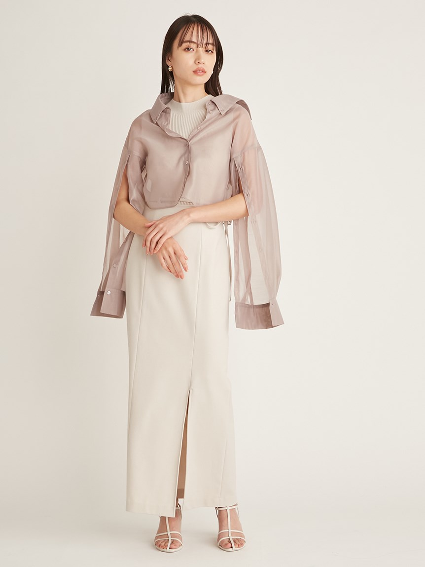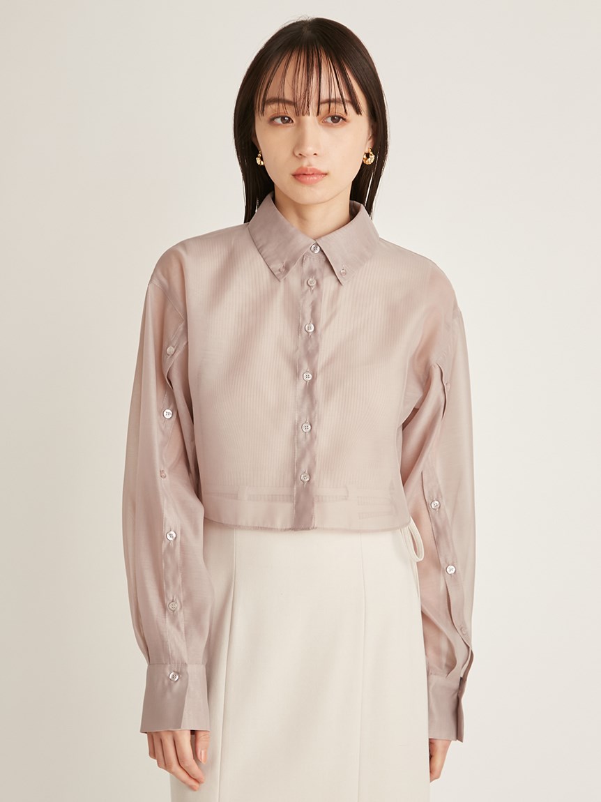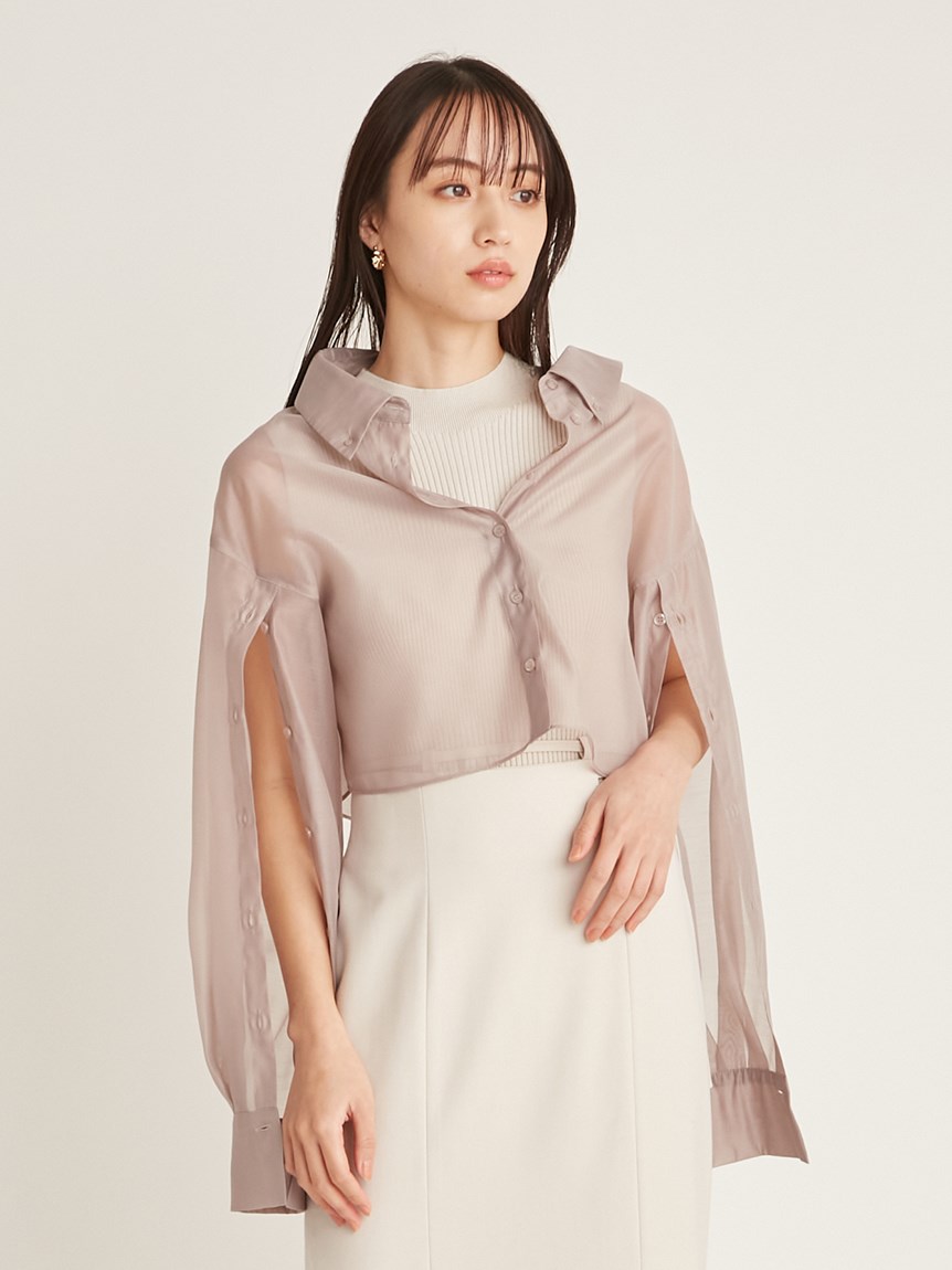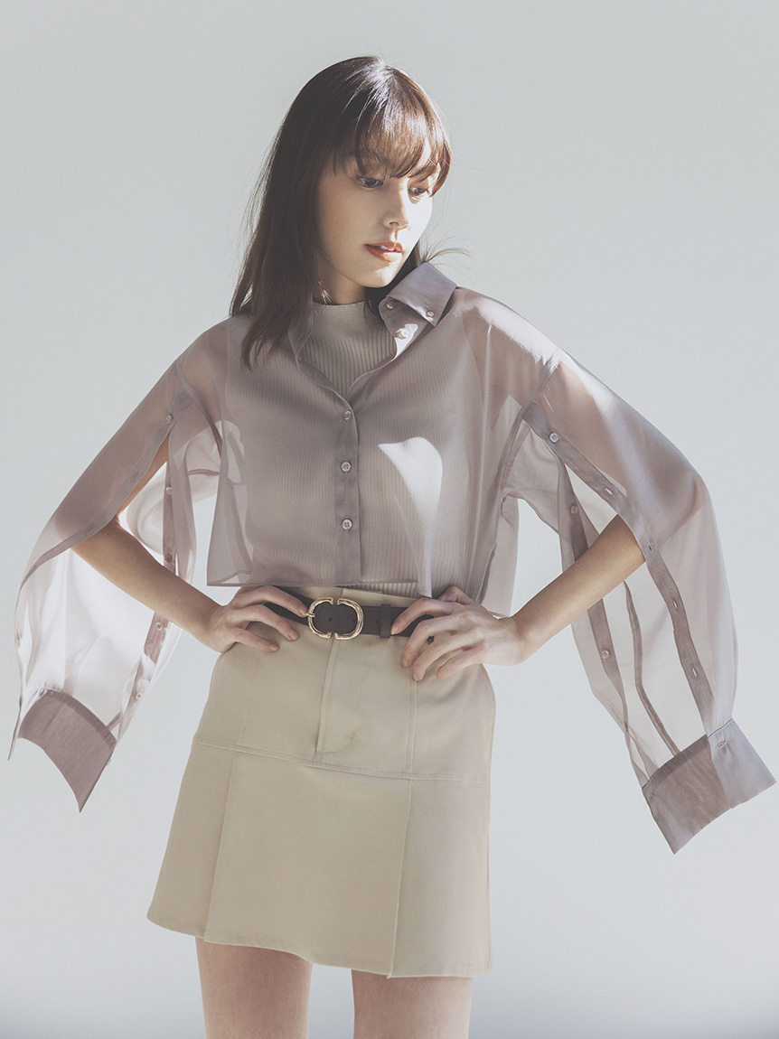 「SNIDEL」人気のシャツコンビニットが今季も登場。今シーズンはシアーシャツをクロップド丈にしトレンドライクにアップデートしました。シャツの袖にはボタン開きを備え、今年らしいスリットスリーブにもアレンジ可能なデザインに。バックネックにもボタンを配し後ろ姿まで抜かりなく仕上げています。