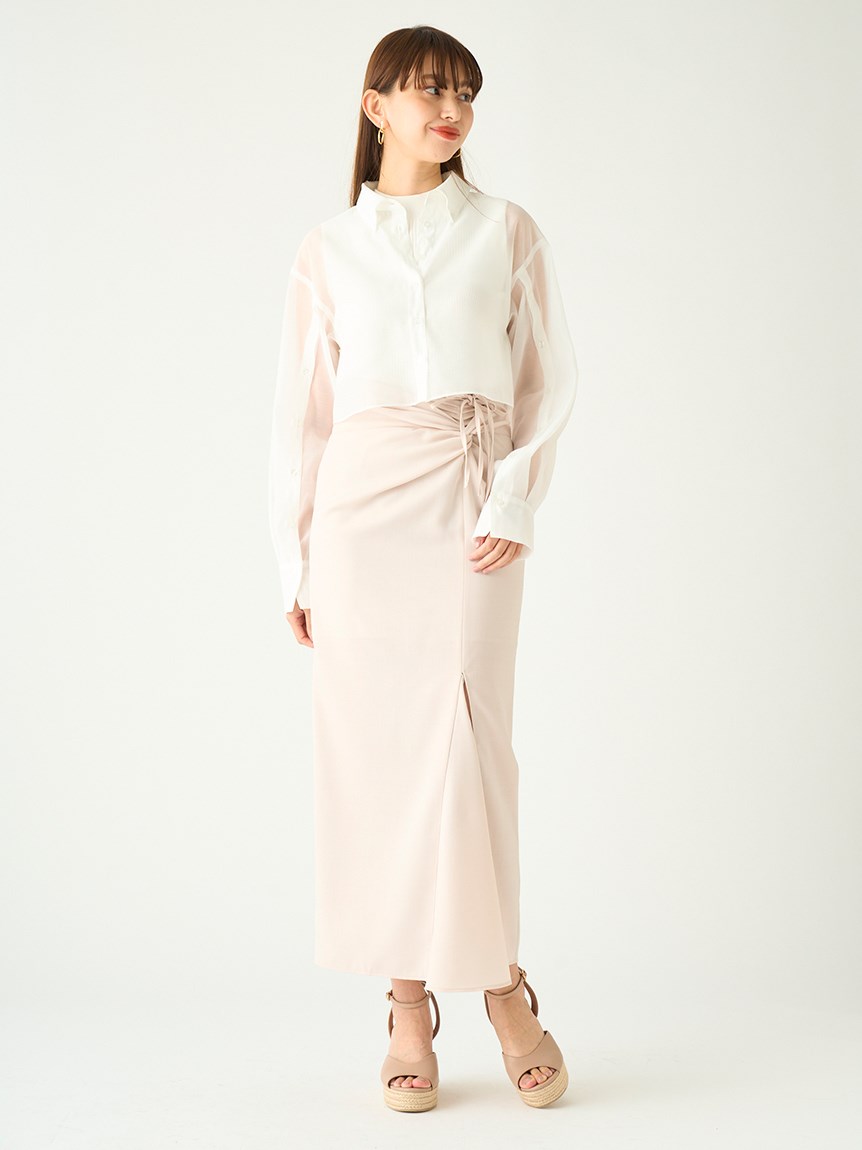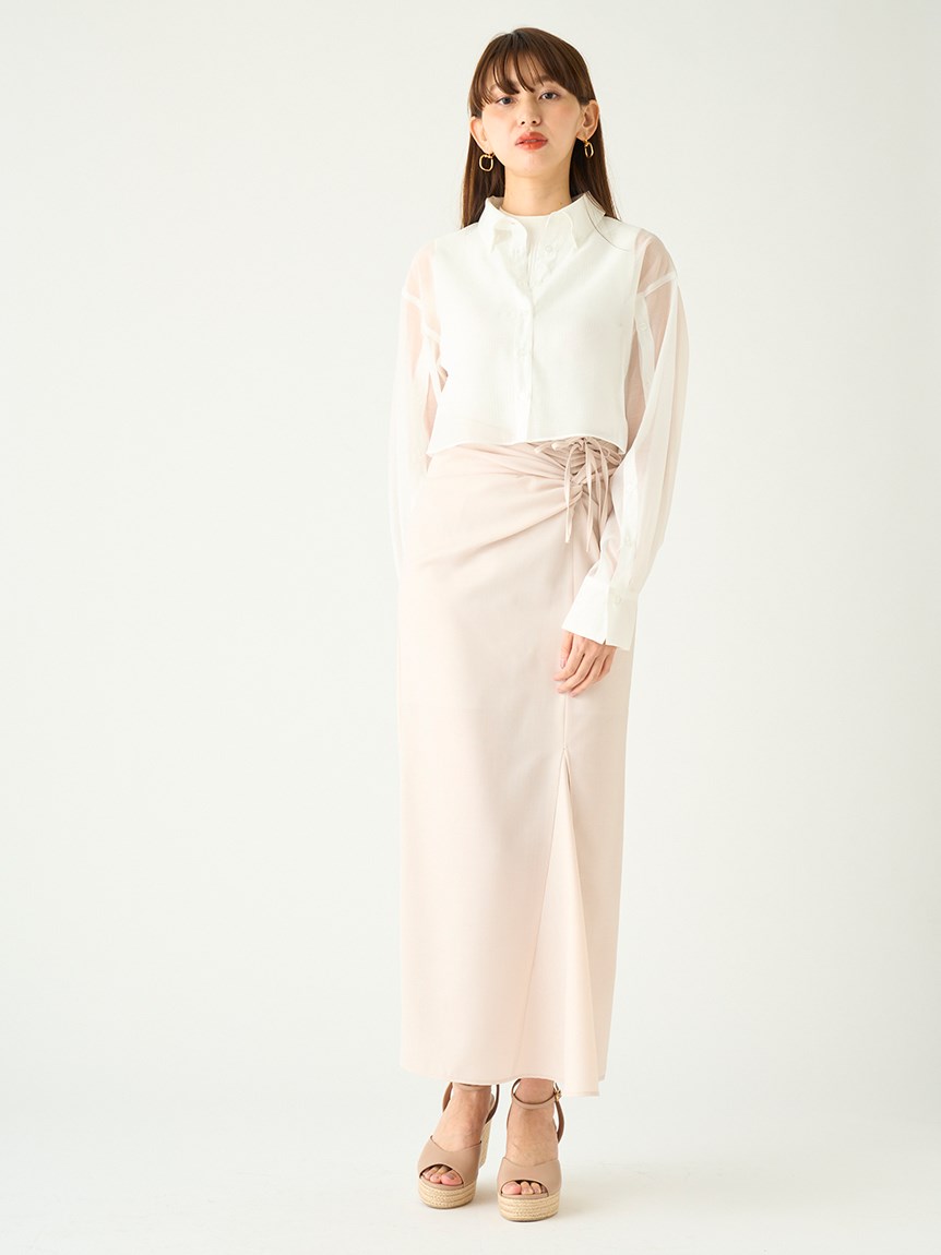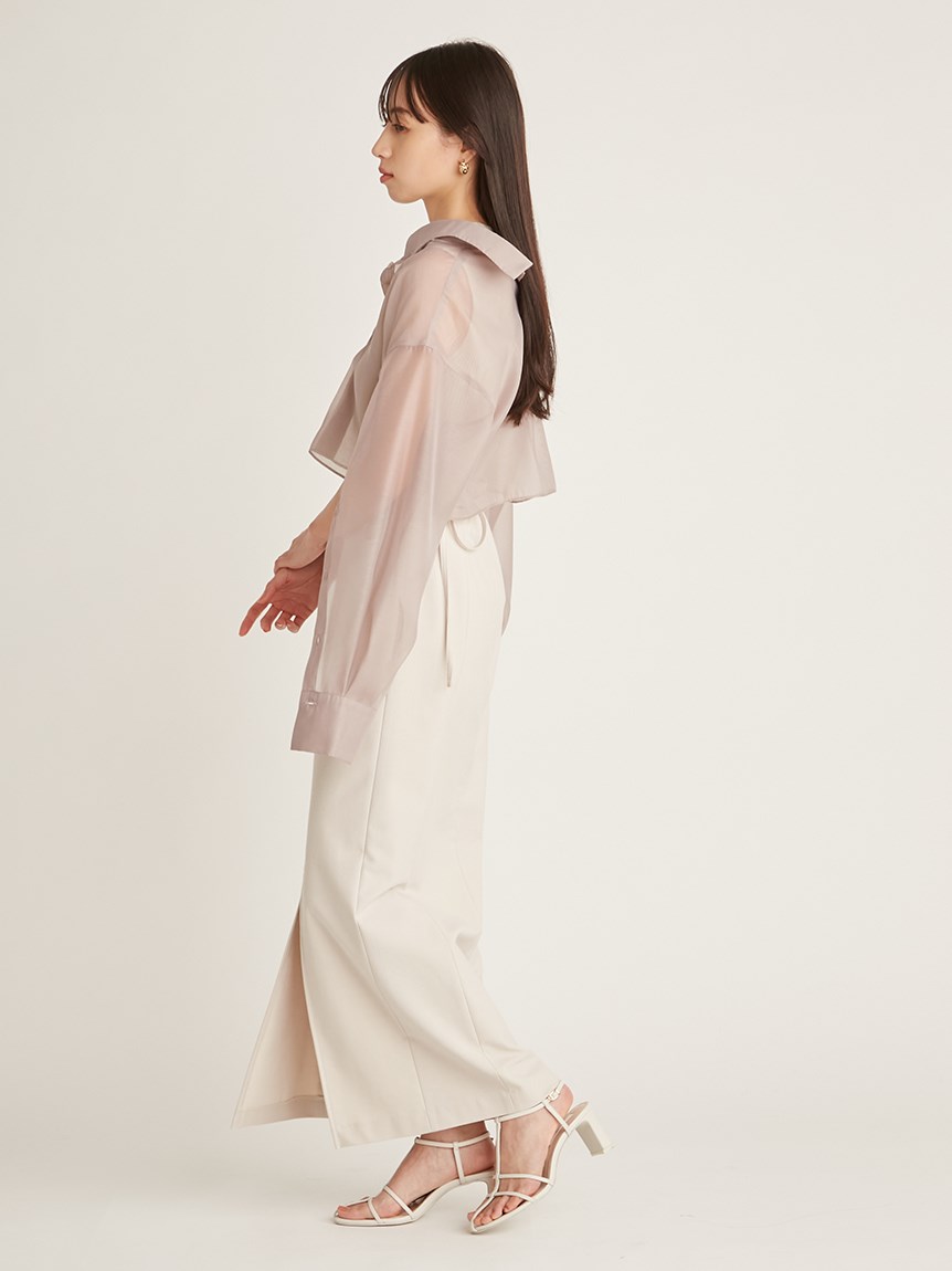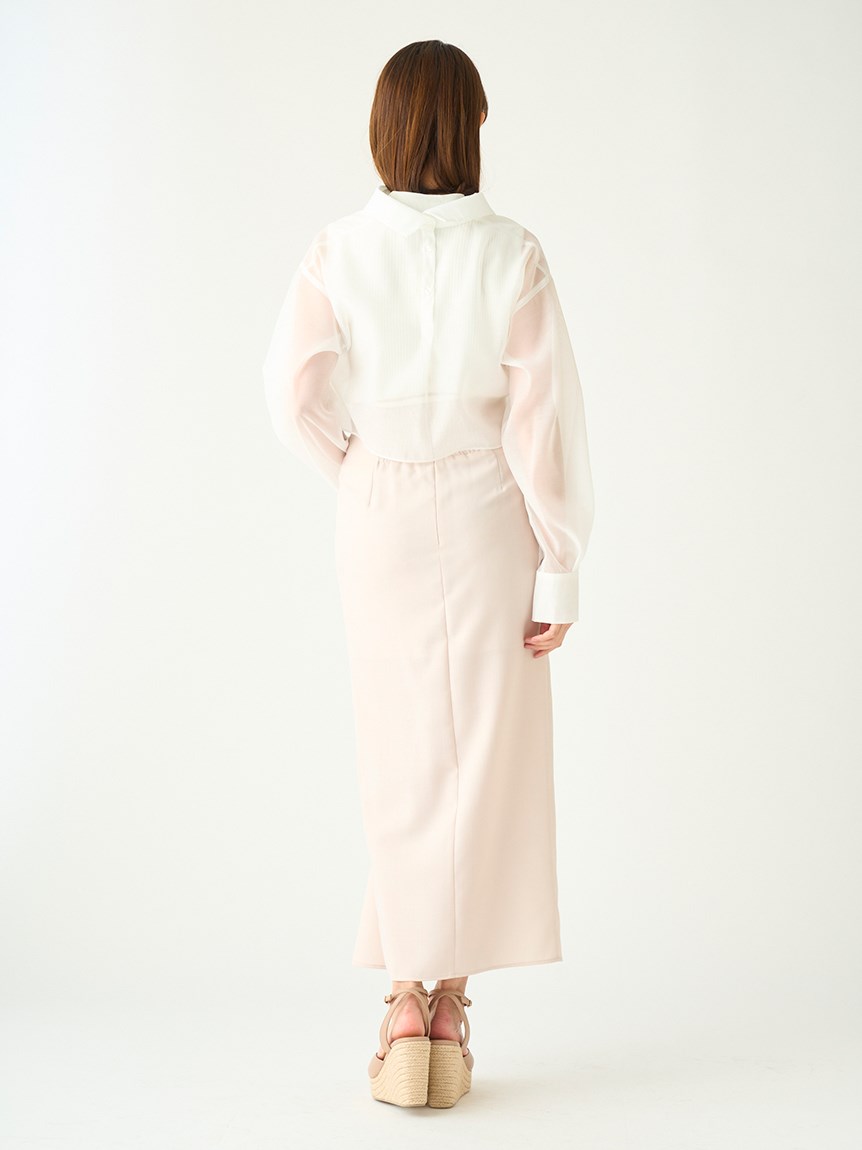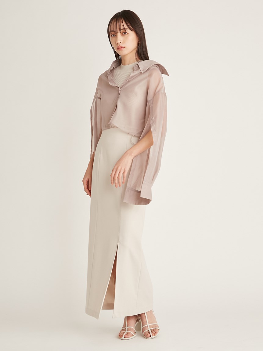 「SNIDEL」人気のシャツコンビニットが今季も登場。今シーズンはシアーシャツをクロップド丈にしトレンドライクにアップデートしました。シャツの袖にはボタン開きを備え、今年らしいスリットスリーブにもアレンジ可能なデザインに。バックネックにもボタンを配し後ろ姿まで抜かりなく仕上げています。