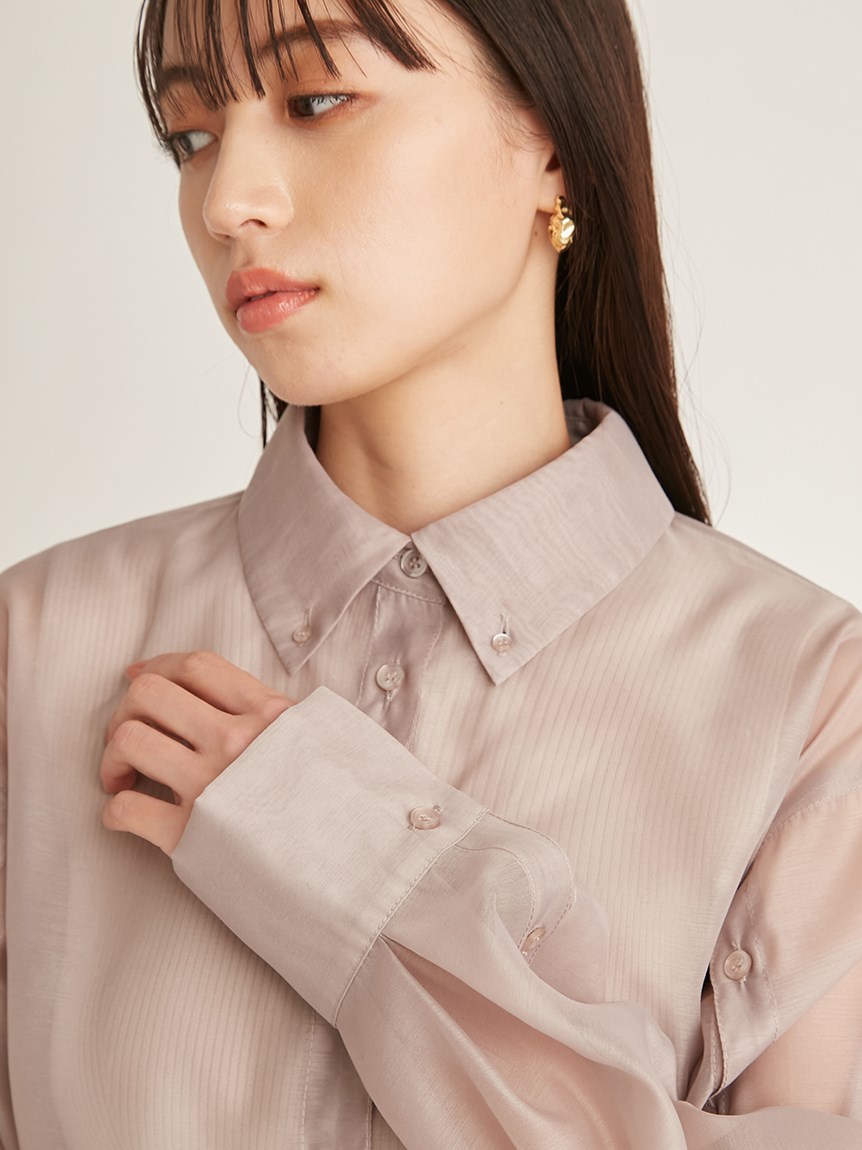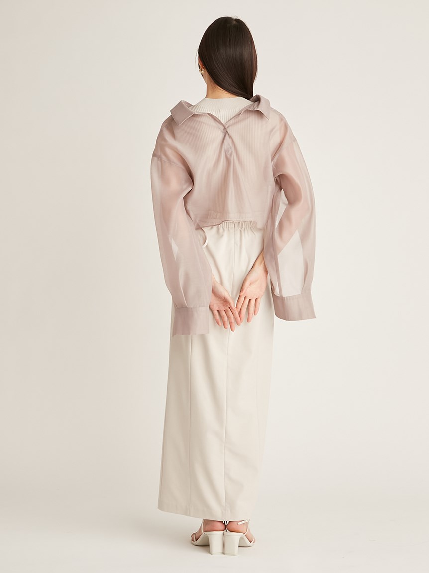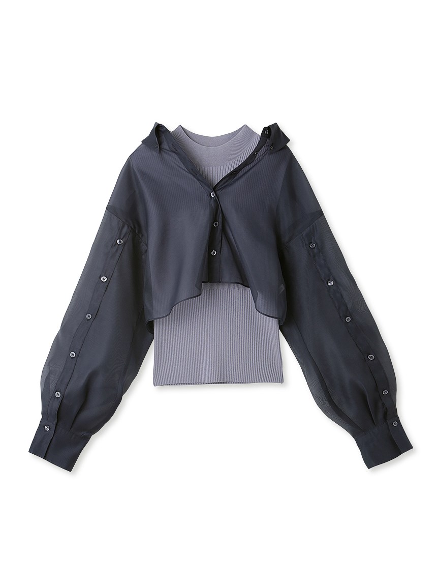 軽やかなシアー素材とリブニットを組み合わせました。クリーンなムードのオフホワイト、女性らしい色合いのピンクベージュ、シックな色味が大人っぽいブルーの3色展開です。