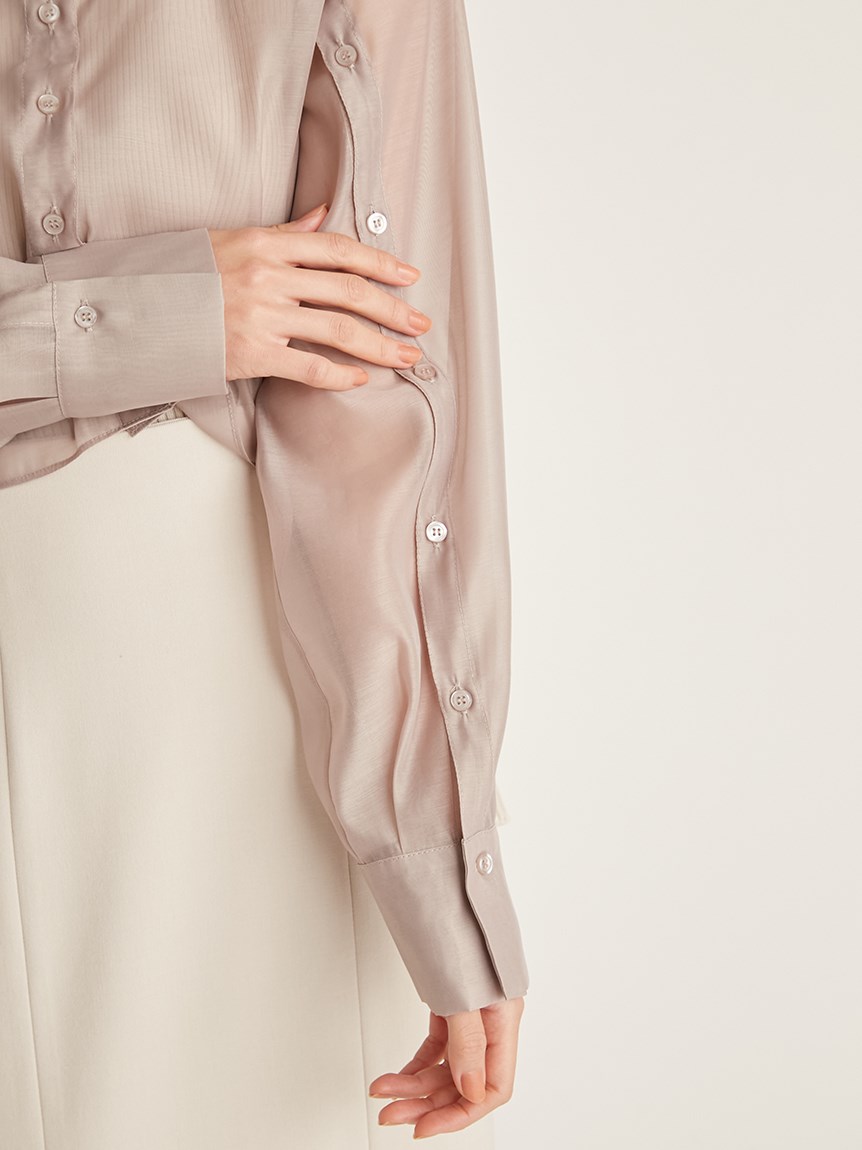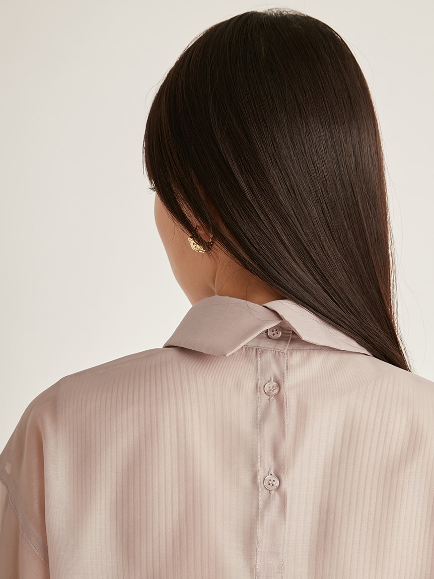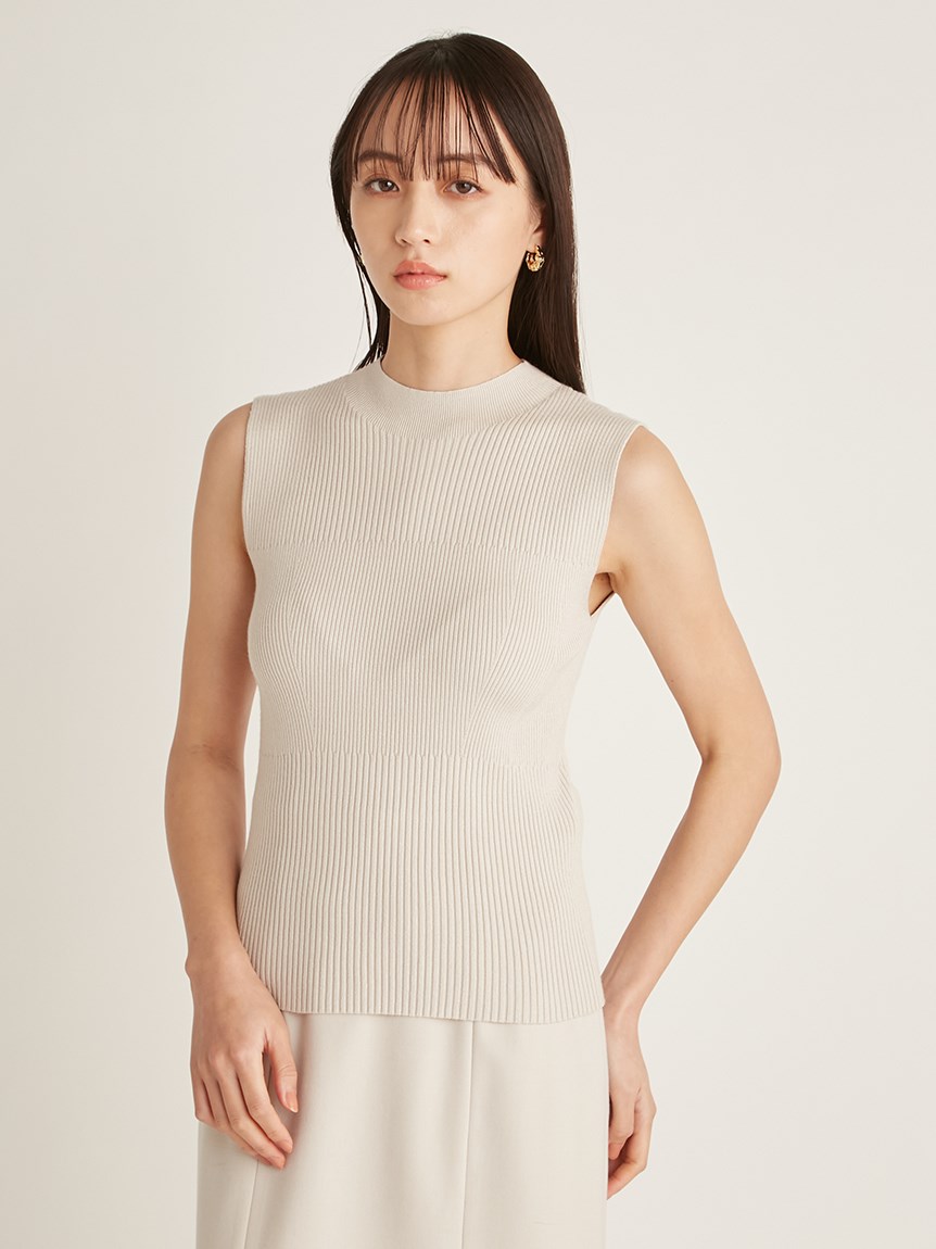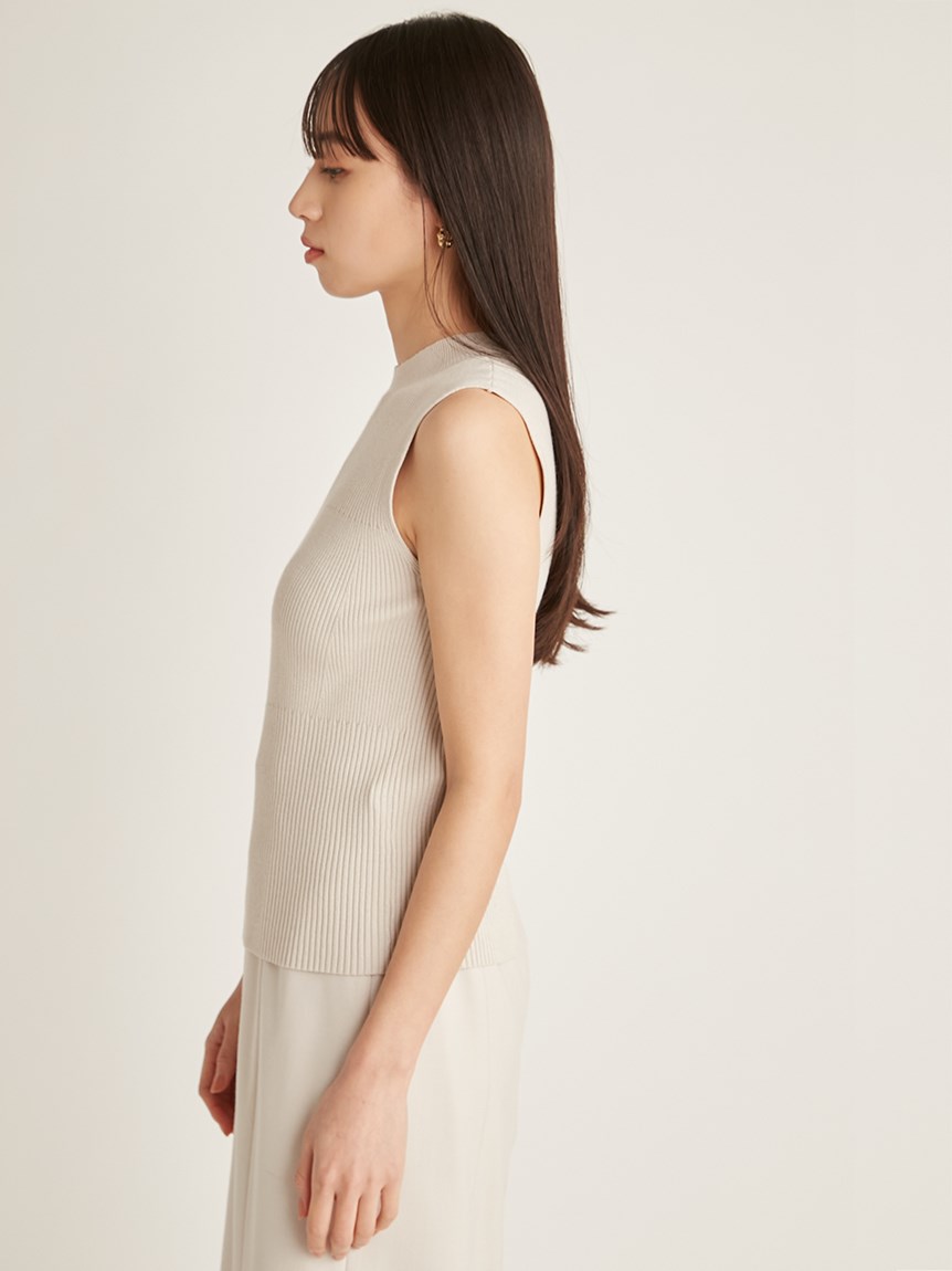 軽やかなシアー素材とリブニットを組み合わせました。クリーンなムードのオフホワイト、女性らしい色合いのピンクベージュ、シックな色味が大人っぽいブルーの3色展開です。