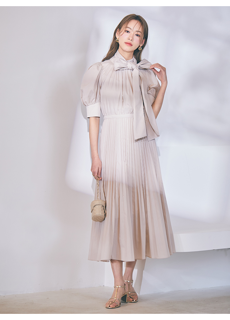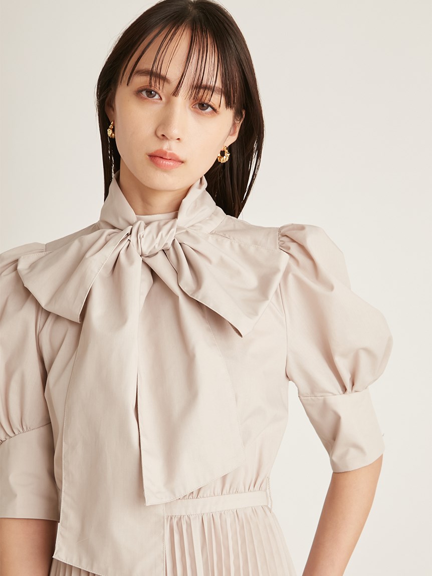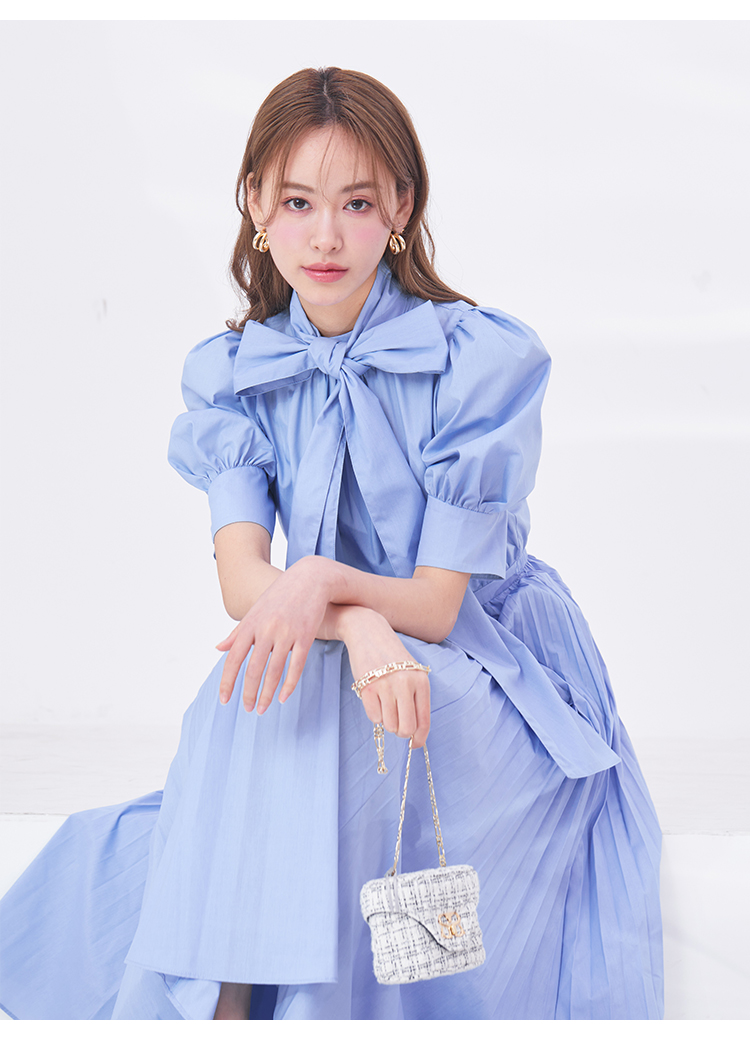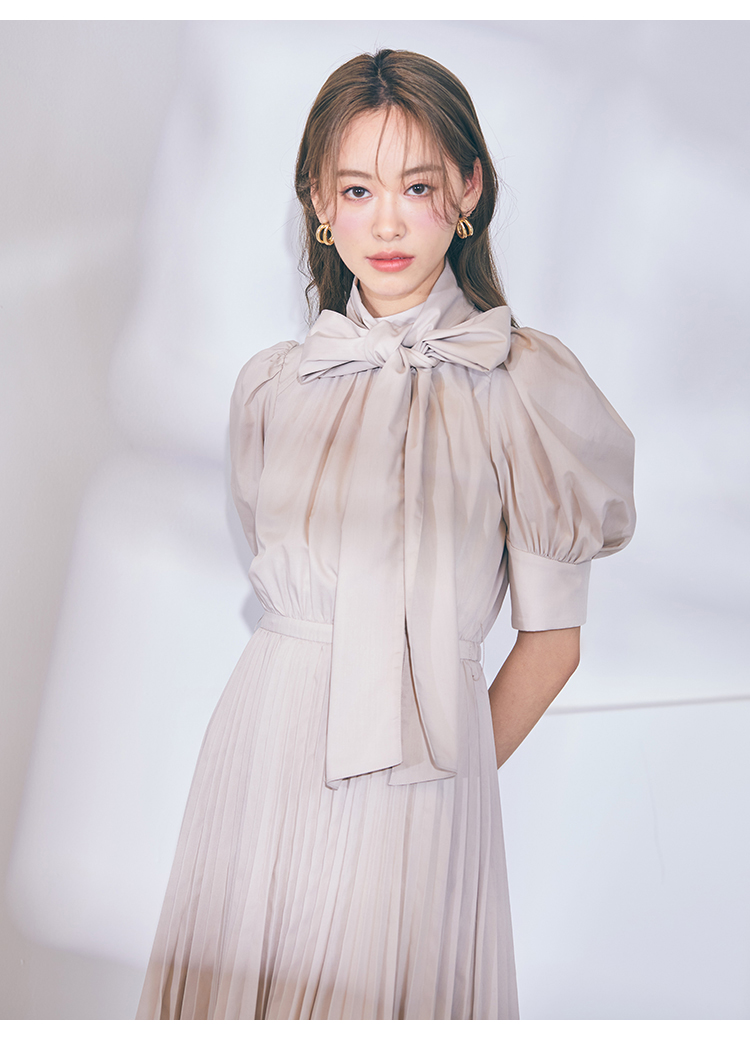 「SNIDEL」定番のボウタイシャツワンピースがリバイバルで登場。メリハリのあるパフスリーブと大きなリボンで女性らしく華やかに。程よい背中の肌見せで今年らしい抜け感をプラスしました。スカート部分にはプリーツを施すことできちんと感を与え、品の良いルックスに仕上げています。