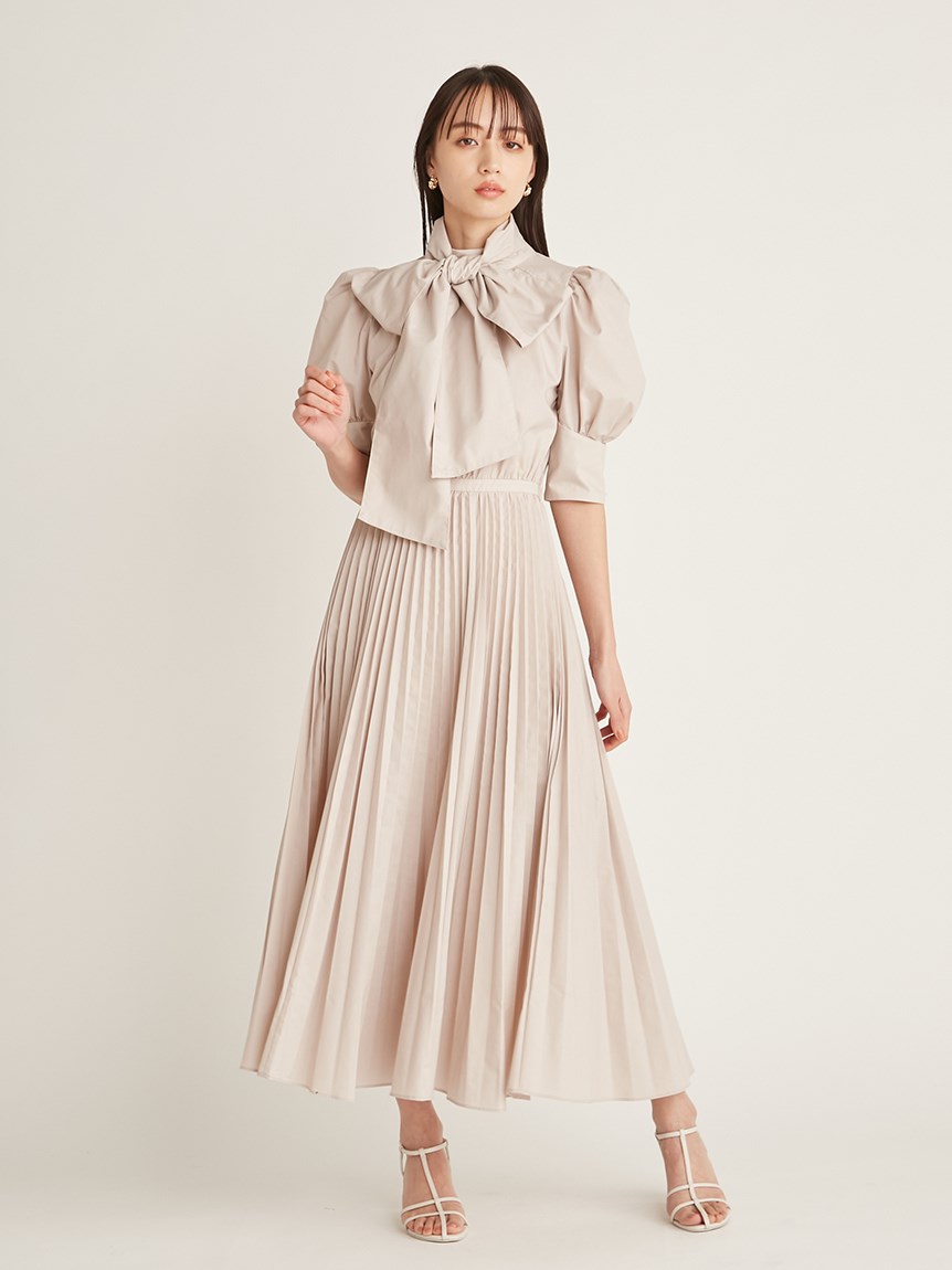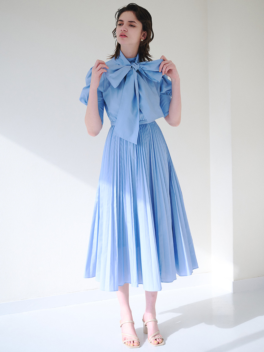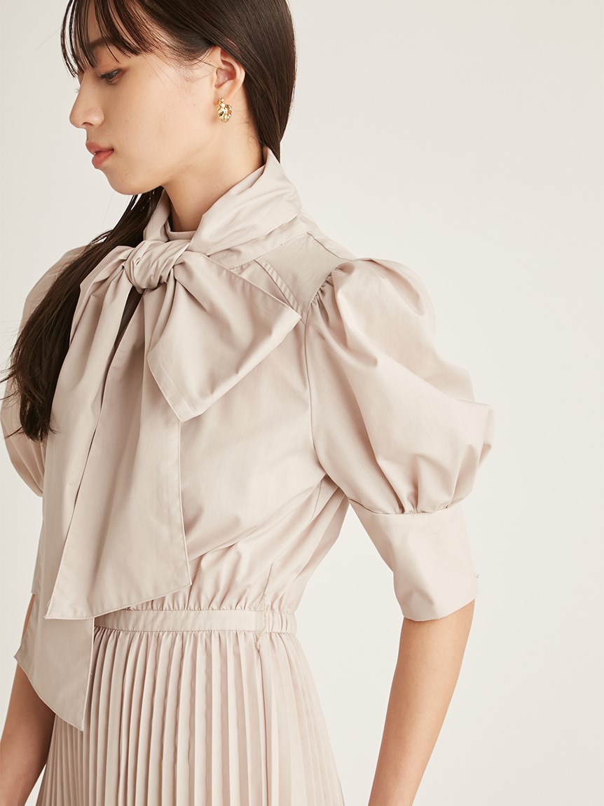 「SNIDEL」定番のボウタイシャツワンピースがリバイバルで登場。メリハリのあるパフスリーブと大きなリボンで女性らしく華やかに。程よい背中の肌見せで今年らしい抜け感をプラスしました。スカート部分にはプリーツを施すことできちんと感を与え、品の良いルックスに仕上げています。