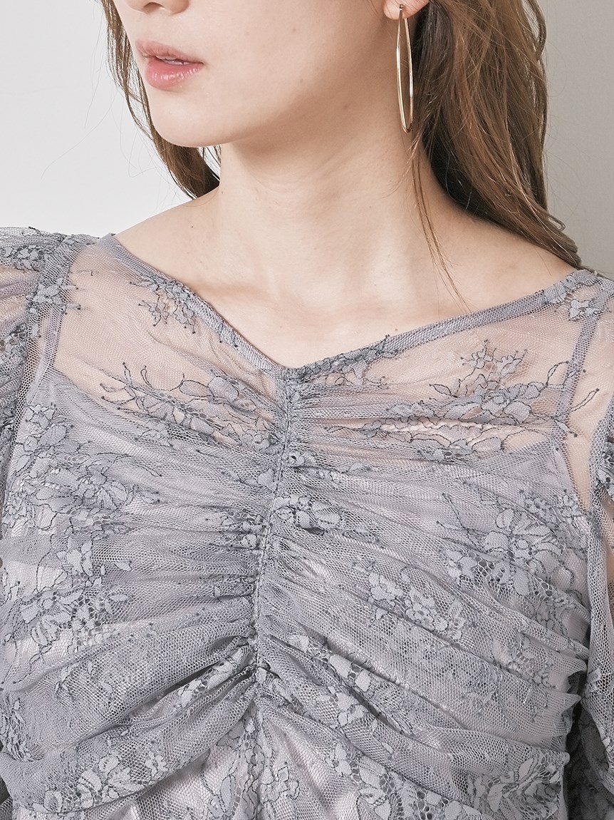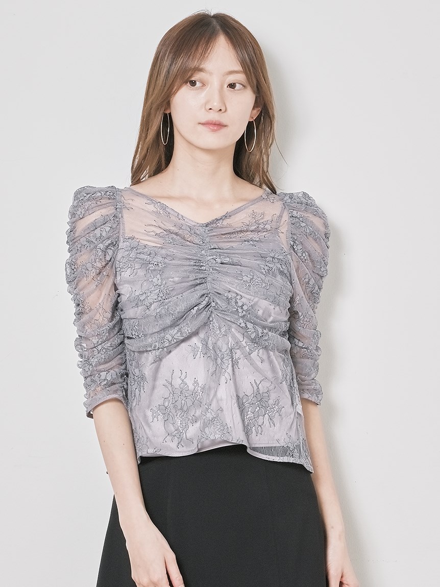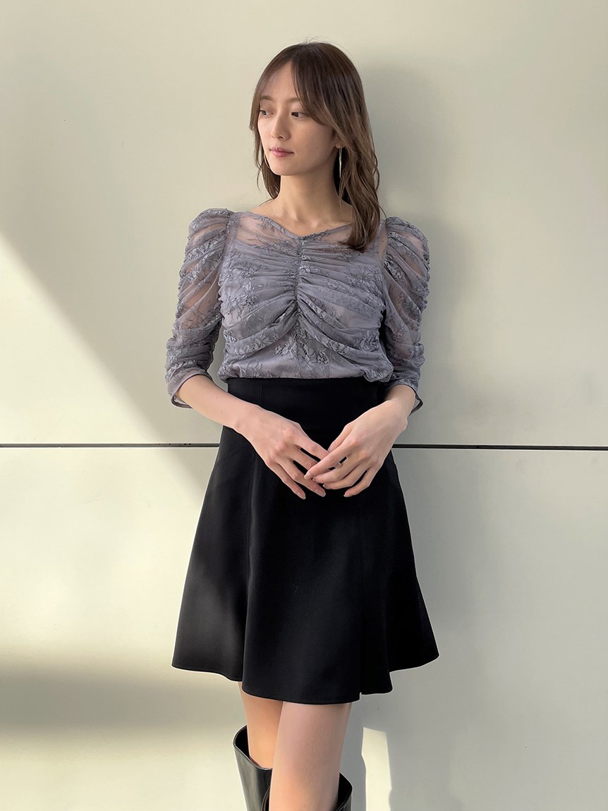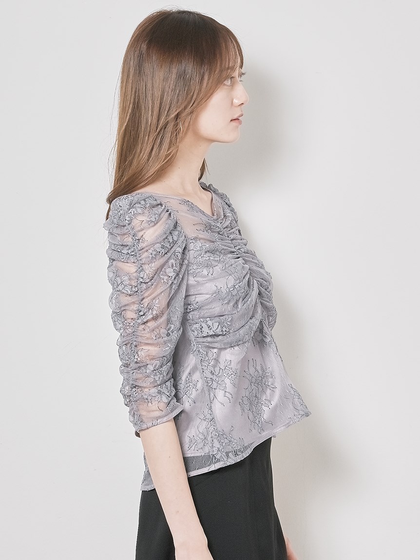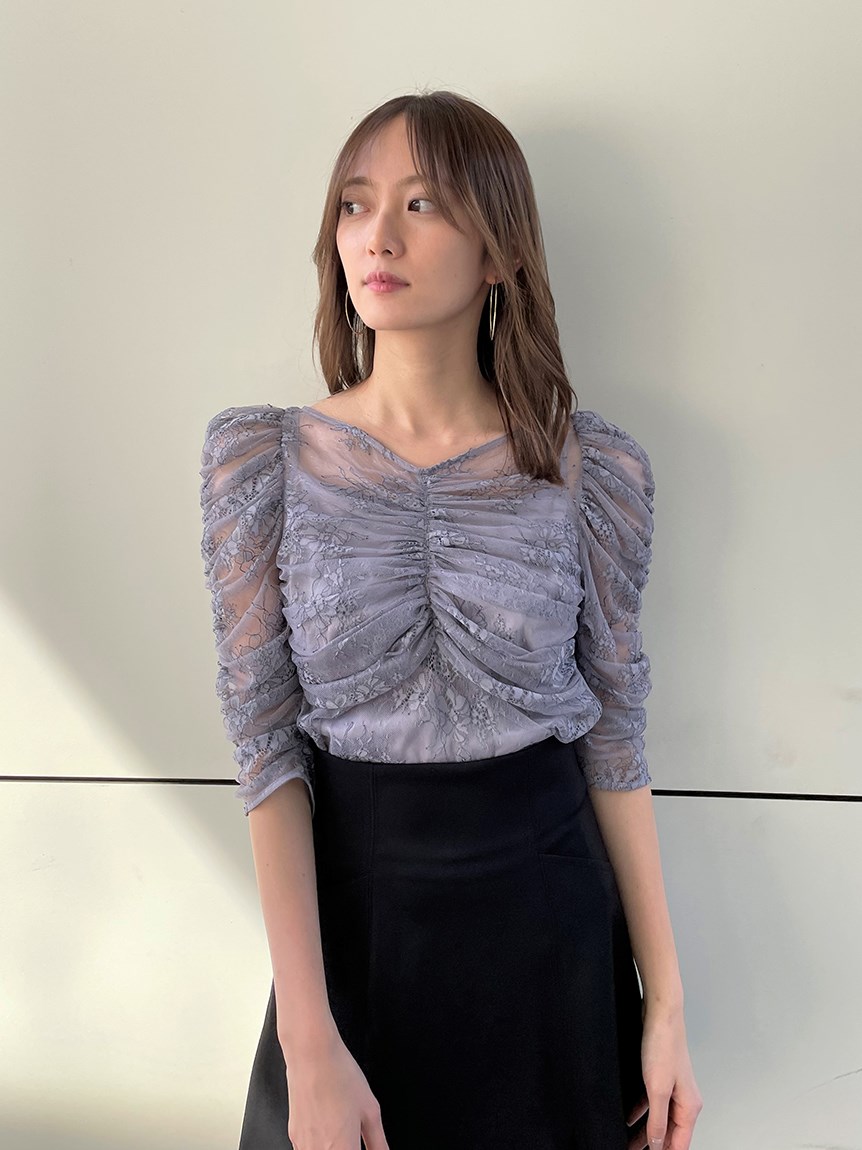 【たっぷりのギャザーが愛らしいフェミニン&モードなレースブラウス】