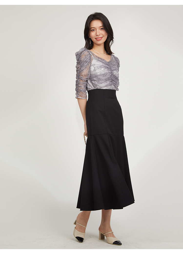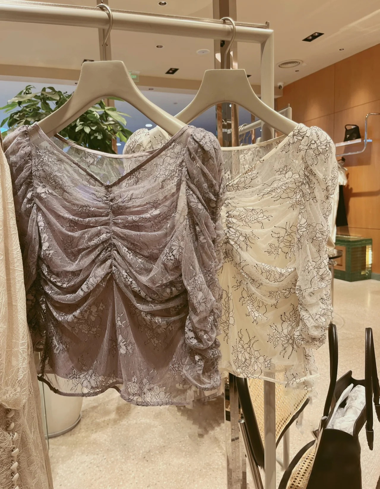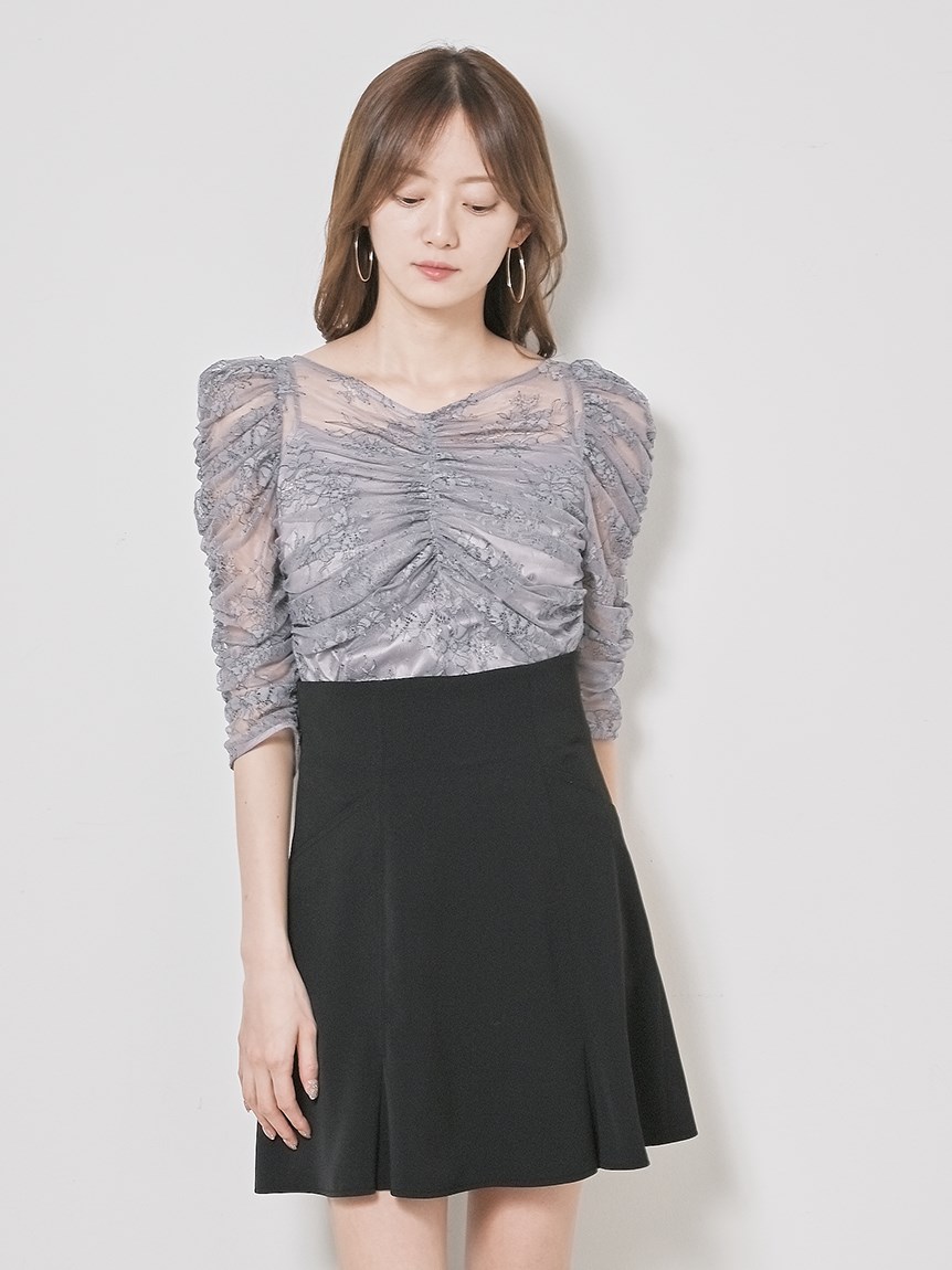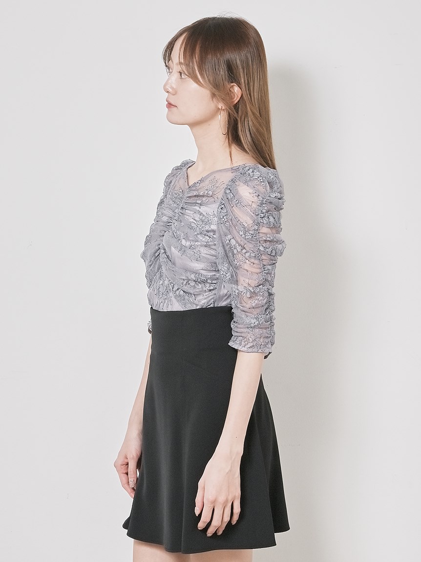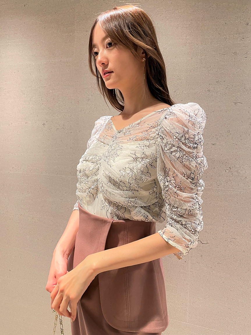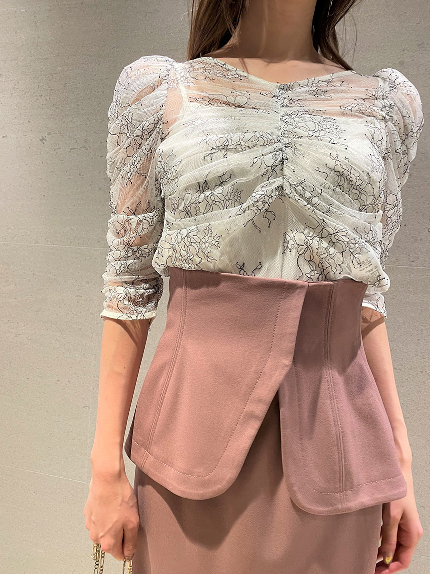 【たっぷりのギャザーが愛らしいフェミニン&モードなレースブラウス】