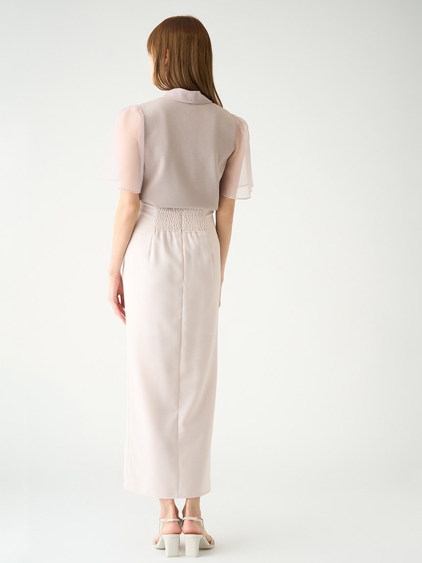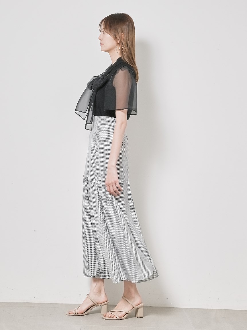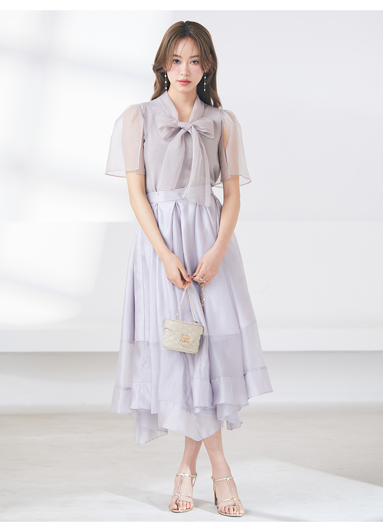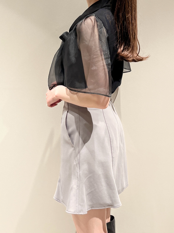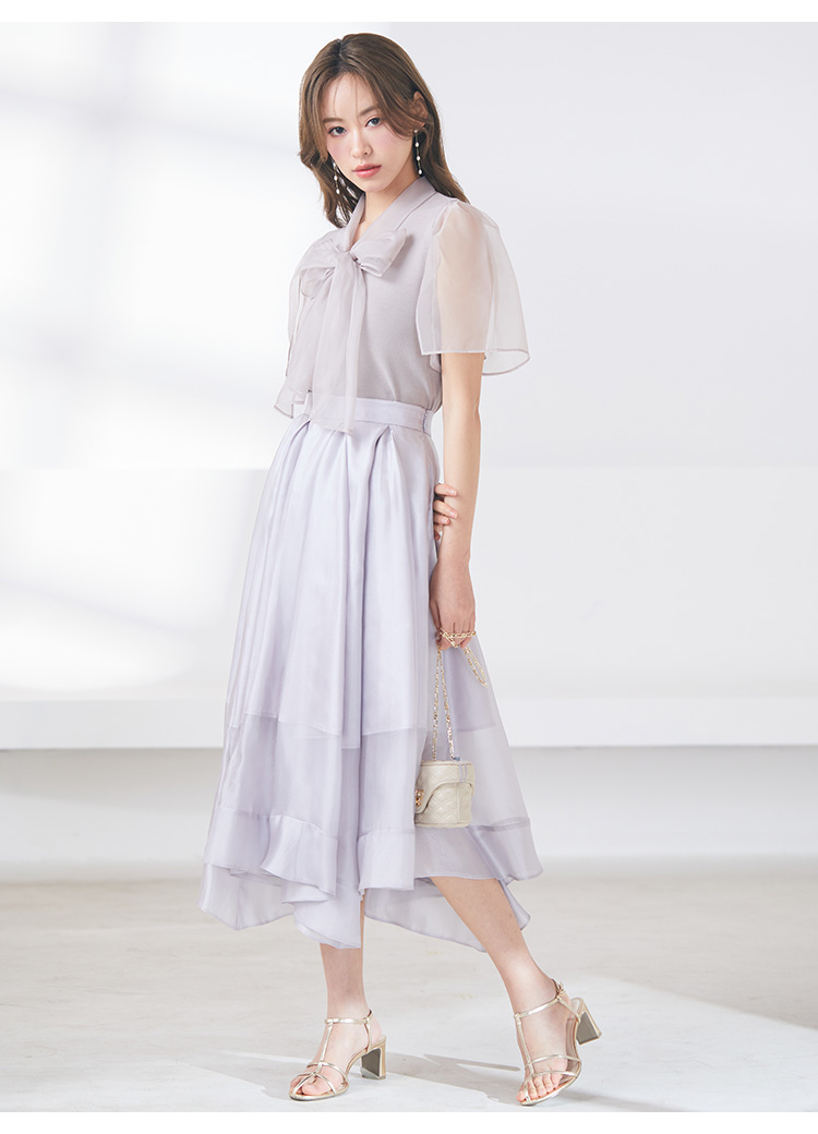 柔らかな風合いのニットとシアーな布帛をドッキングしました。アイボリー、ブラック、ピンクベージュのスタイリング力の高いカラー展開でお届けします。
