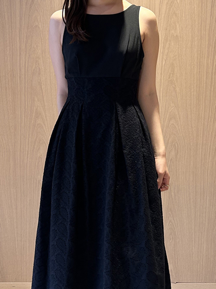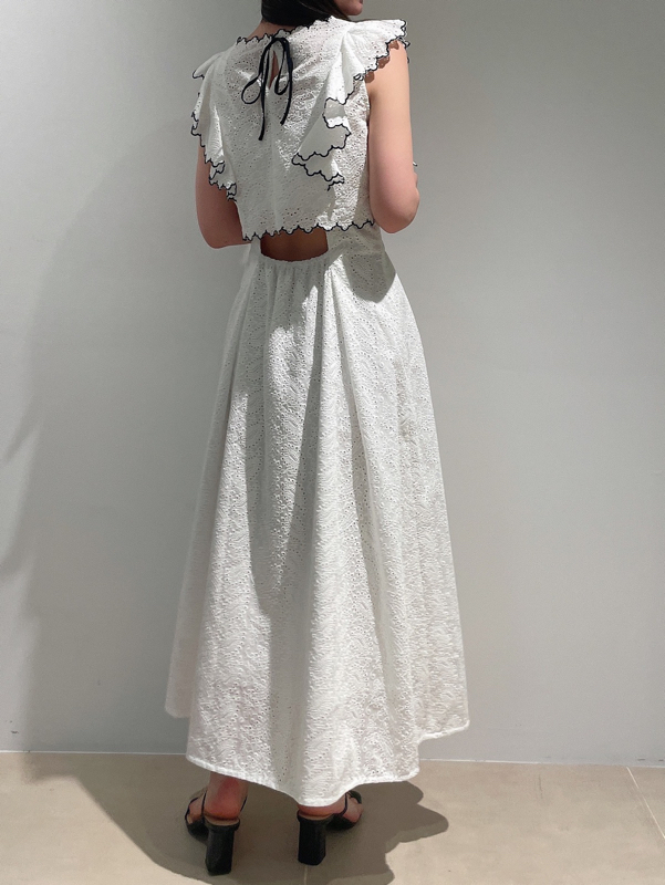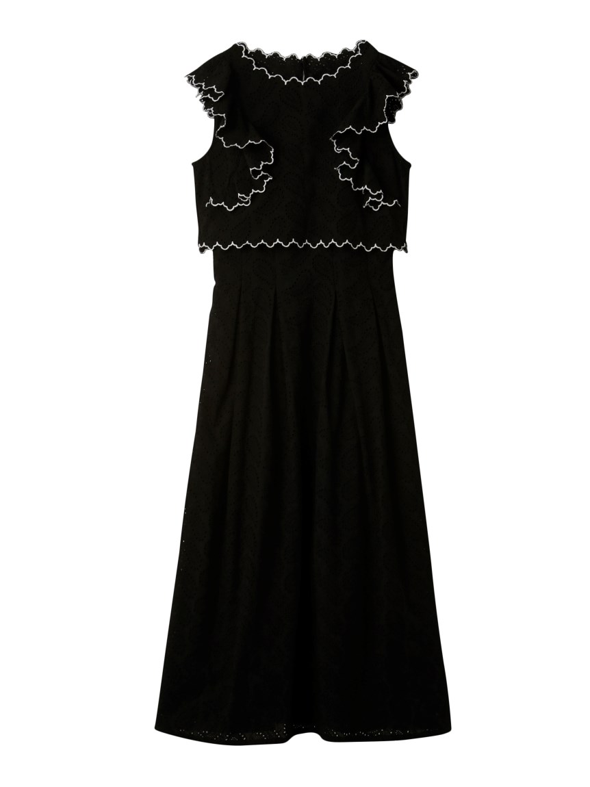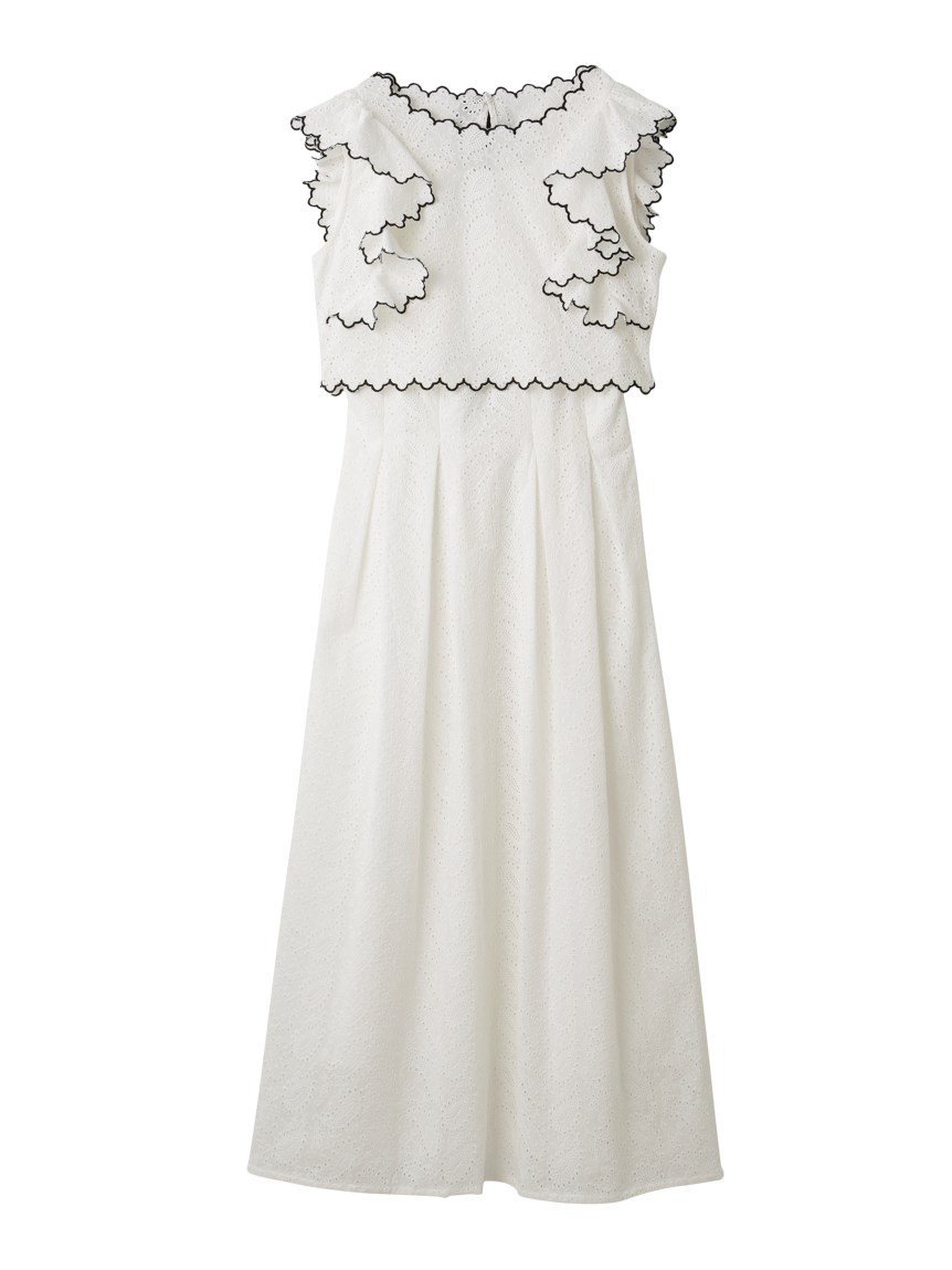 【スカラップ状のアウトラインが印象的なカットワークレースワンピース】