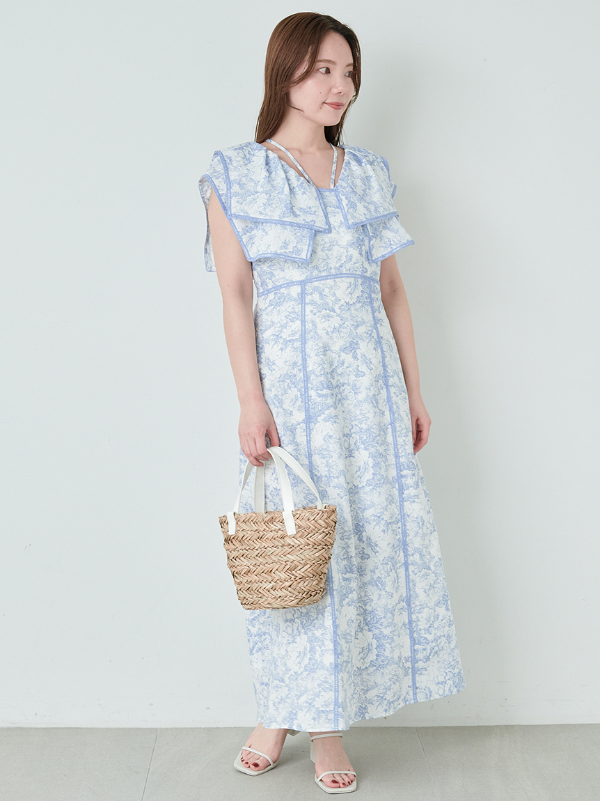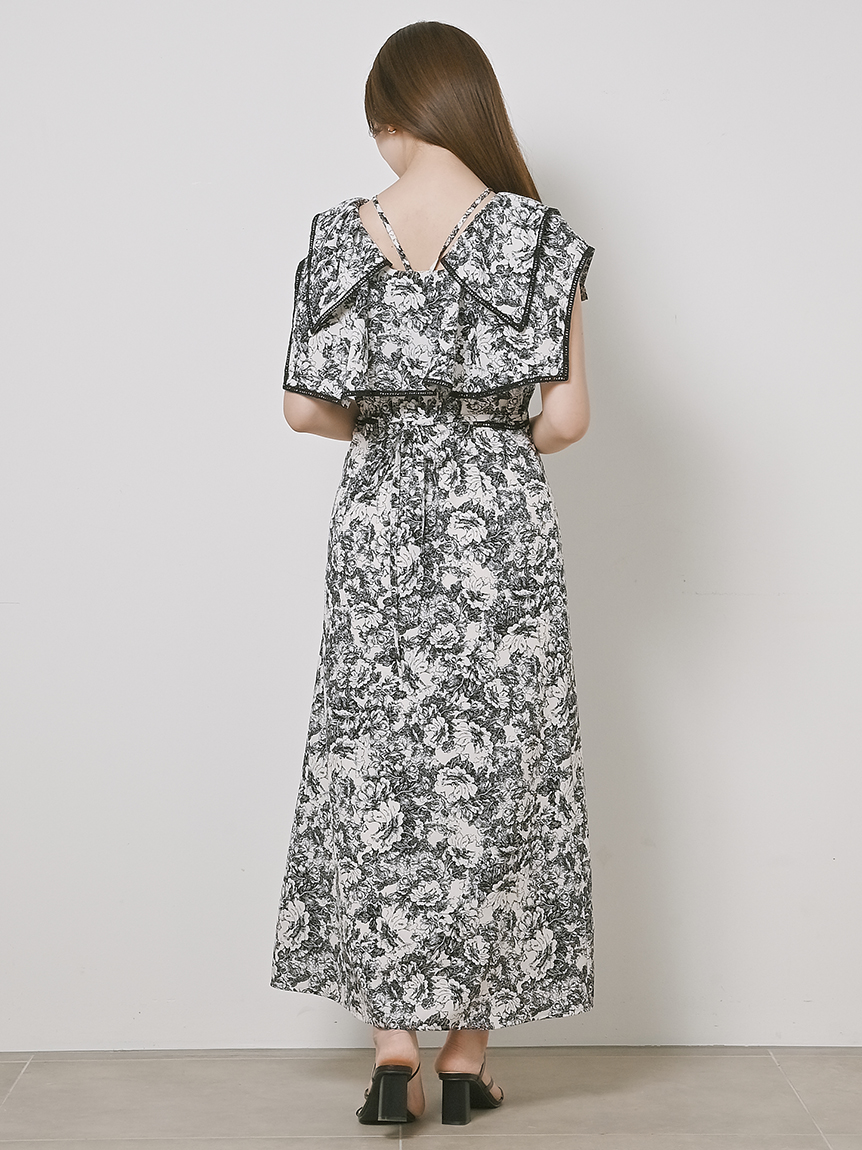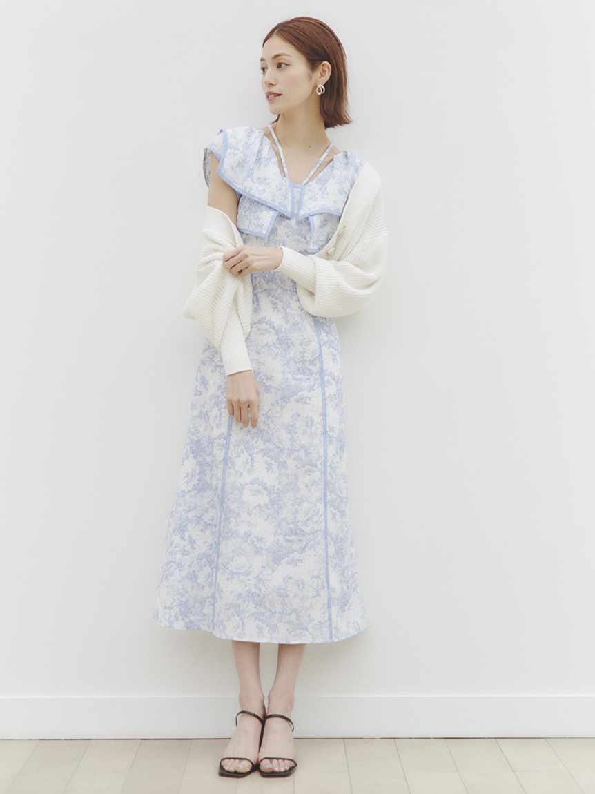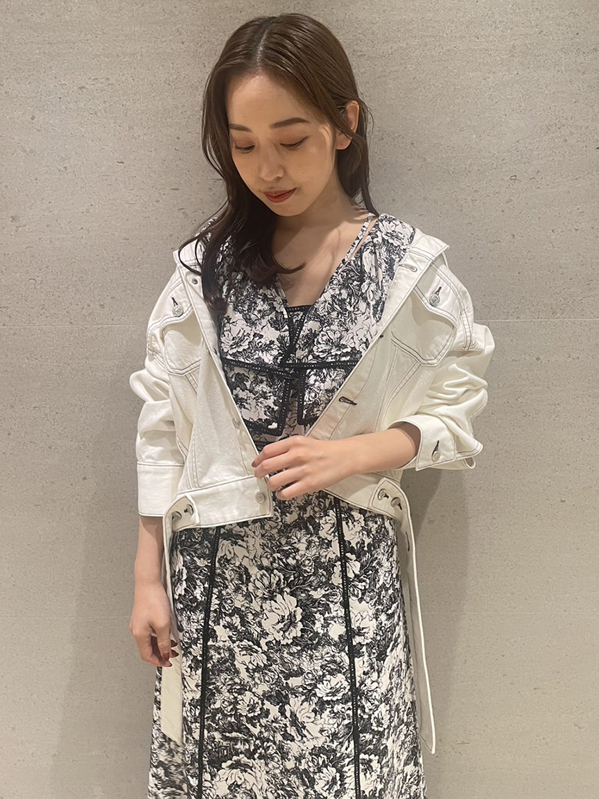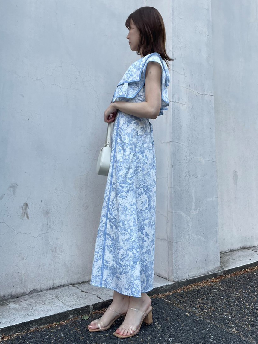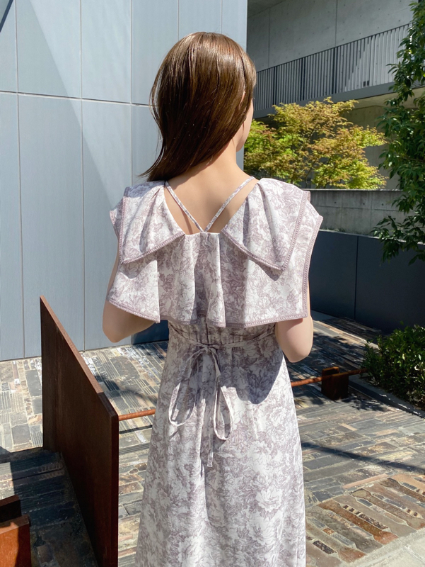 人気のラッフルカラーワンピースがアップグレードして登場。フリルのバランスは今季らしく、更にレースのパイピングや大胆な花柄で華やかに仕上げました。袖は横から腕が見える幅を少し狭くしたことで、気になるパーツをカバー。ハイウエストの切り替えから裾に向かって緩やかに広がるAラインシルエットで、スタイルアップ効果は抜群です。