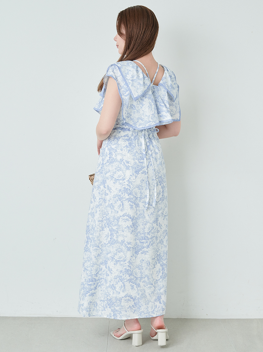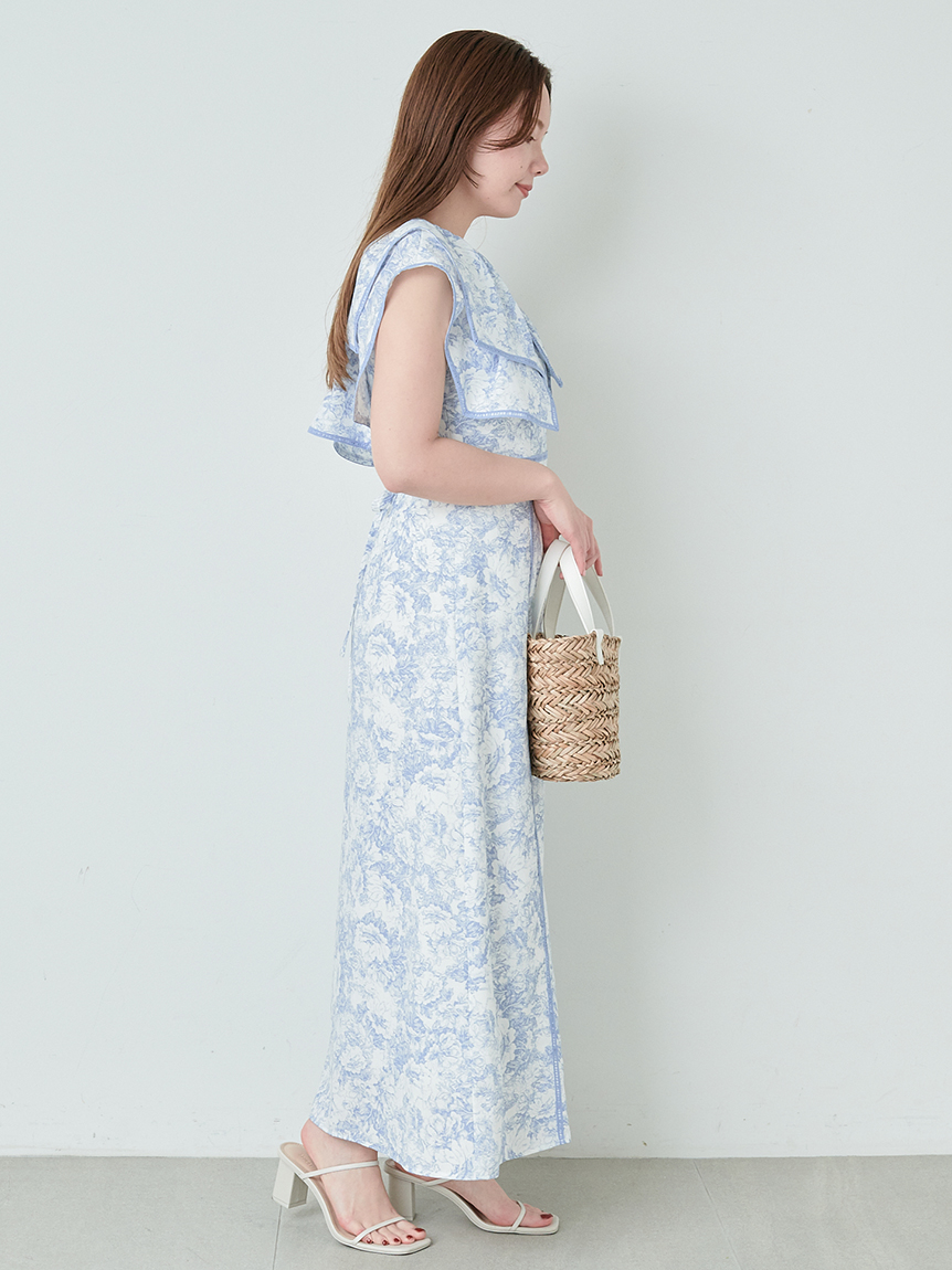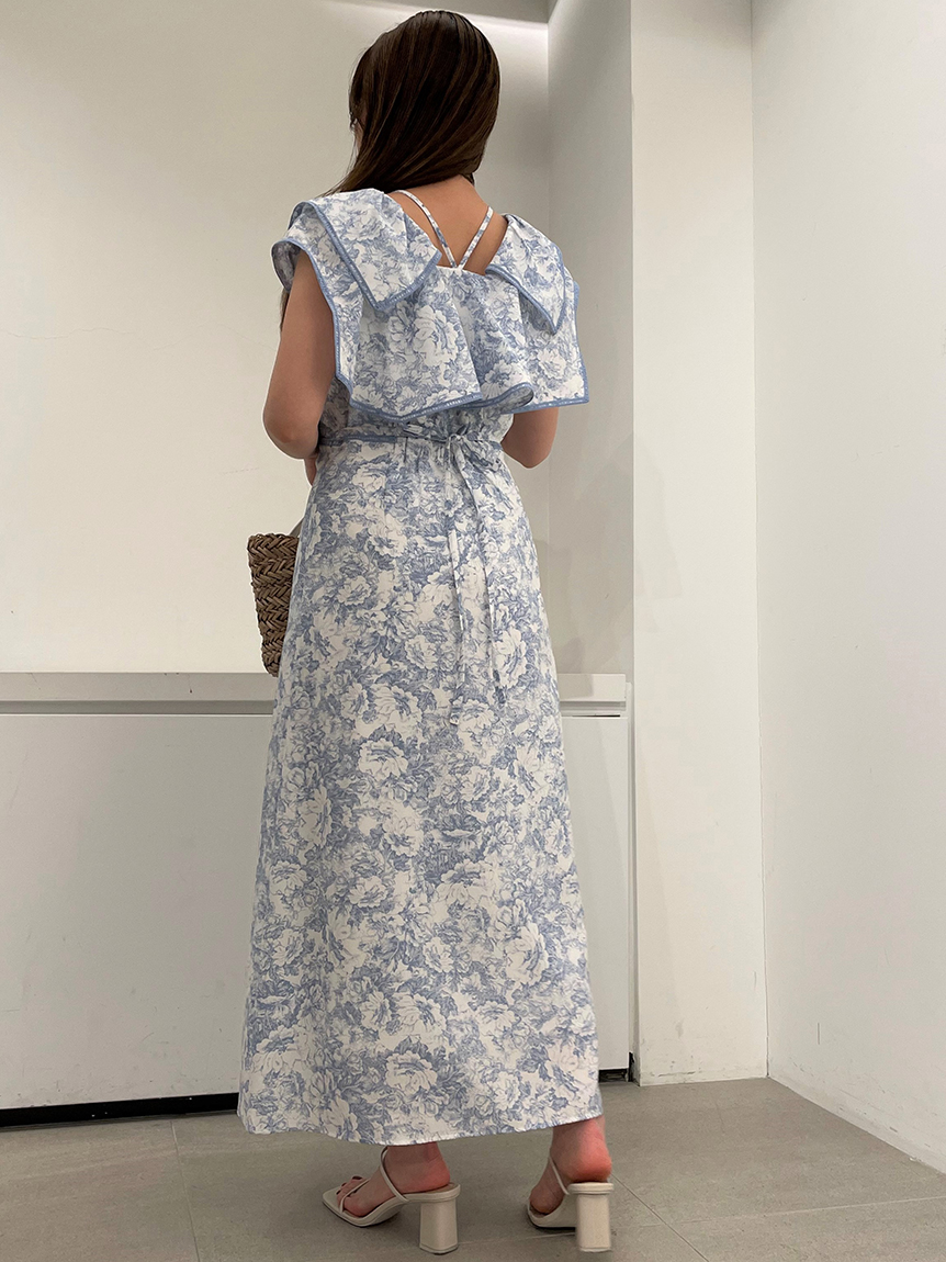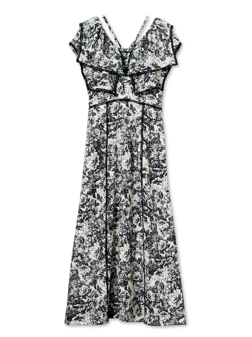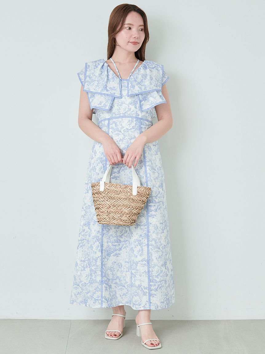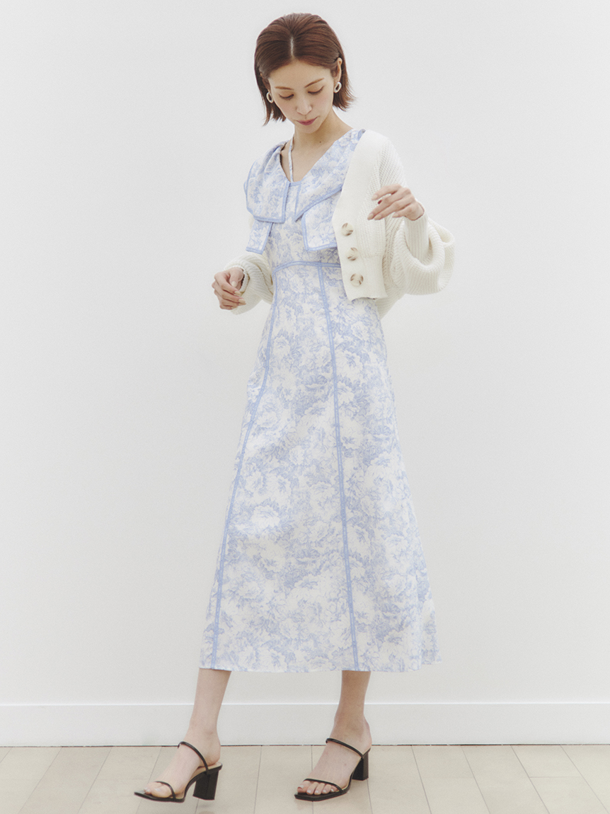 人気のラッフルカラーワンピースがアップグレードして登場。フリルのバランスは今季らしく、更にレースのパイピングや大胆な花柄で華やかに仕上げました。袖は横から腕が見える幅を少し狭くしたことで、気になるパーツをカバー。ハイウエストの切り替えから裾に向かって緩やかに広がるAラインシルエットで、スタイルアップ効果は抜群です。