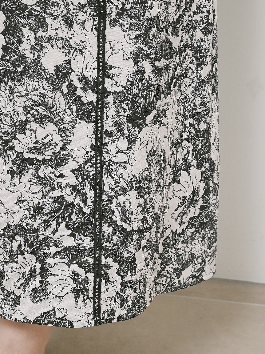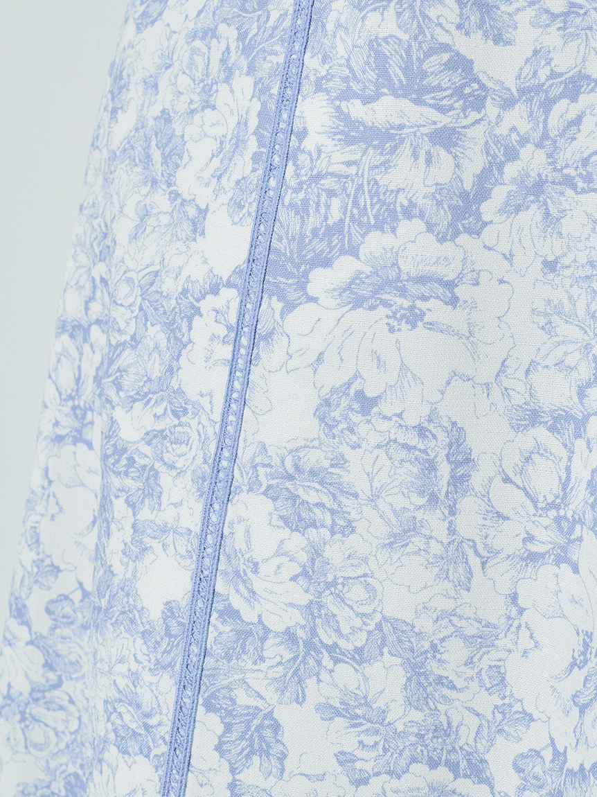 さらりとしなやかな風合いの生地に繊細に描かれた花柄をプリントしました。チャコールグレー、ブラック、ベージュの3色に加え、WEB限定ライトブルーの登場です。