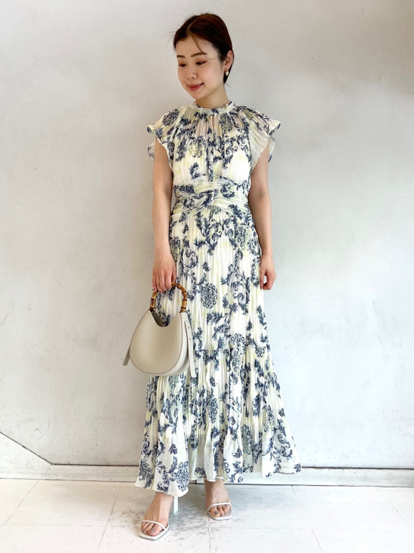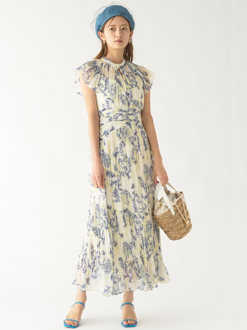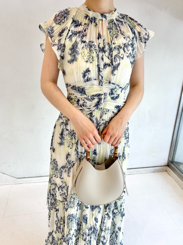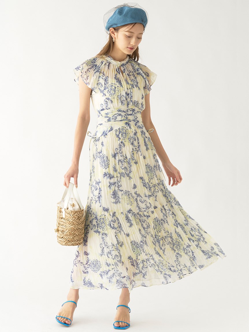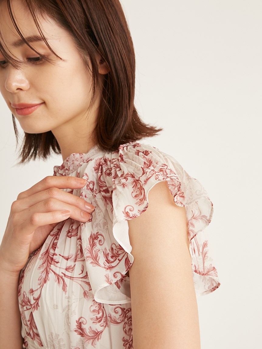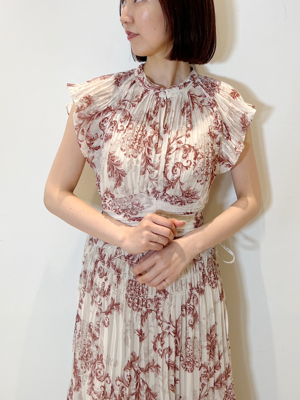 プリーツオーナメントプリントワンピース