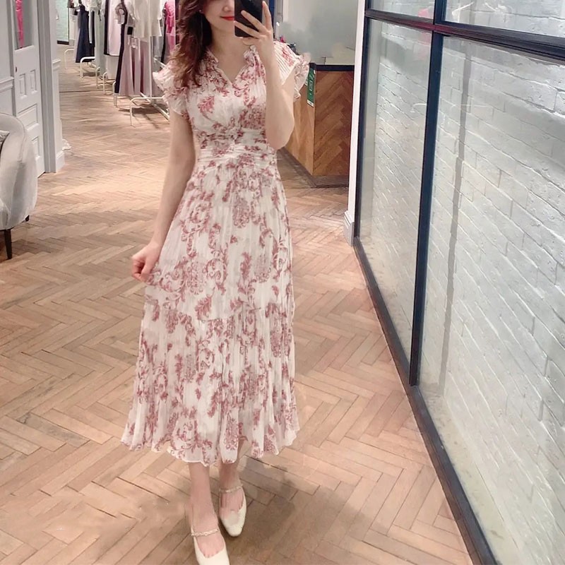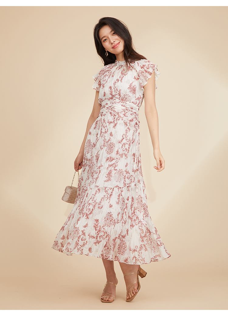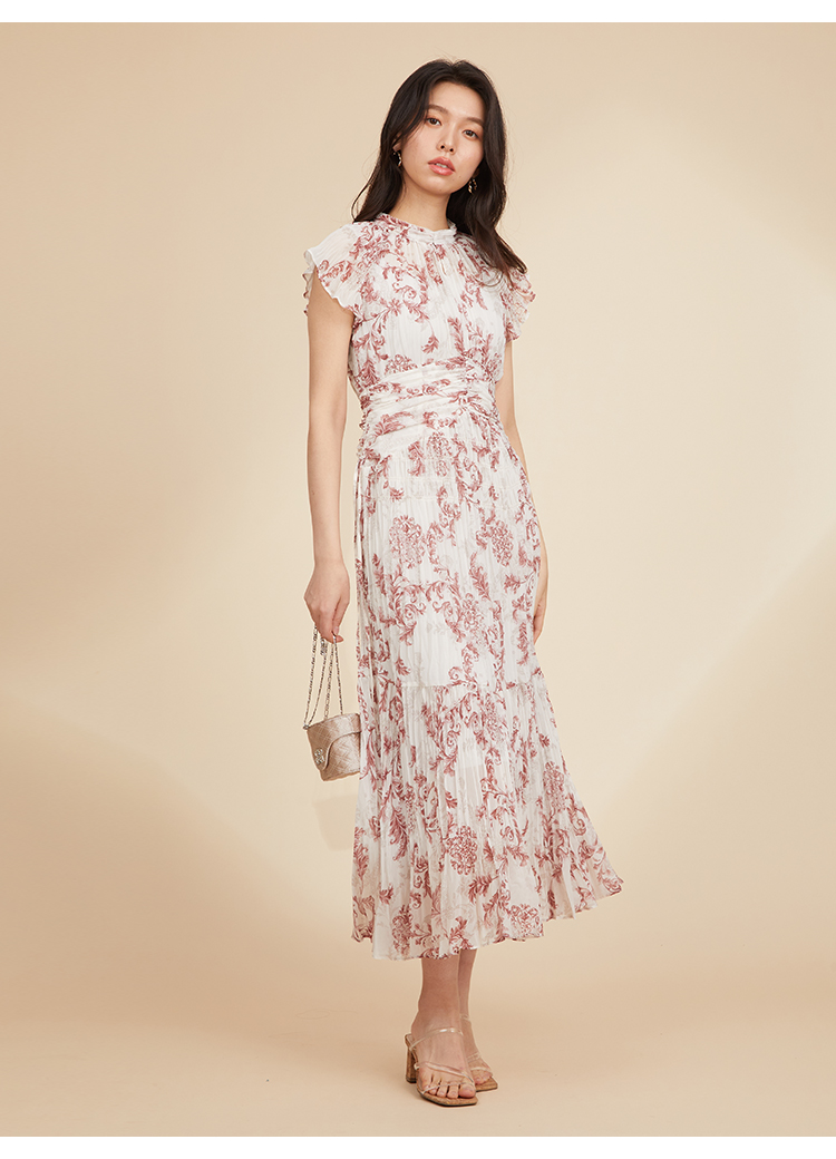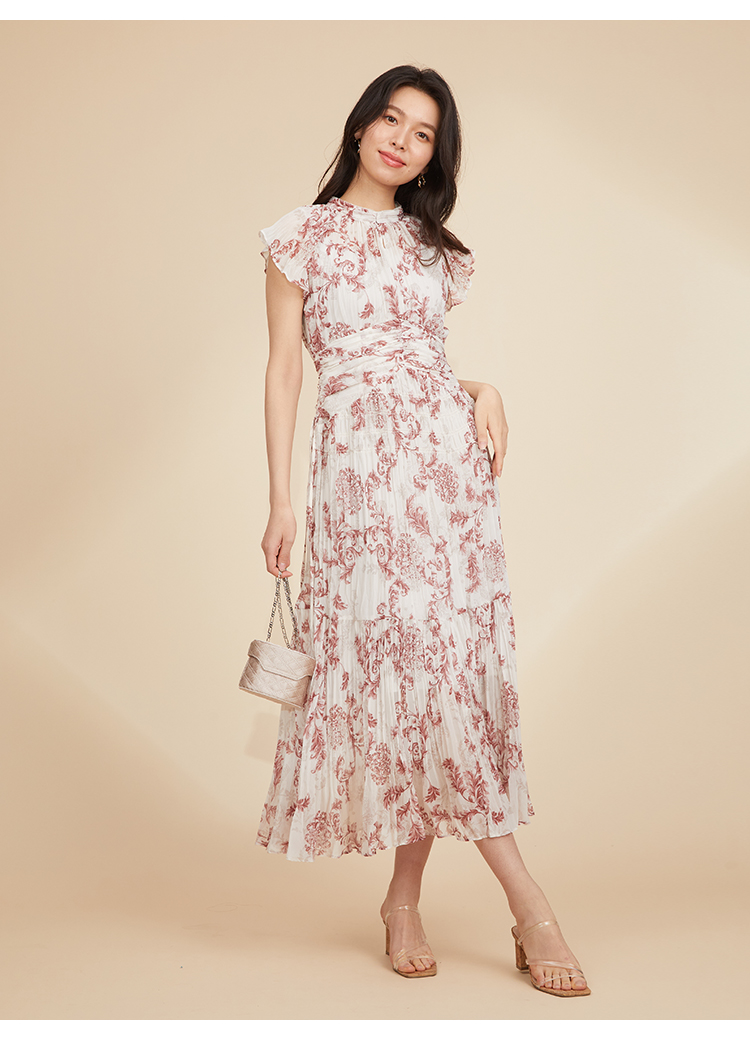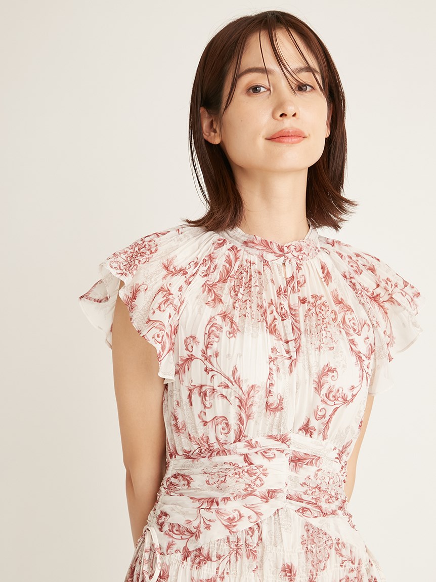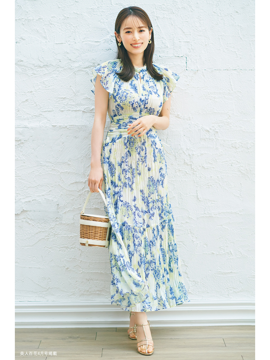 プリーツオーナメントプリントワンピース