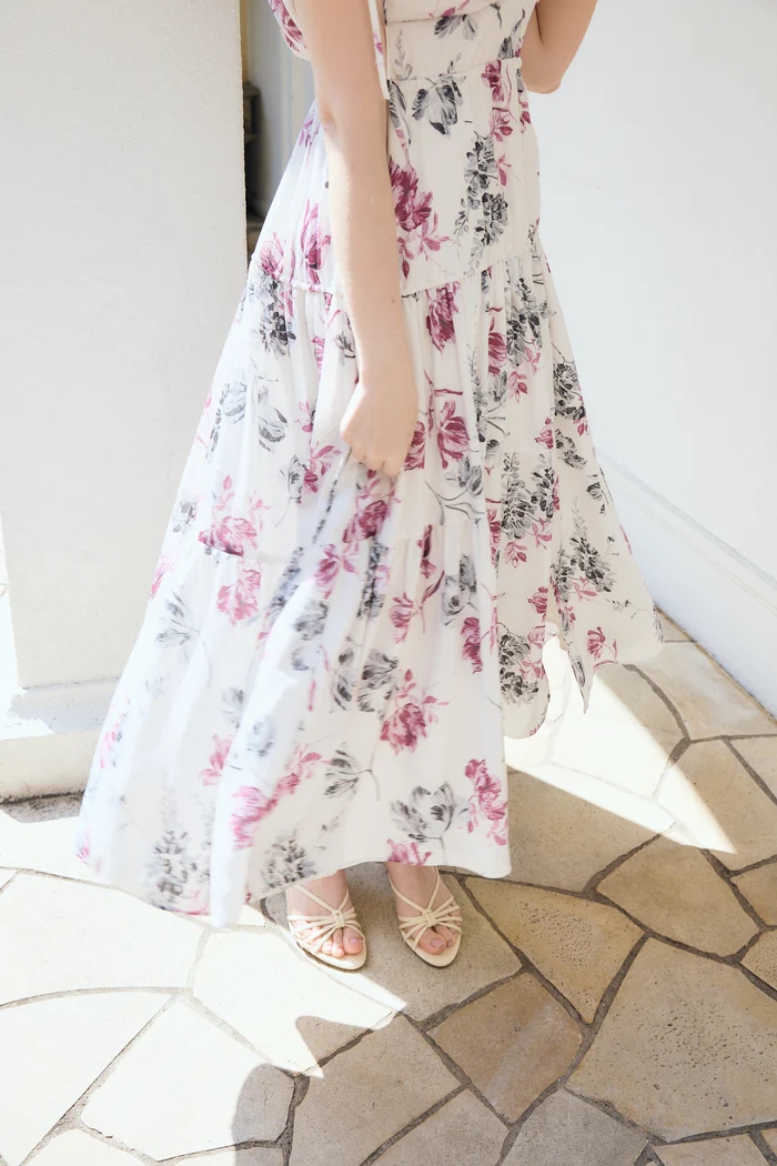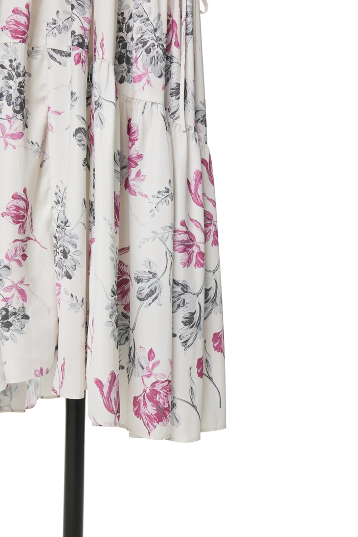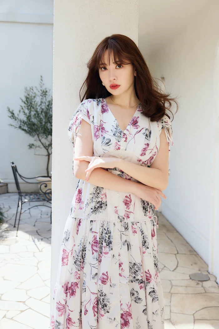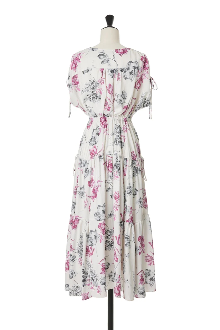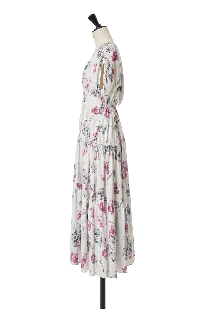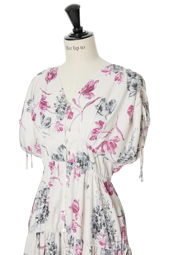 昨年ご好評いただいたHer lip toオリジナルのフローラルプリントを絶妙な配色で表現したドラマティックなロングドレスから、エレガントな新色が登場。
