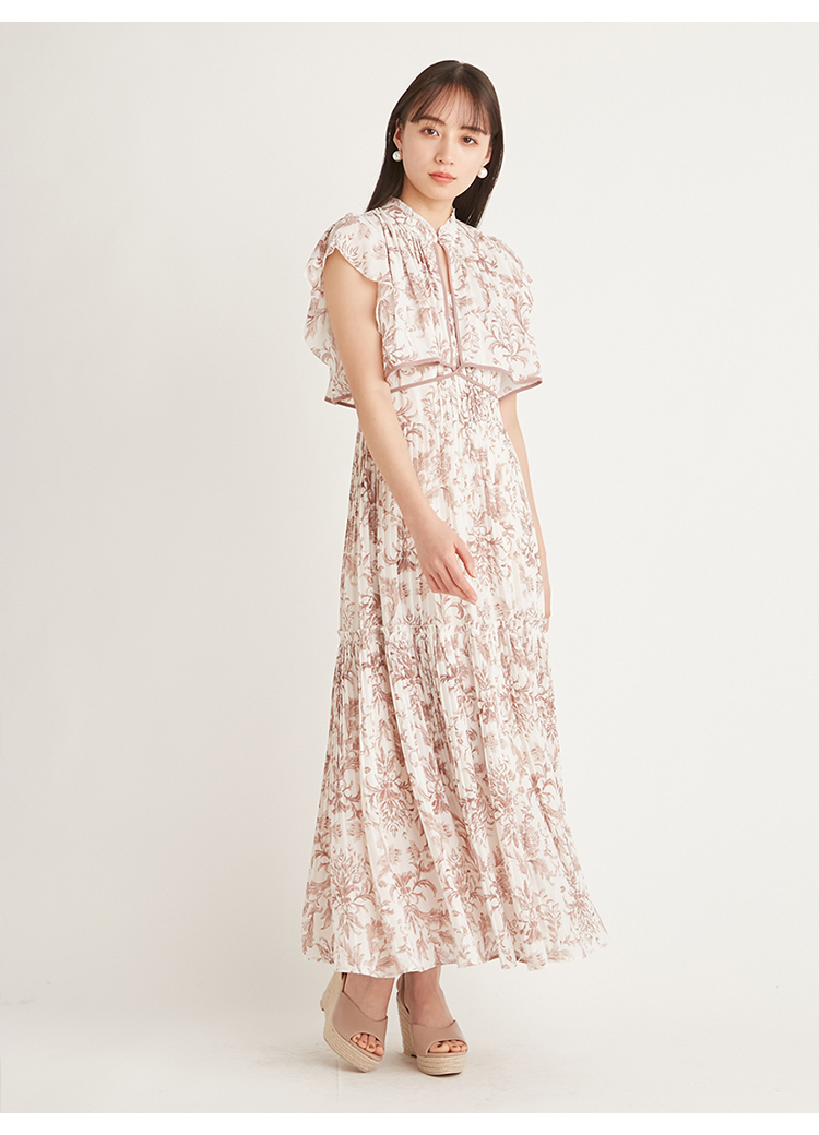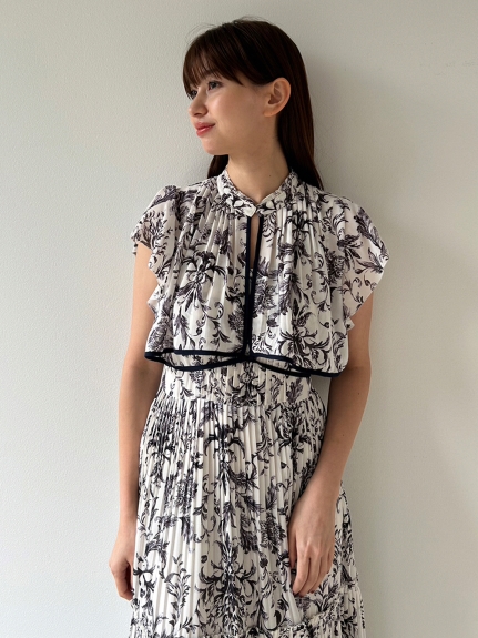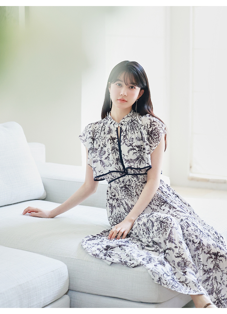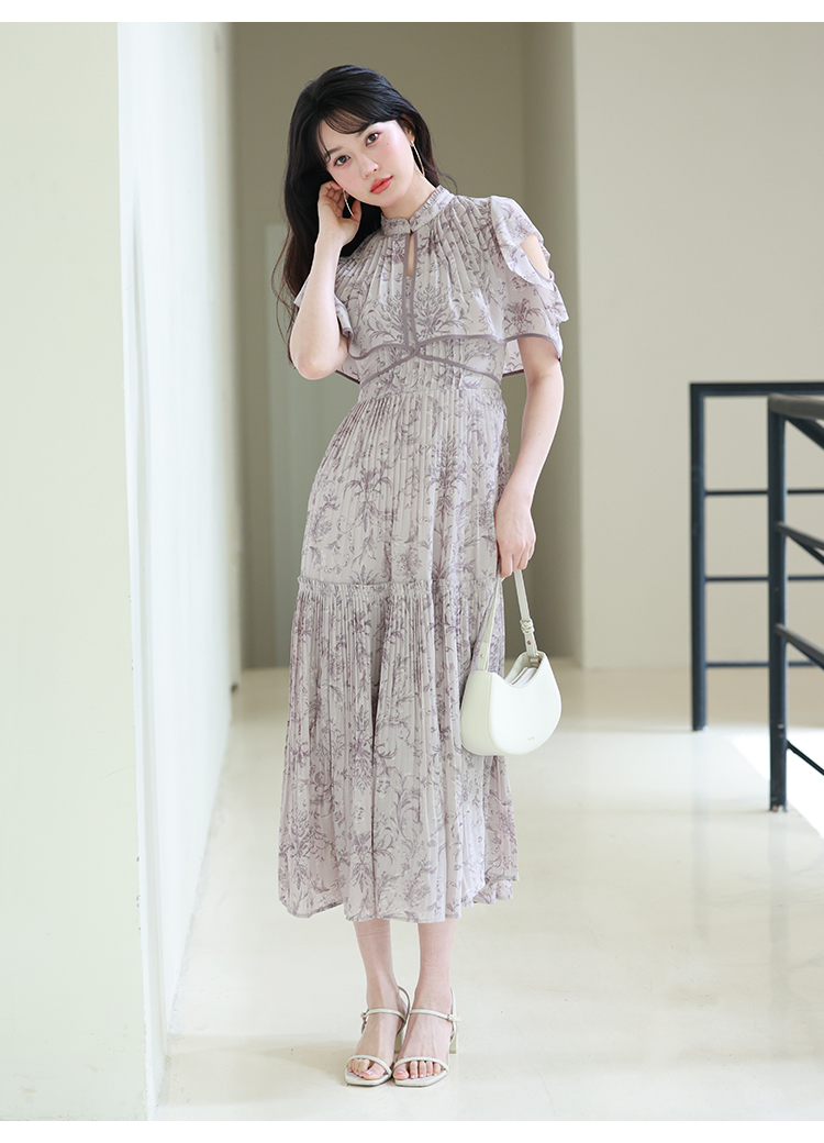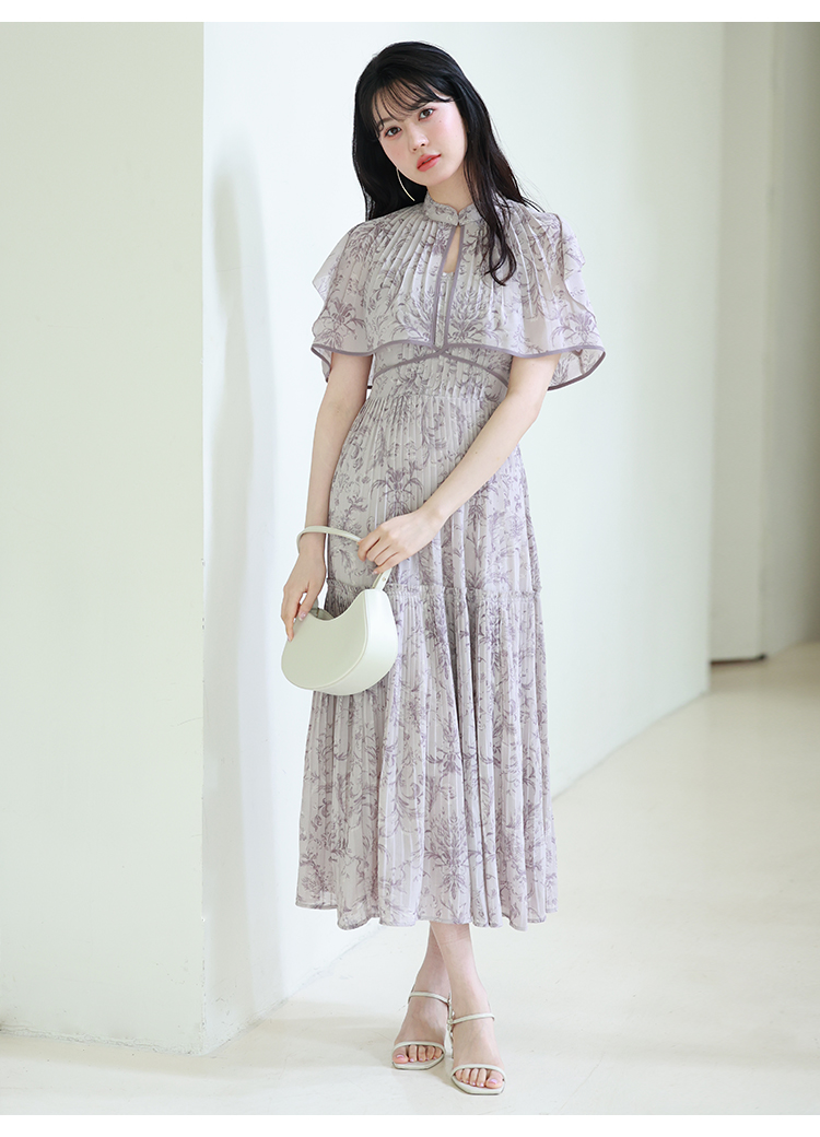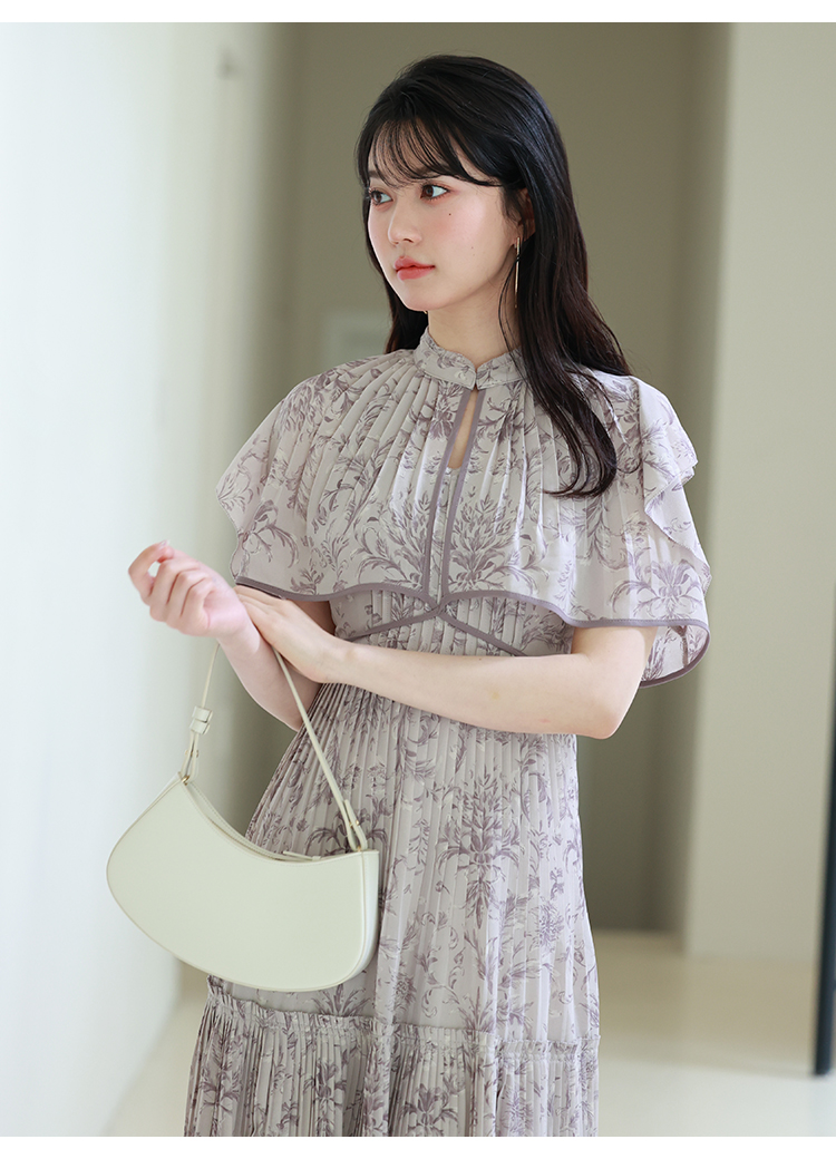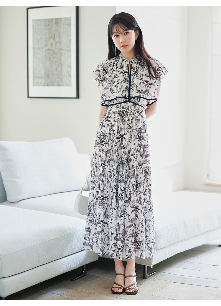 「SNIDEL」定番のプリーツワンピースが登場。今季はレイヤード風のデザインを落とし込みアップデートしました。全体に畳んだプリーツとオリジナルプリントで華やかさが高まり、主役級の存在感を放つ1着です。ウエスト部分に切り替えを入れることで、スタイルアップ効果の高いメリハリシルエットに。バックウエストでは華奢なリボンを結び、後ろ姿まで抜かりなく仕上げています。