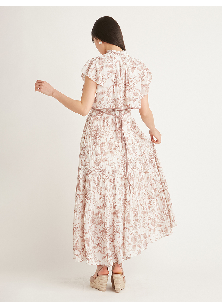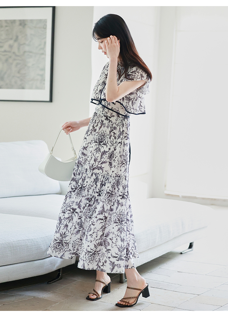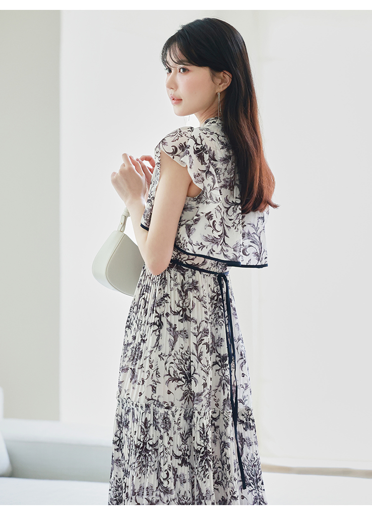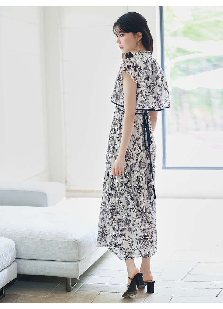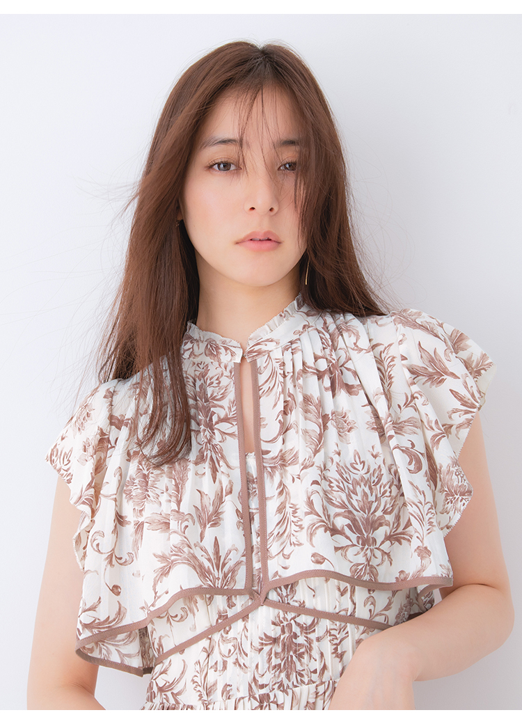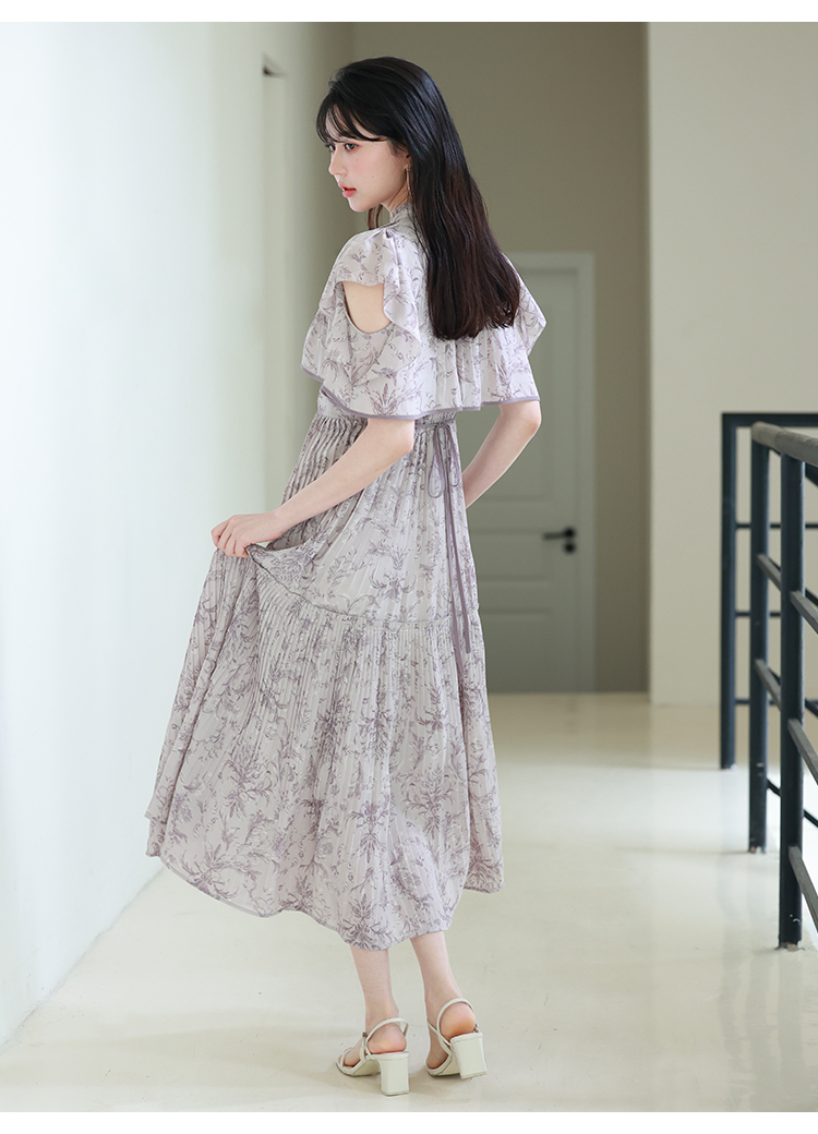 「SNIDEL」定番のプリーツワンピースが登場。今季はレイヤード風のデザインを落とし込みアップデートしました。全体に畳んだプリーツとオリジナルプリントで華やかさが高まり、主役級の存在感を放つ1着です。ウエスト部分に切り替えを入れることで、スタイルアップ効果の高いメリハリシルエットに。バックウエストでは華奢なリボンを結び、後ろ姿まで抜かりなく仕上げています。