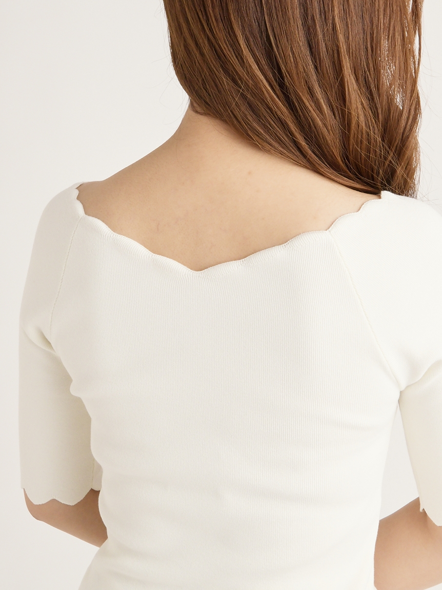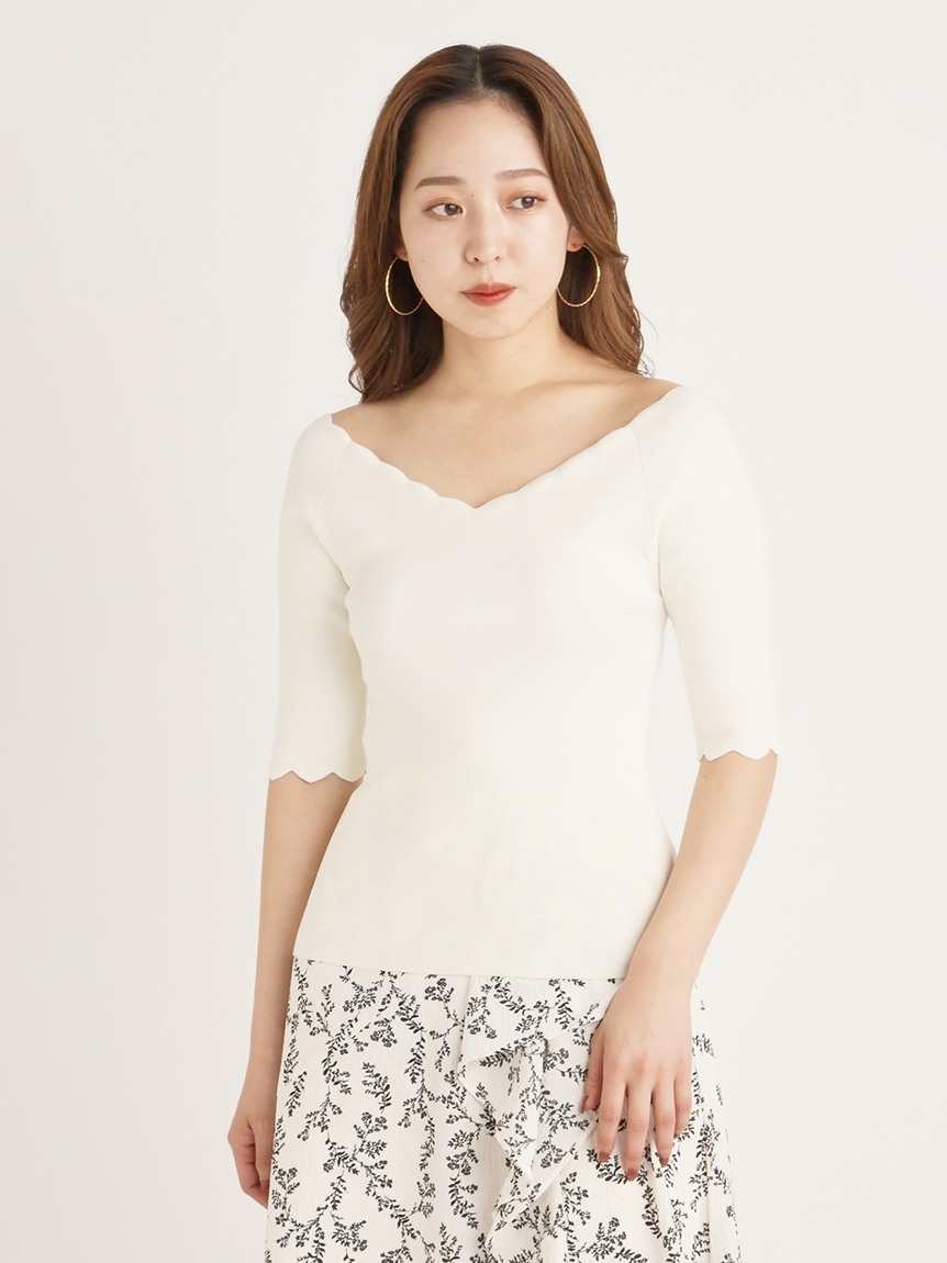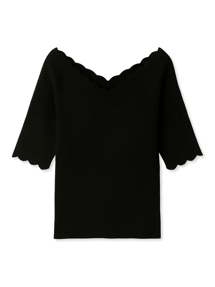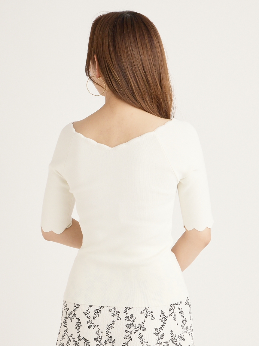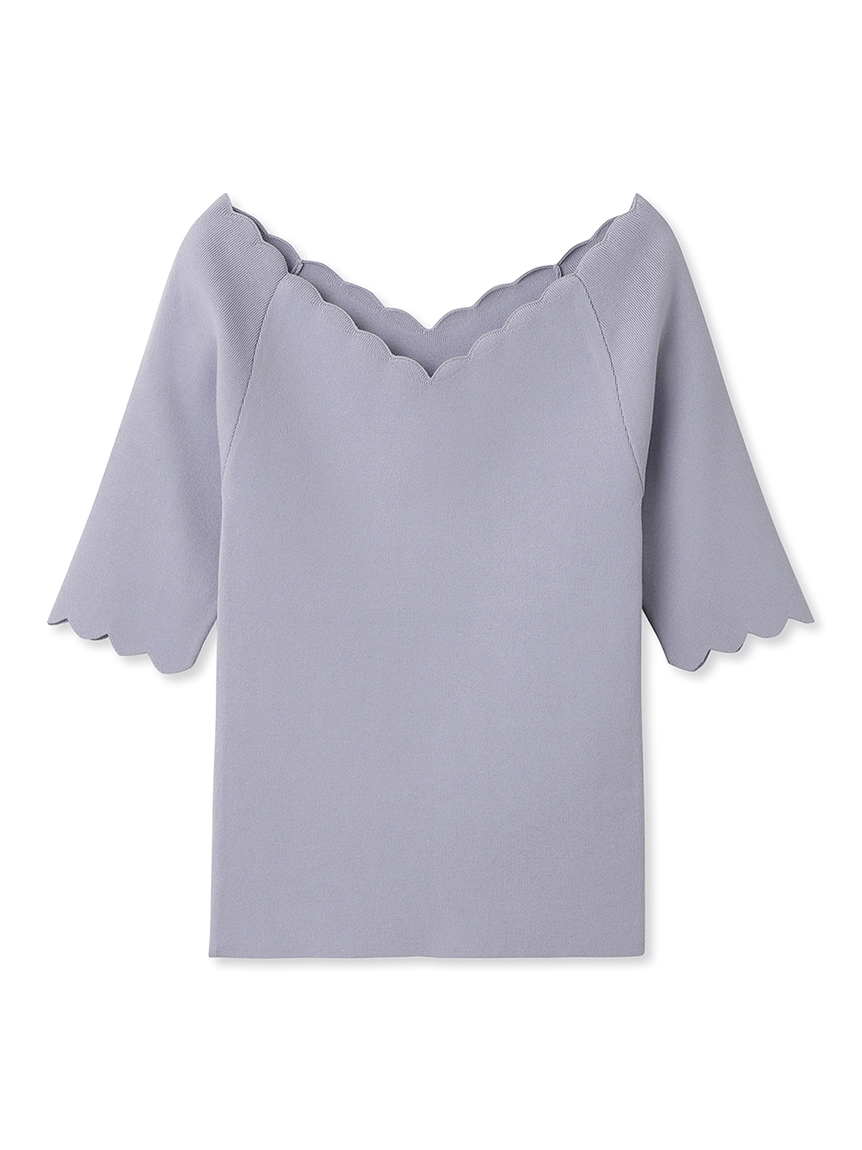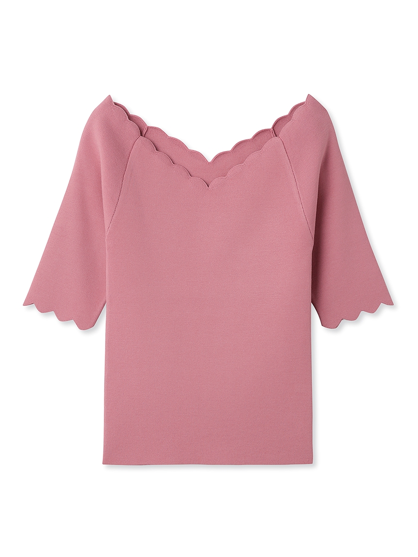 【女性らしいスカラップラインが目を引くニットトップス】
